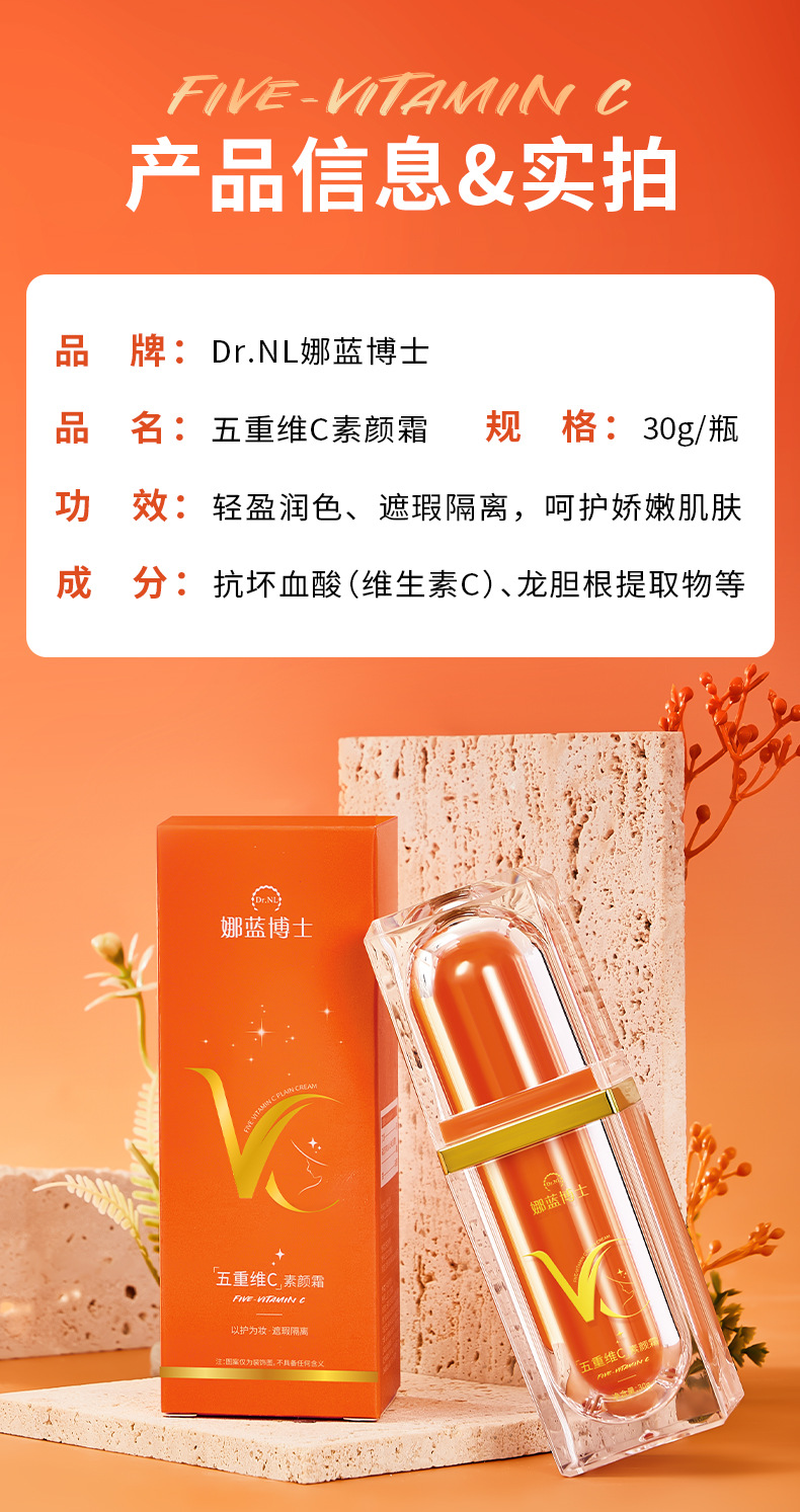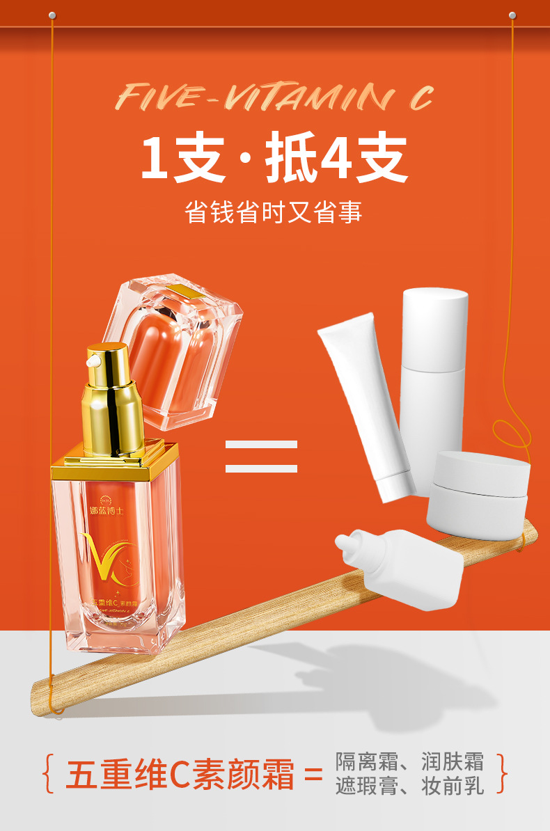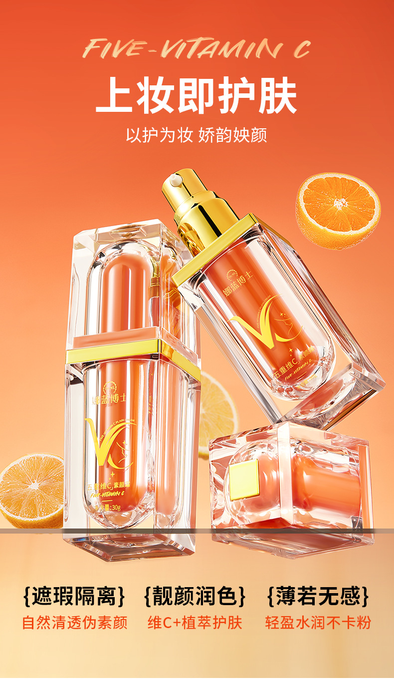 【上妆即护肤!五重维C素颜霜】自然伪妆 提亮遮瑕保湿肌肤抗氧化懒人隔离素颜霜