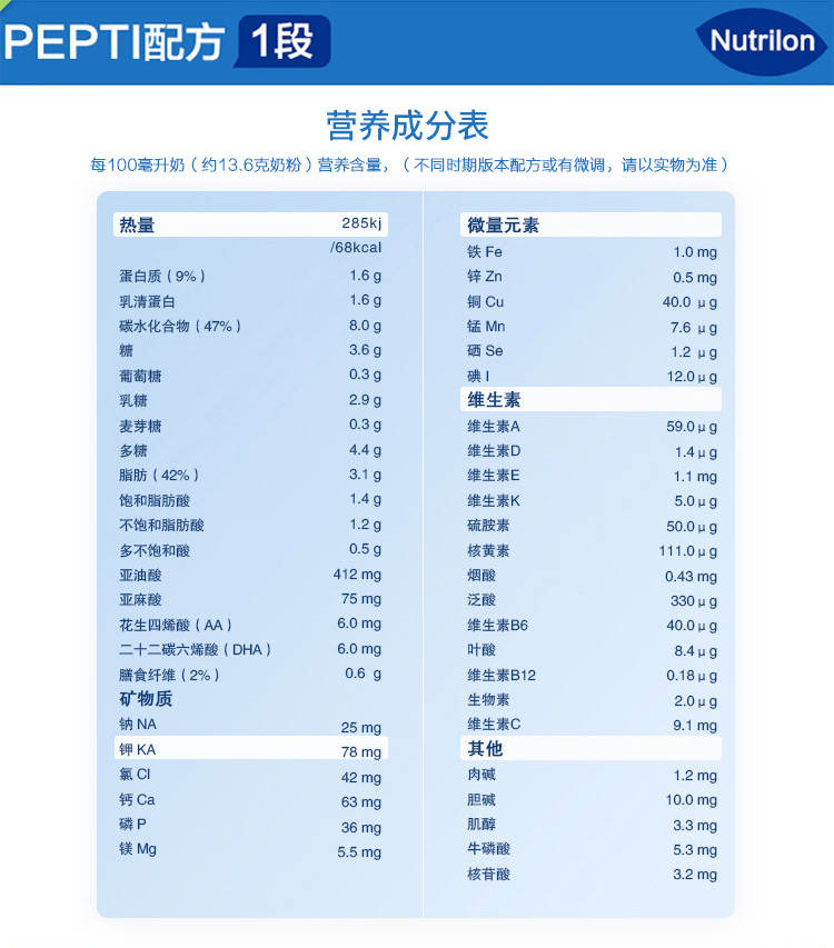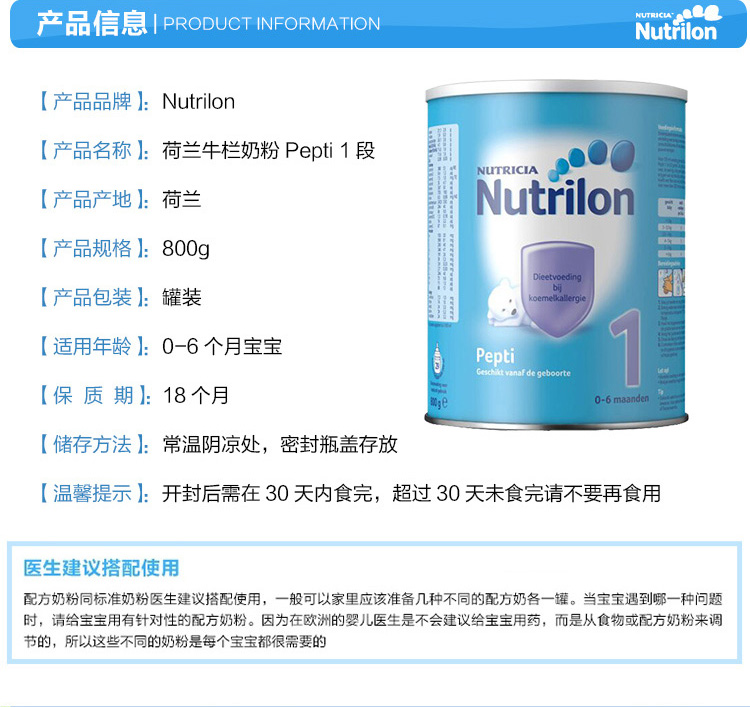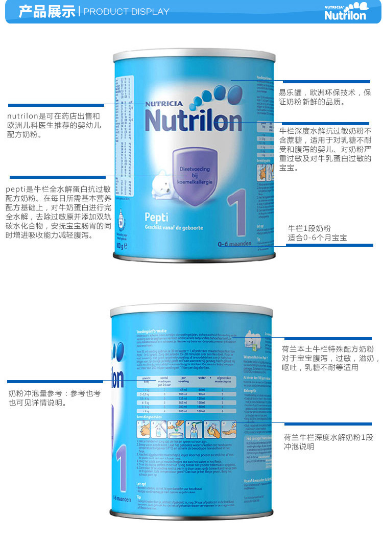 HNMG 荷兰牛栏Nutrilon深度水解抗过敏配方Pepti 1段(0-6个月)800g