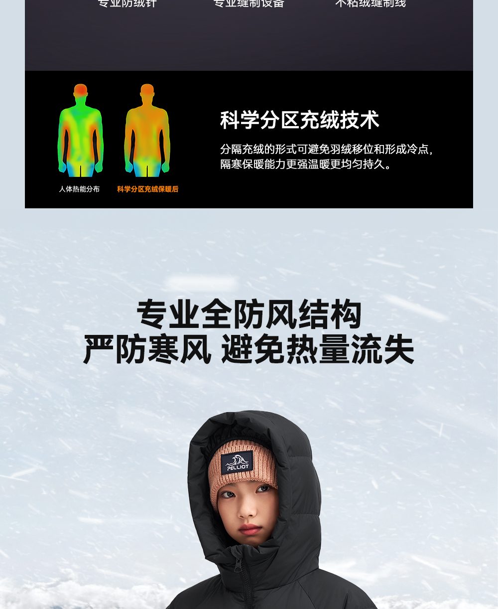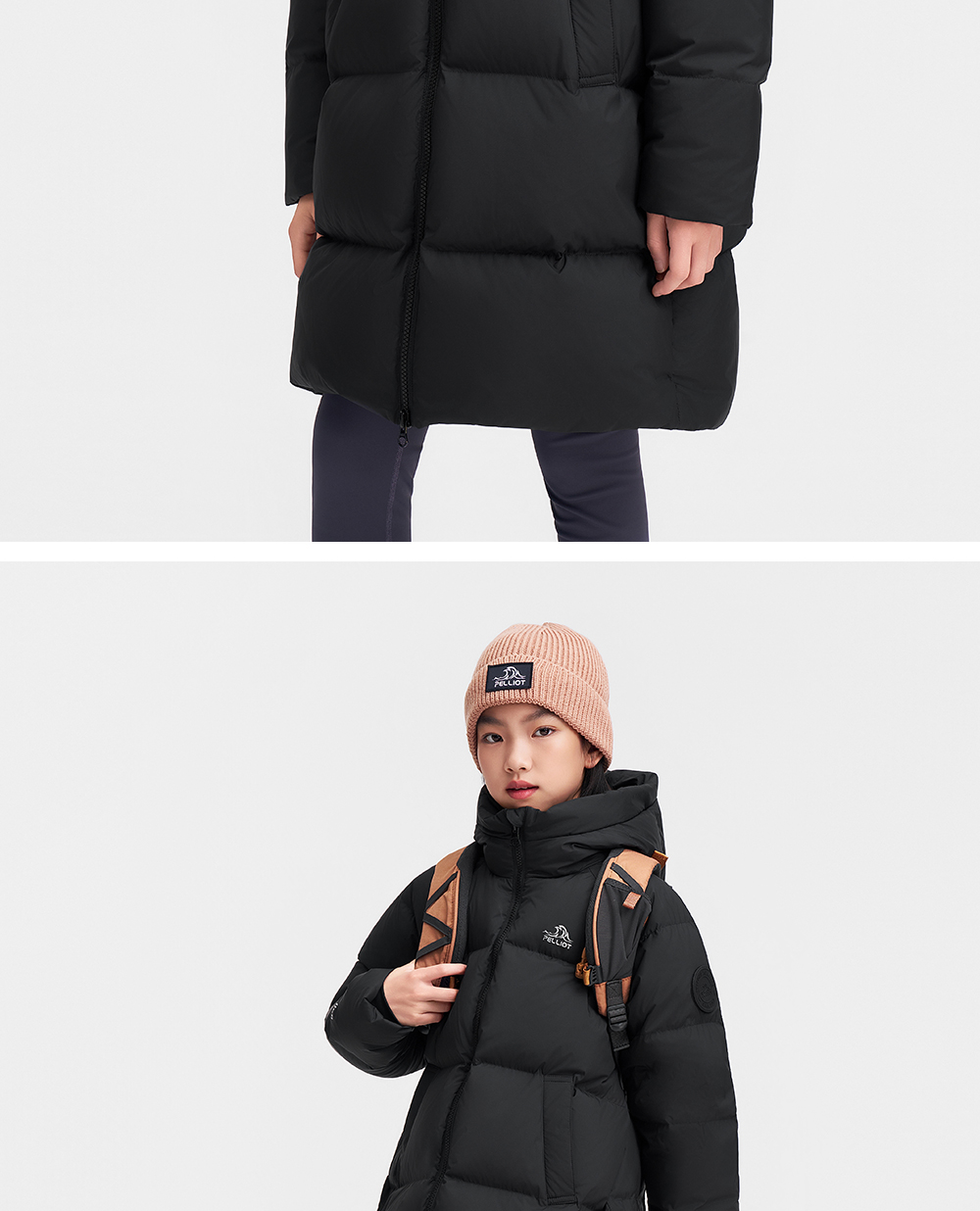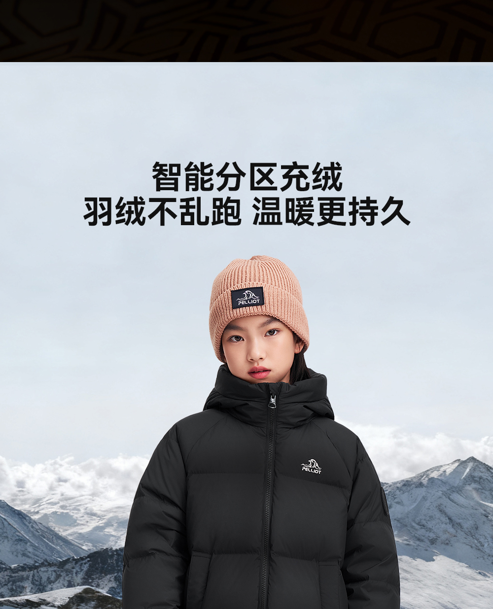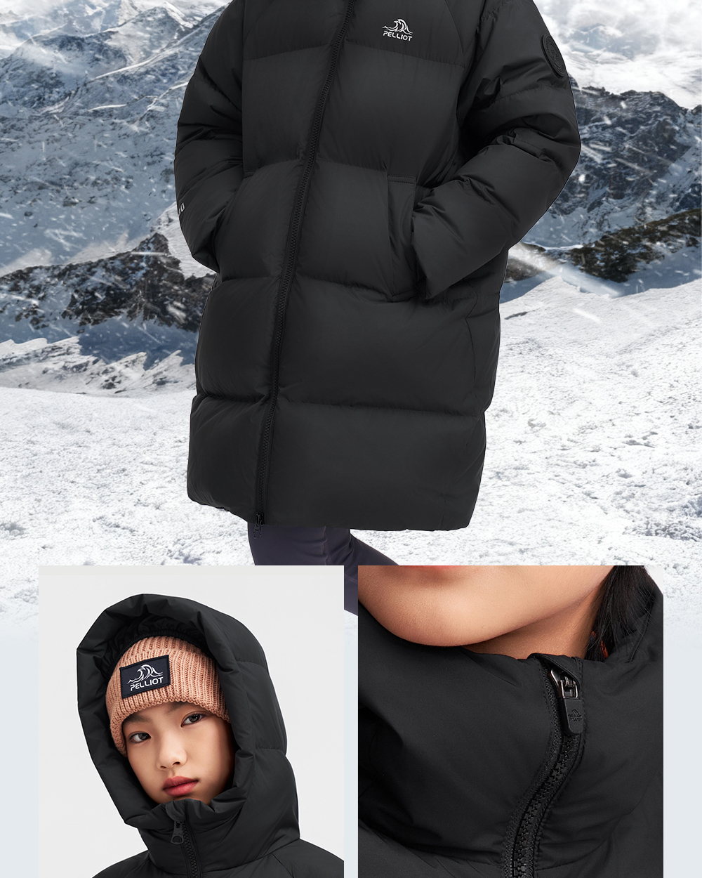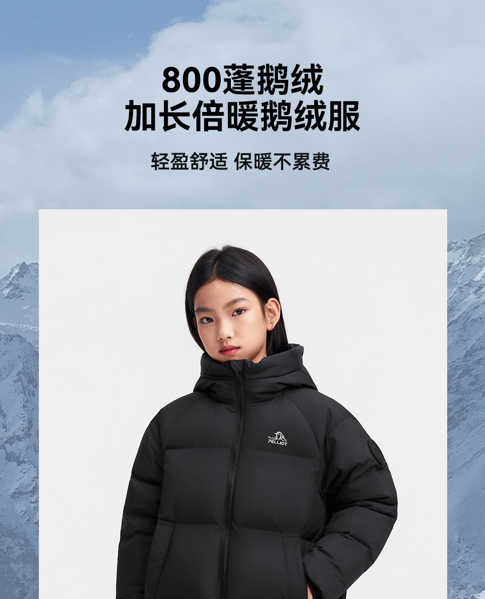 伯希和户外800蓬长款羽绒服儿童男2025新款女保暖防风鹅绒服外套