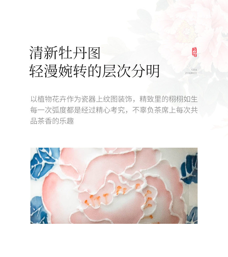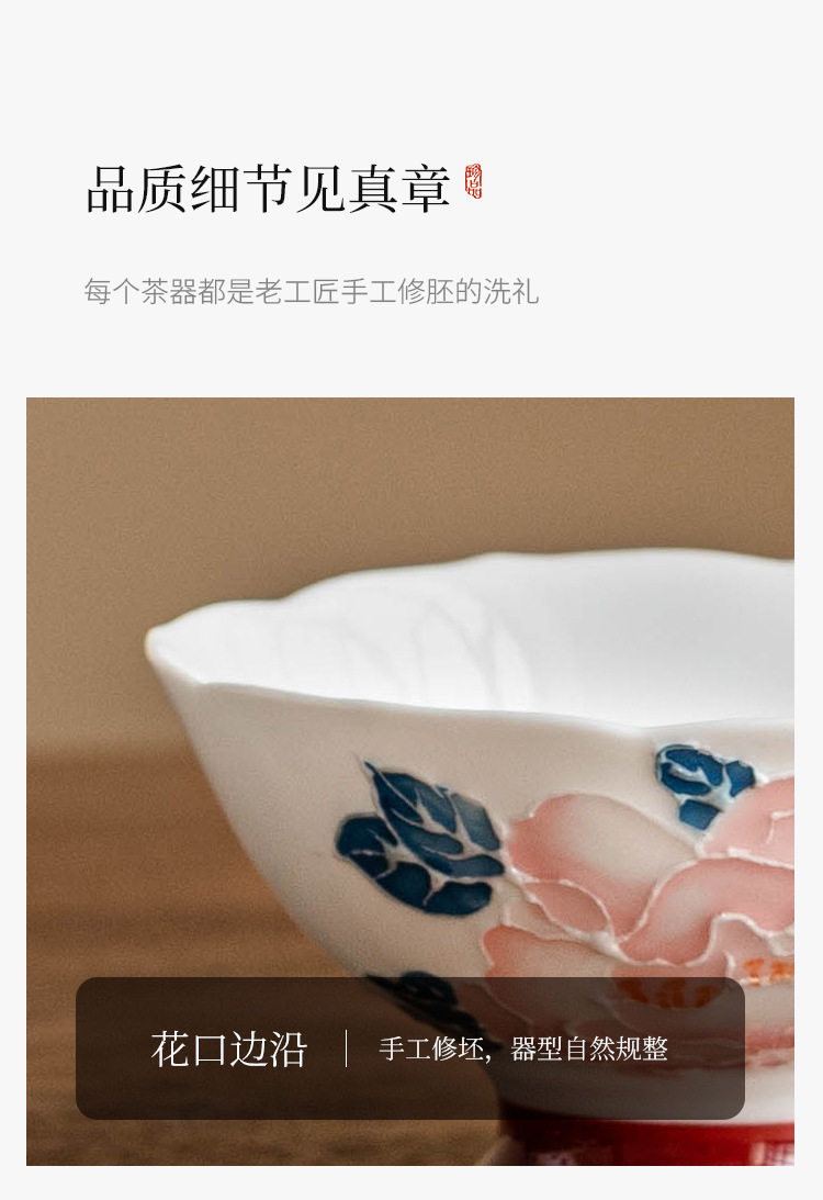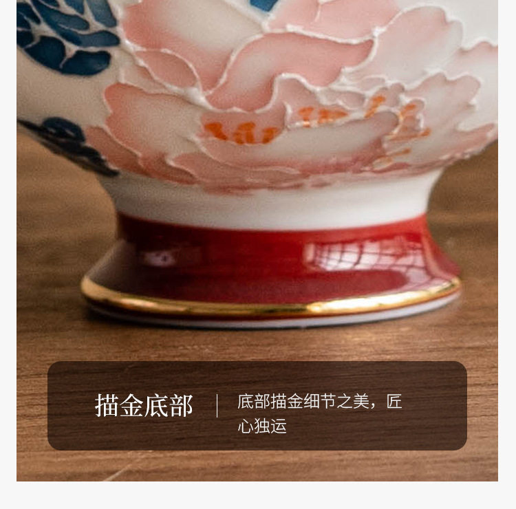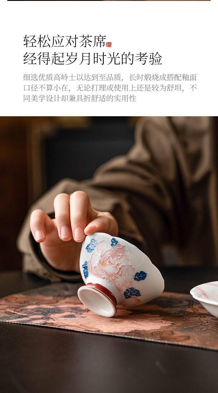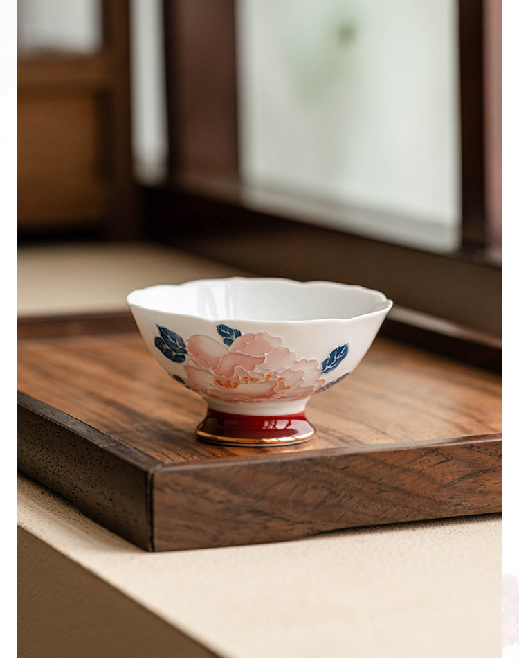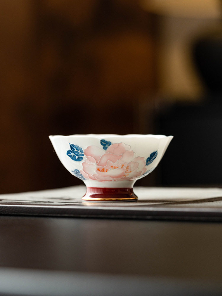 主人杯礼盒品茗描金功夫茶茶杯口杯牡丹花杯喝茶手绘家用陶瓷杯子