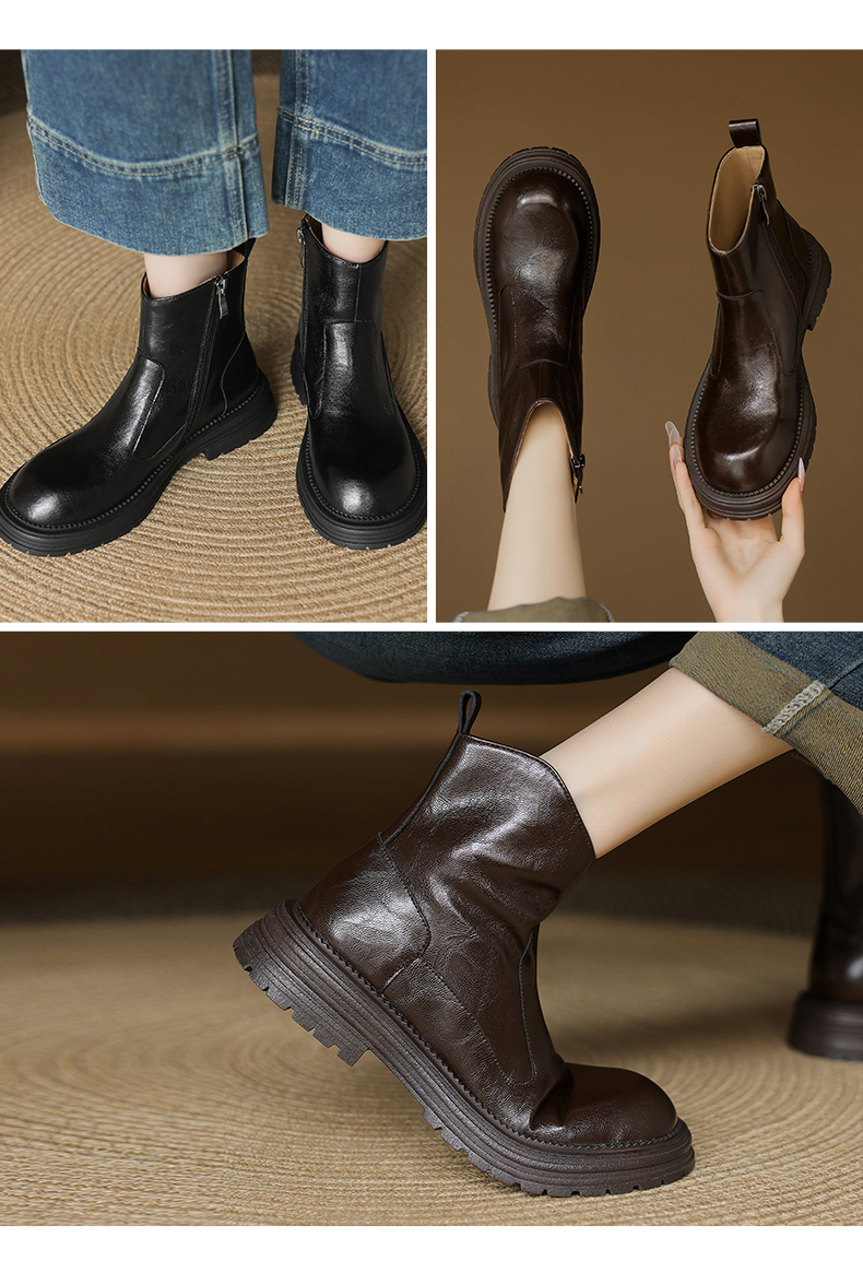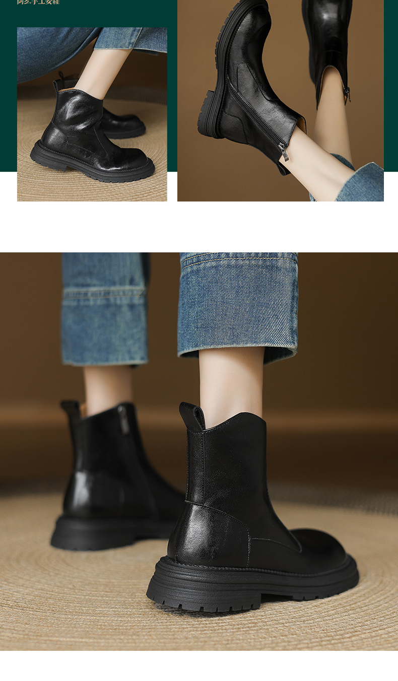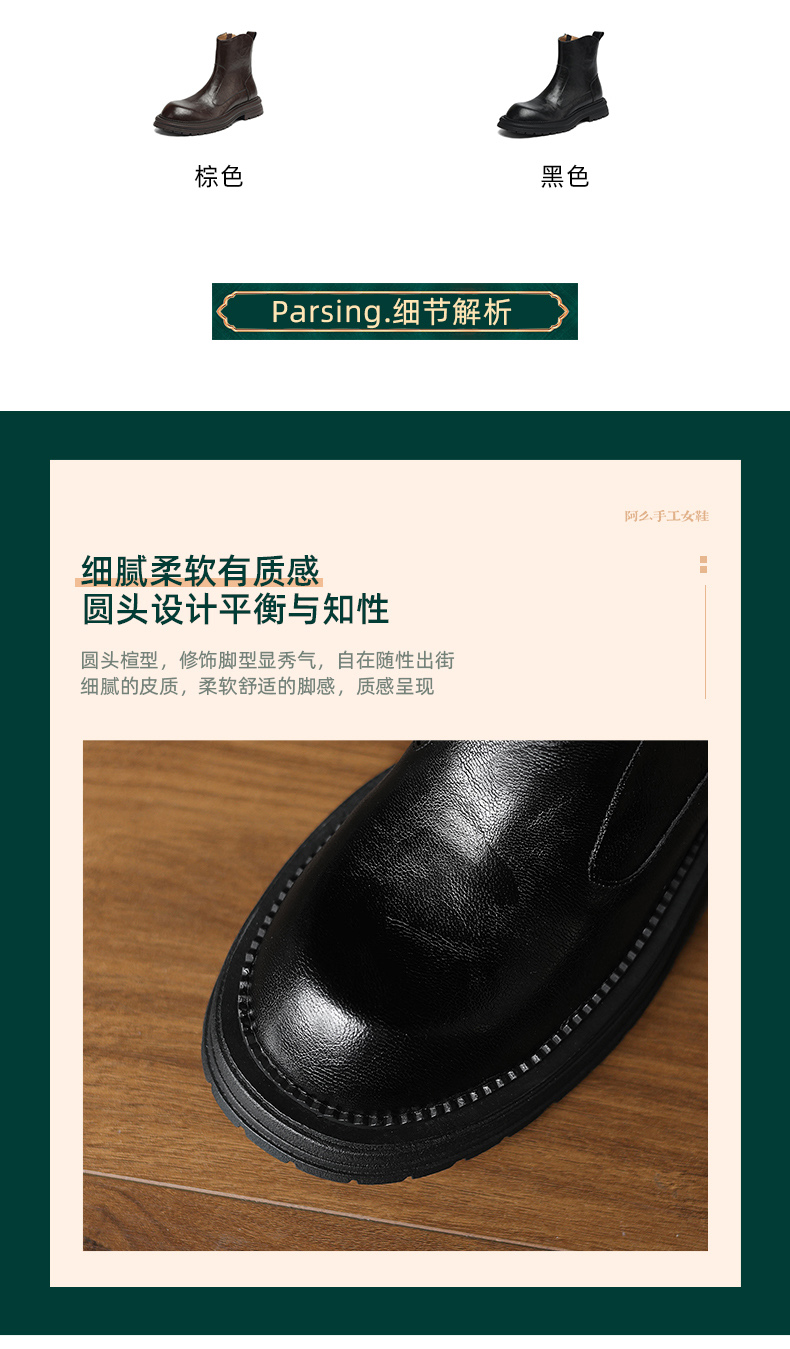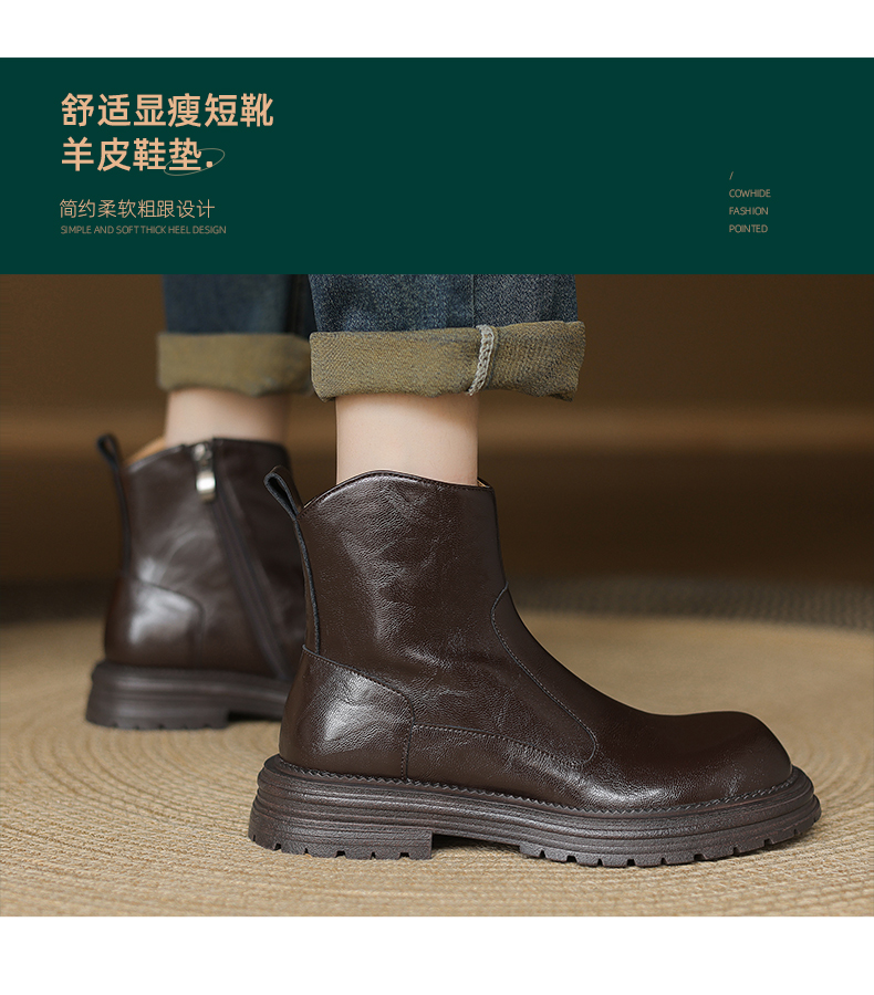 阿么手工女鞋羊皮时装靴高质感穿搭2025新款时尚秋冬百搭短靴5CM