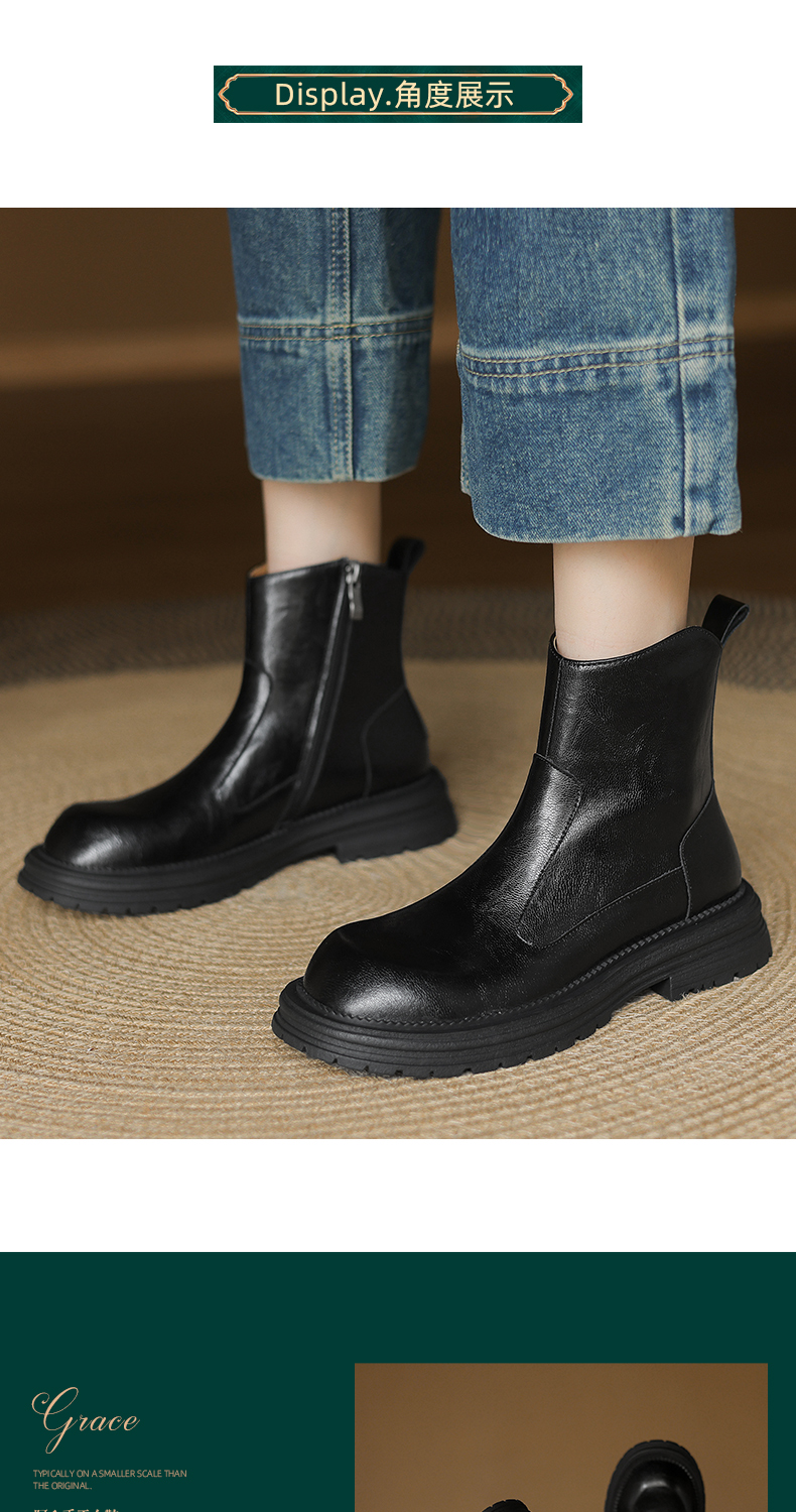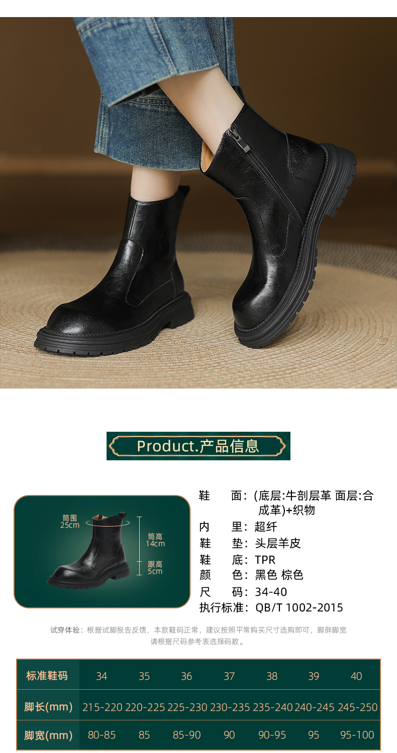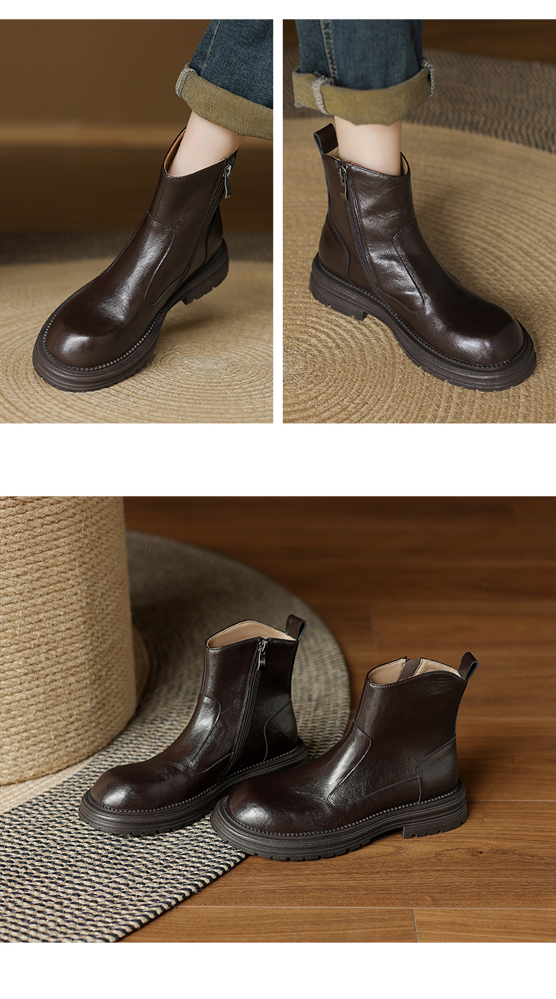 阿么手工女鞋羊皮时装靴高质感穿搭2025新款时尚秋冬百搭短靴5CM
