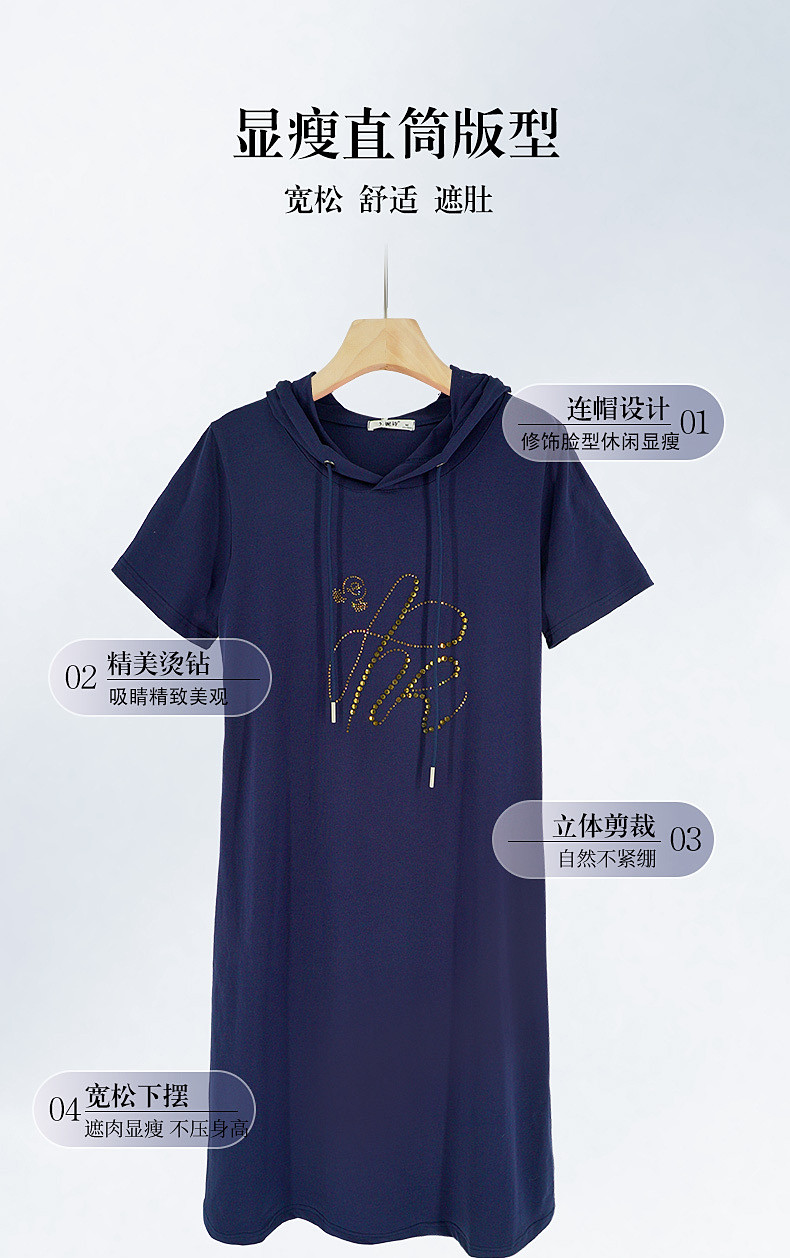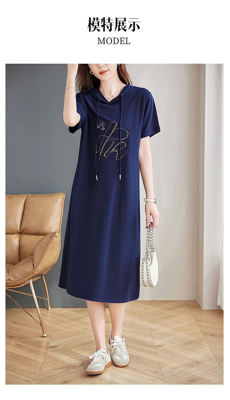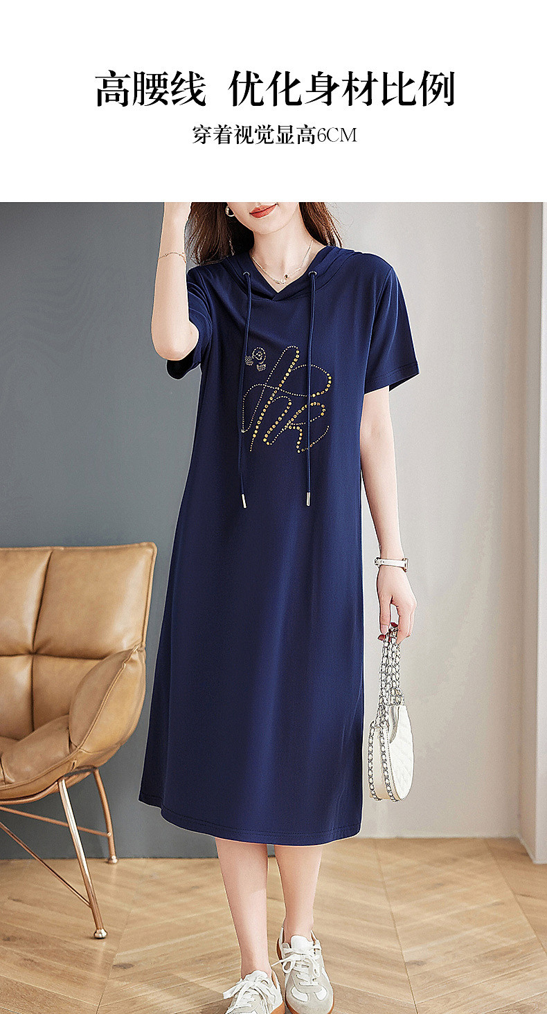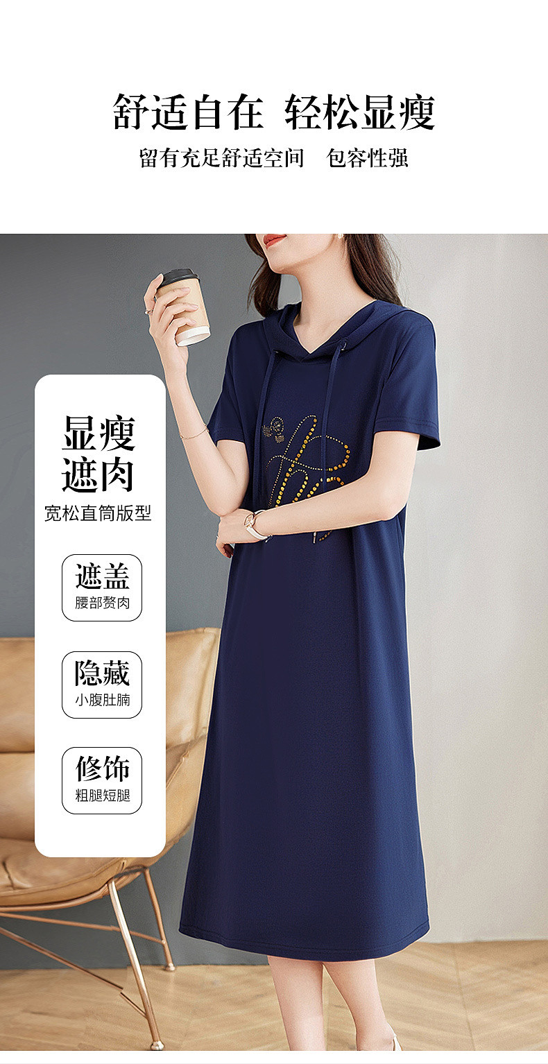 连帽连衣裙女夏2026新款上衣大码女装短袖卫衣休闲中长款t恤裙子
