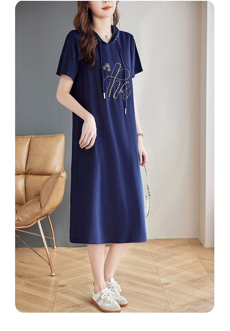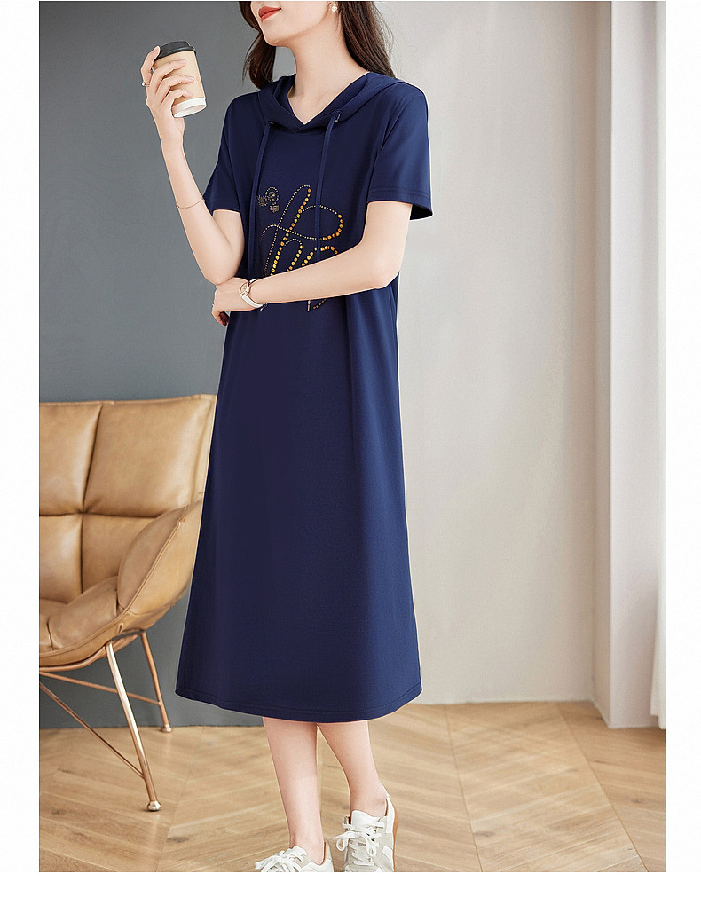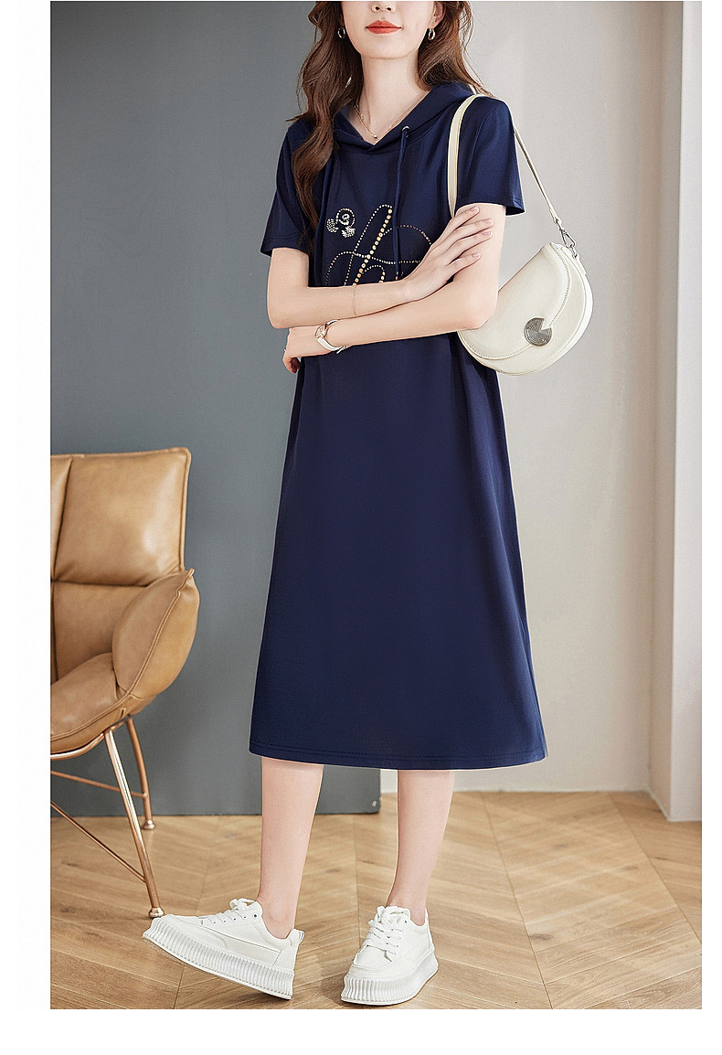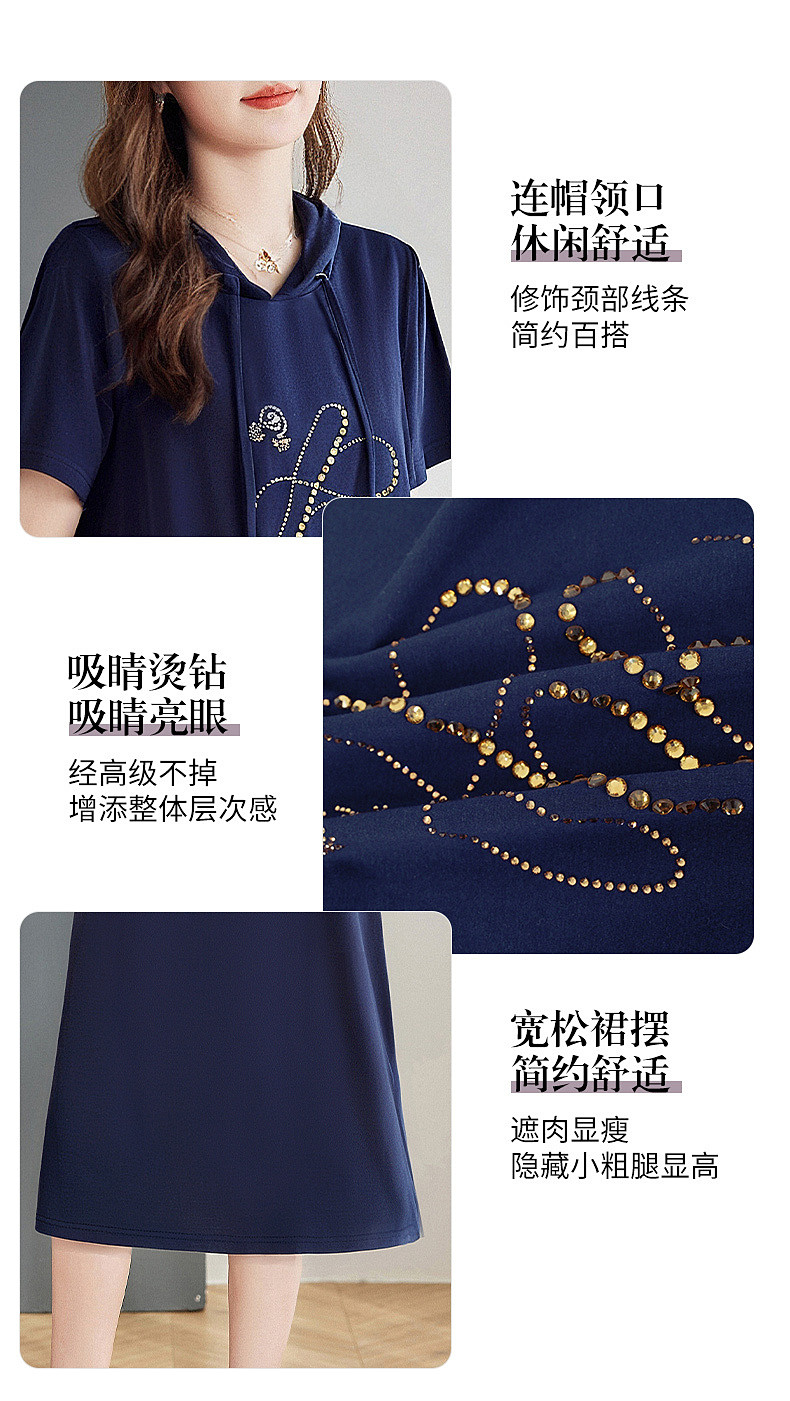连帽连衣裙女夏2026新款上衣大码女装短袖卫衣休闲中长款t恤裙子