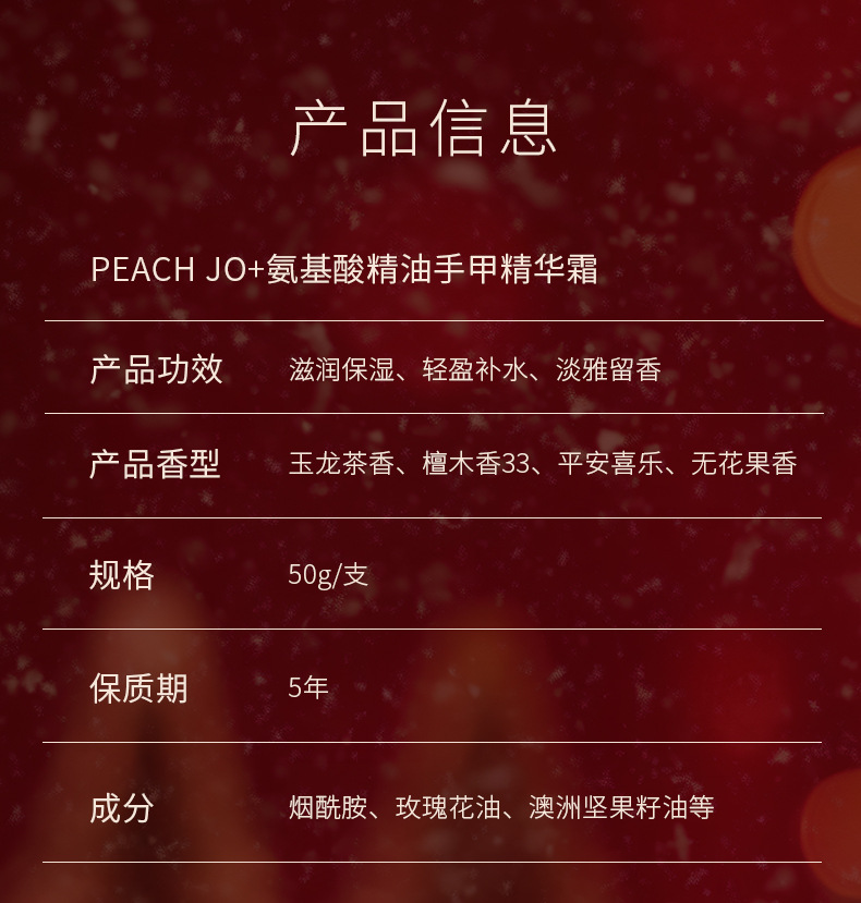 「9.9到手!高颜值」PEACH JO+氨基酸精油手霜护手霜保湿滋润补水圣诞节伴手礼物小支