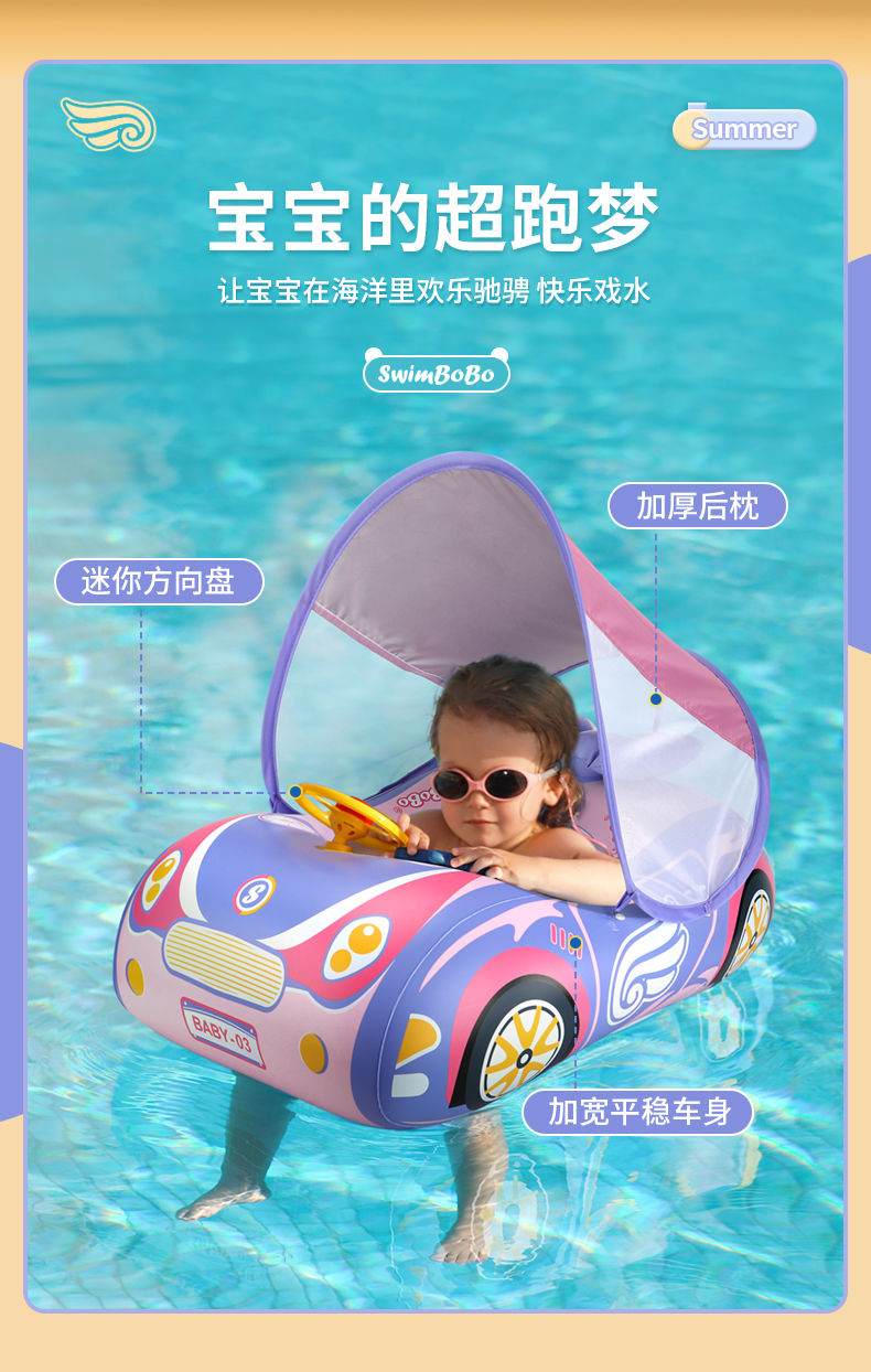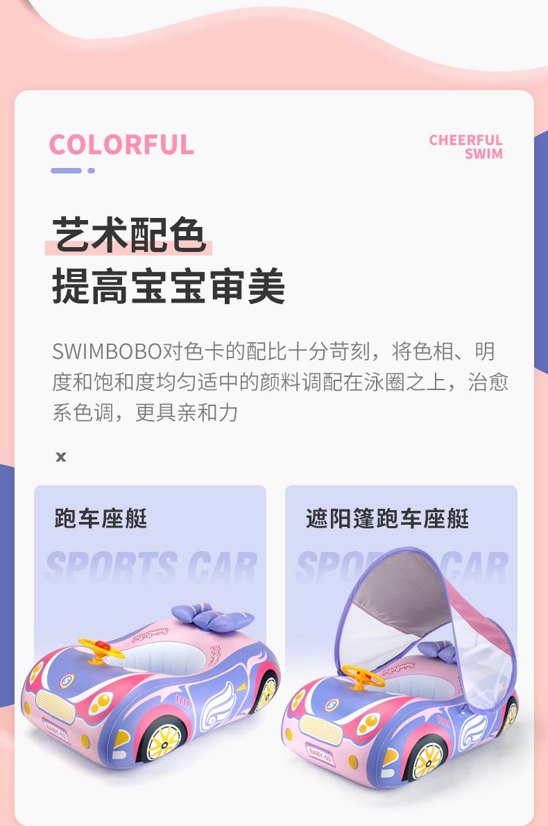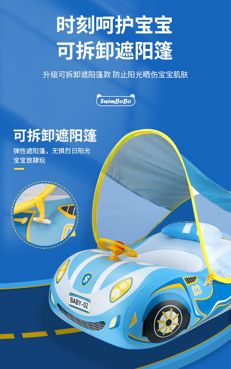 【遮阳篷跑车趴趴圈 炫酷出游】Swimbobo婴儿充气游泳圈 可拆卸遮阳篷 无惧烈日伤皮肤 激发宝宝游泳兴趣