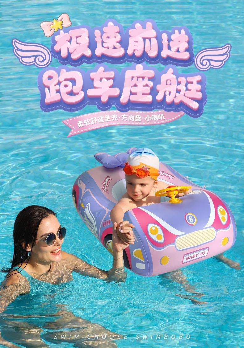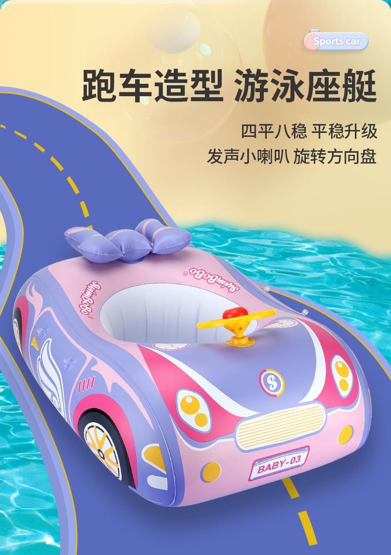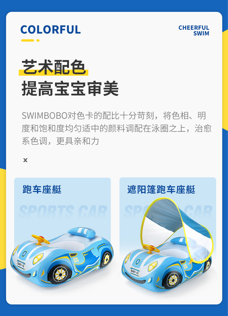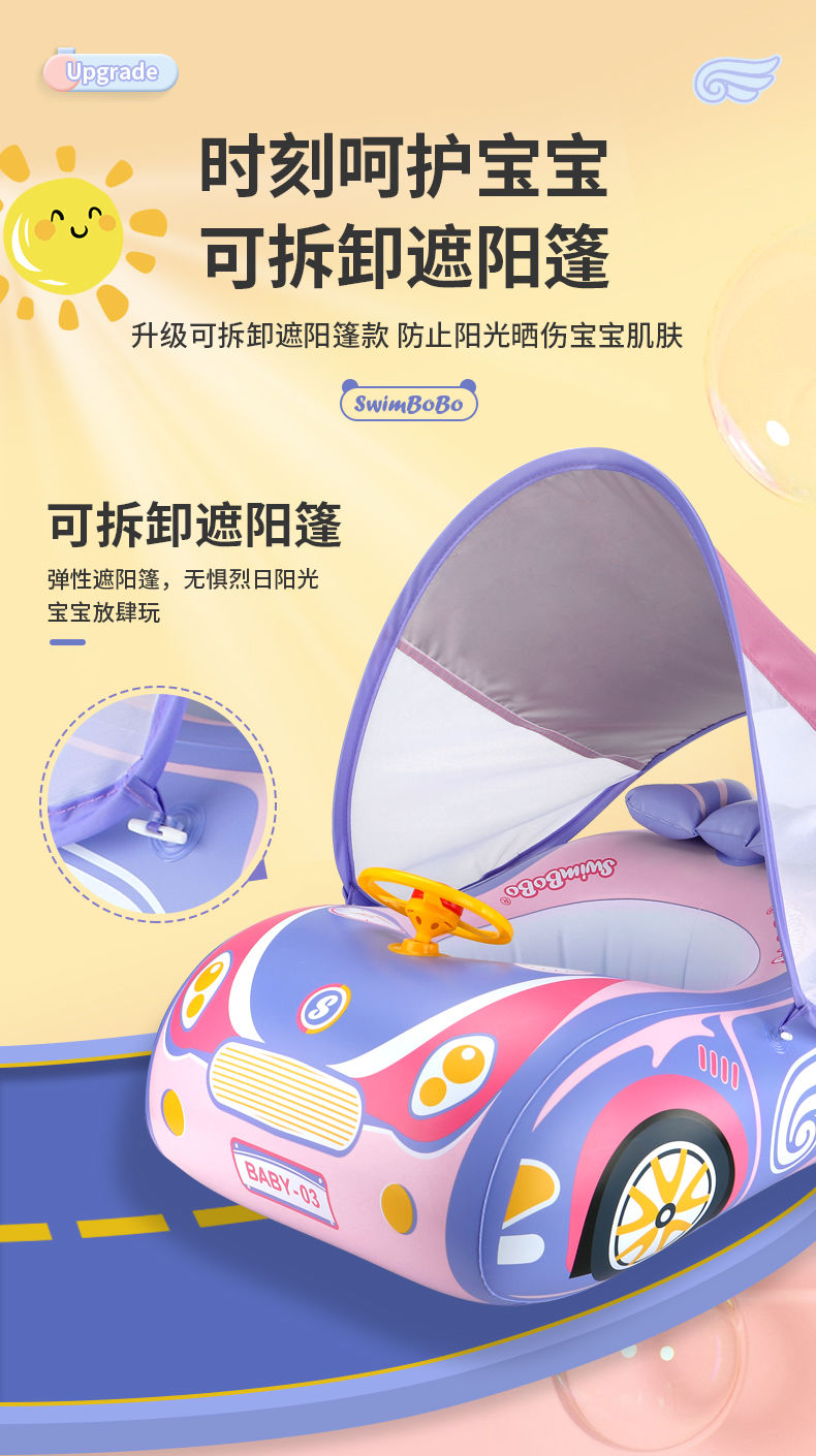 【遮阳篷跑车趴趴圈 炫酷出游】Swimbobo婴儿充气游泳圈 可拆卸遮阳篷 无惧烈日伤皮肤 激发宝宝游泳兴趣