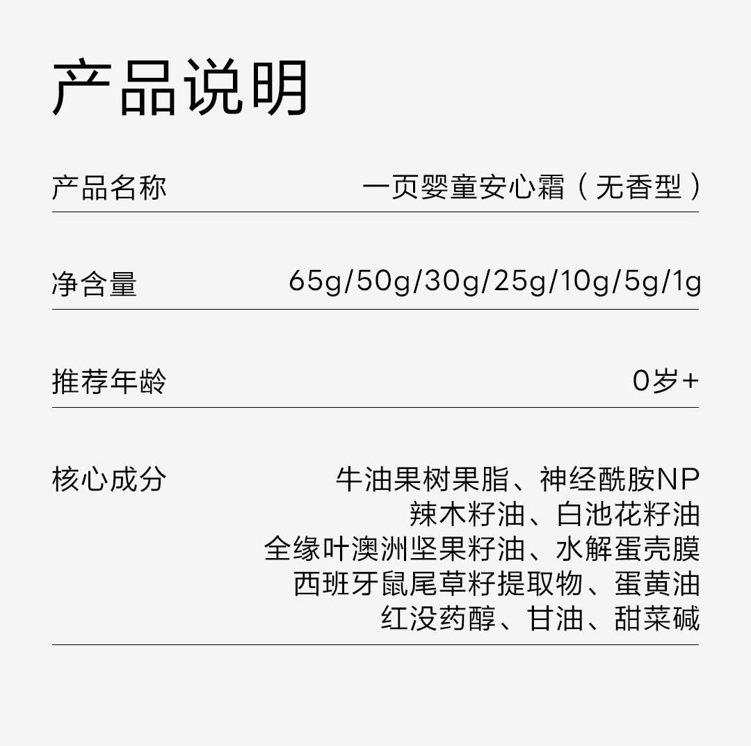 一页婴童安心润护套组65g无香安心霜+120ml润肤油+10g安心霜*3
