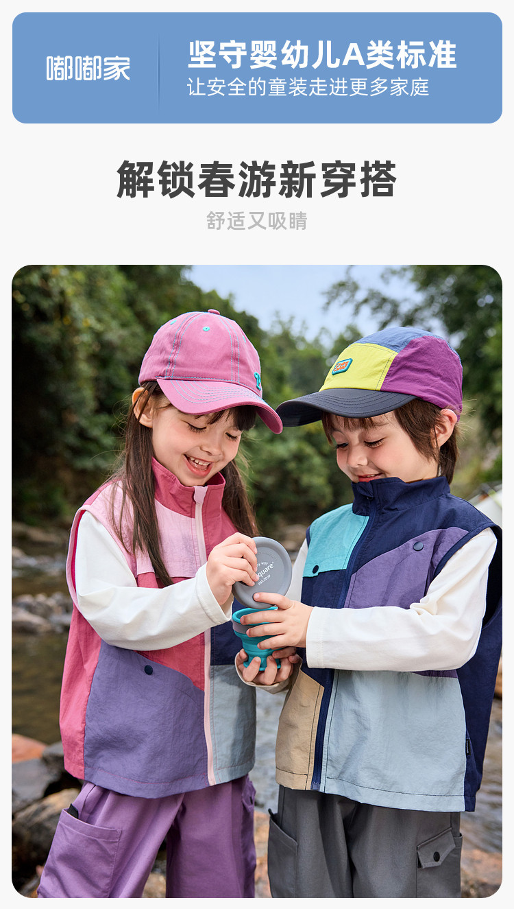 【防泼水】嘟嘟家男童马甲春季户外儿童背心春装女童露营马夹童装T6ABX024