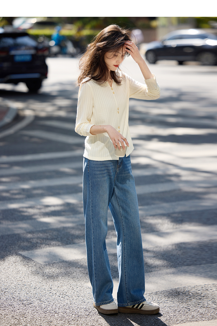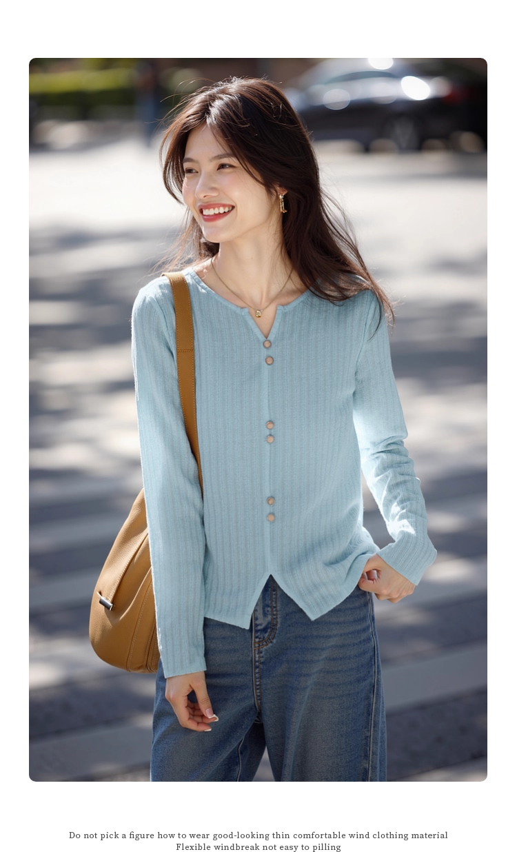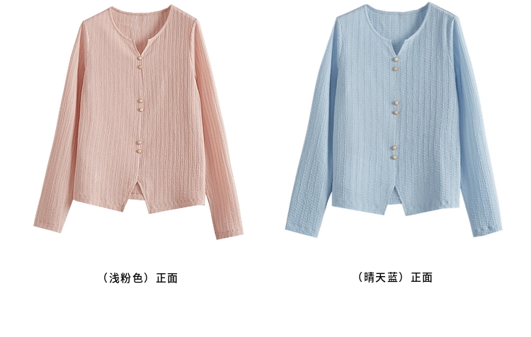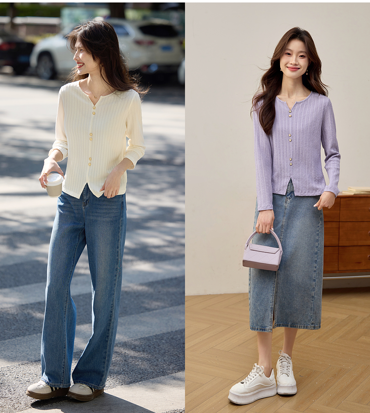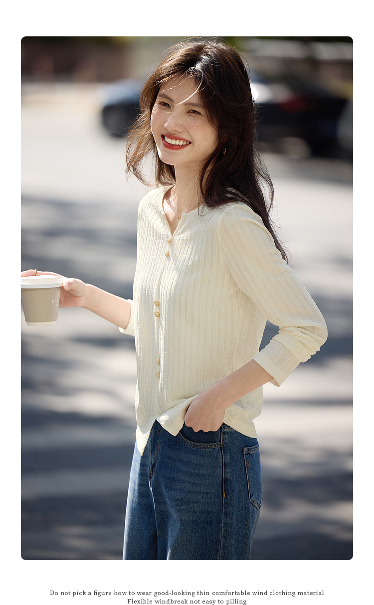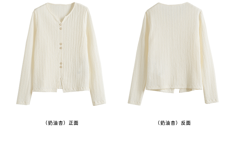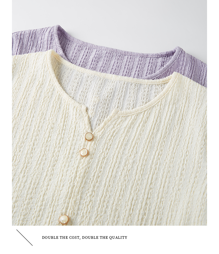 【年终特卖】熙世界2025春秋新款肌理感压花法式T恤女设计感开叉长袖正肩上衣