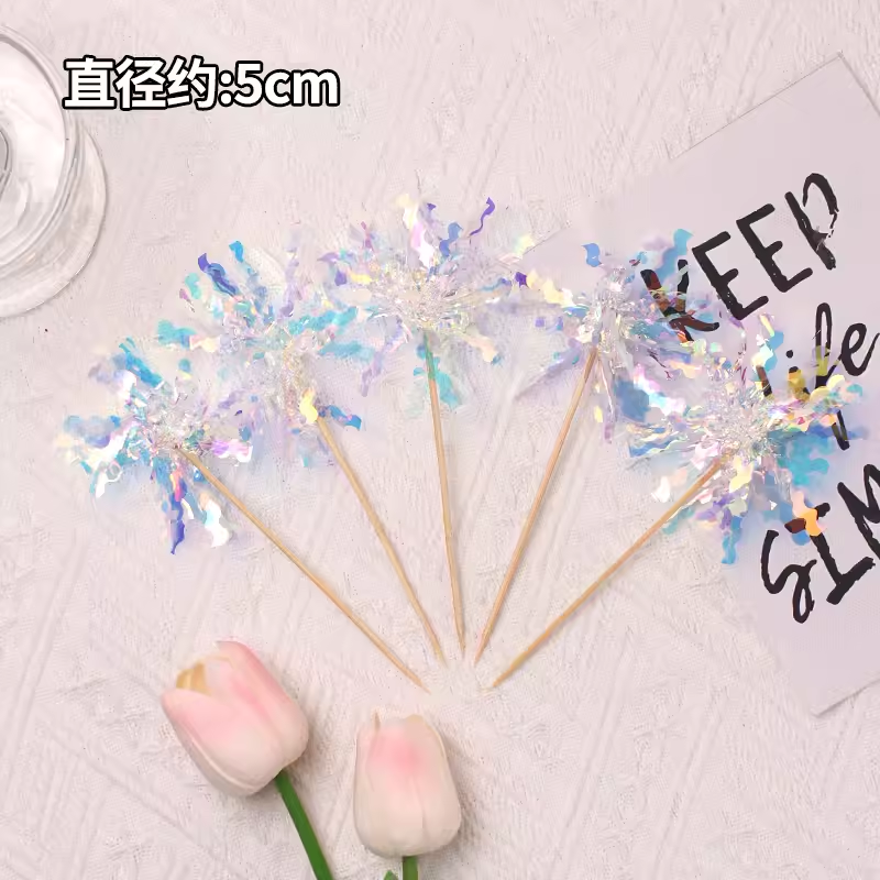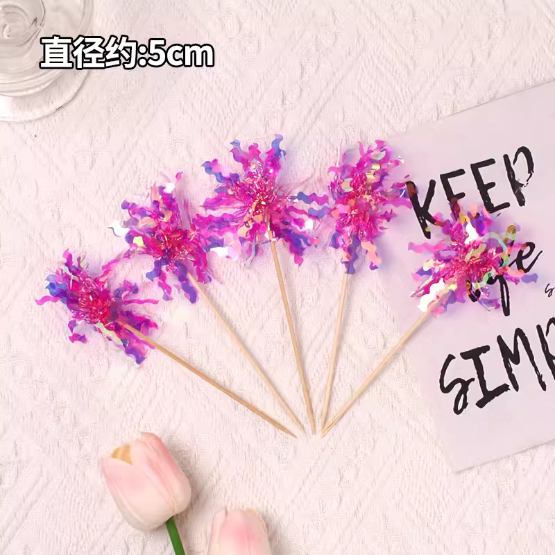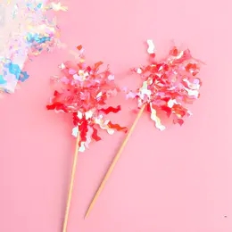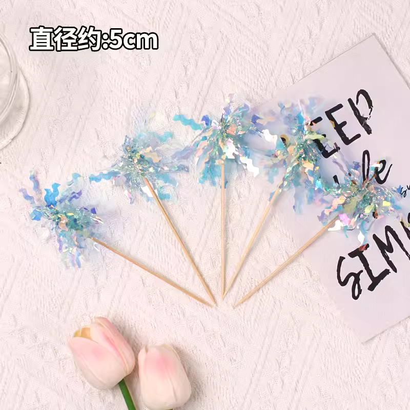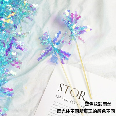 炫彩雨丝插件 ins风炫彩雨丝蛋糕装饰 亮片雨丝插签 创意生日派对插件