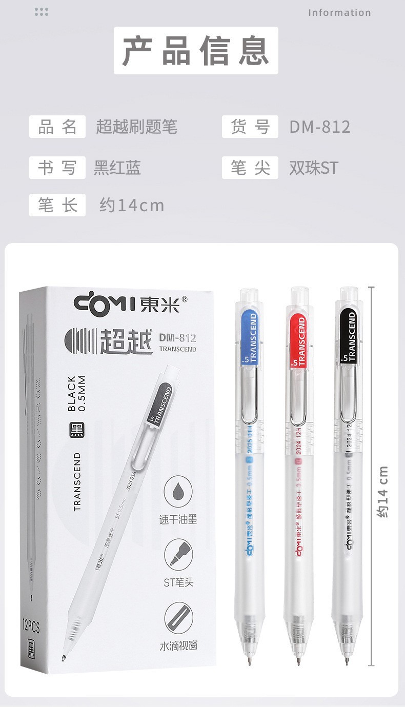东米812超越款简约学生办公0.5mm黑红蓝ins风ST头
