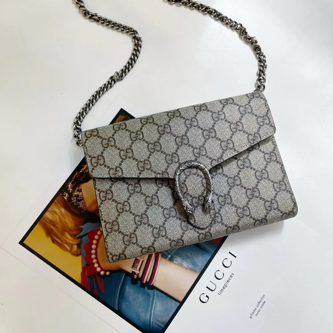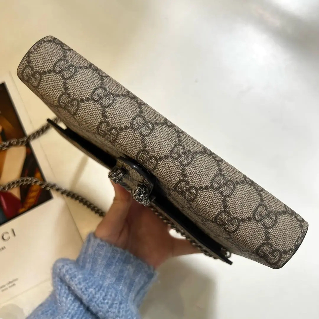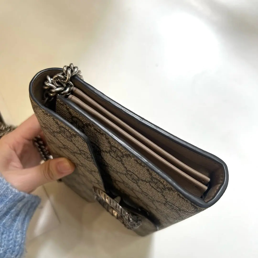 【商品详情】正品二手 GUCCI 酒神 woc 乌木色 小号 老花 链条包 👻 98新 20*14 配件:防尘袋。经典精致