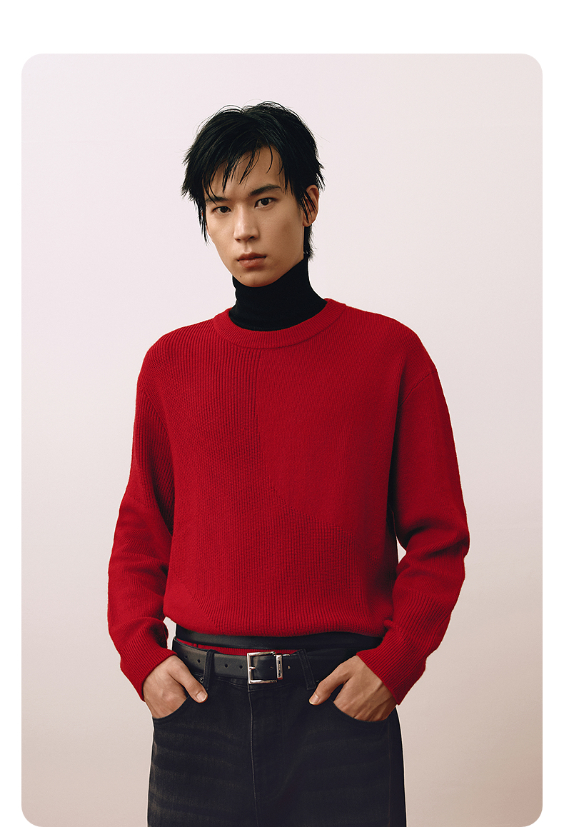 GXG男装 红色新年毛衣本命年男针织衫 25年春季热卖G25X201011
