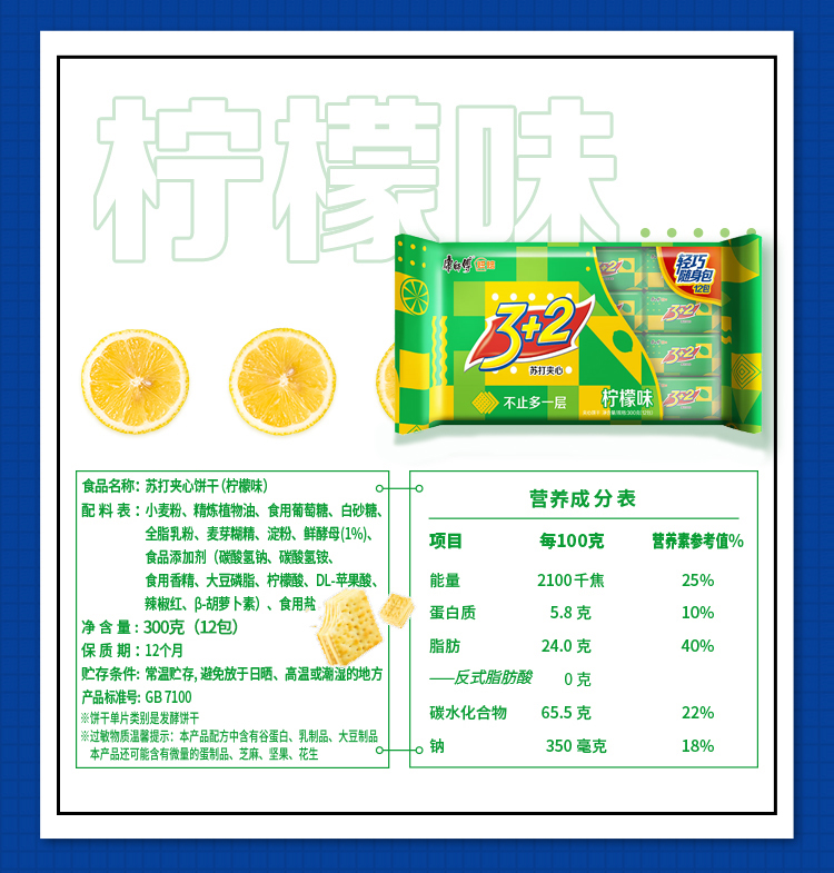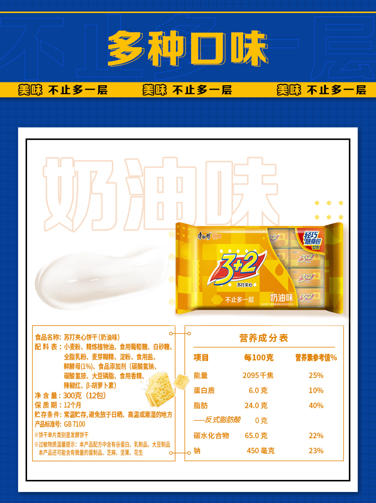 康师傅3+2苏打夹心饼干分享装300g*3包