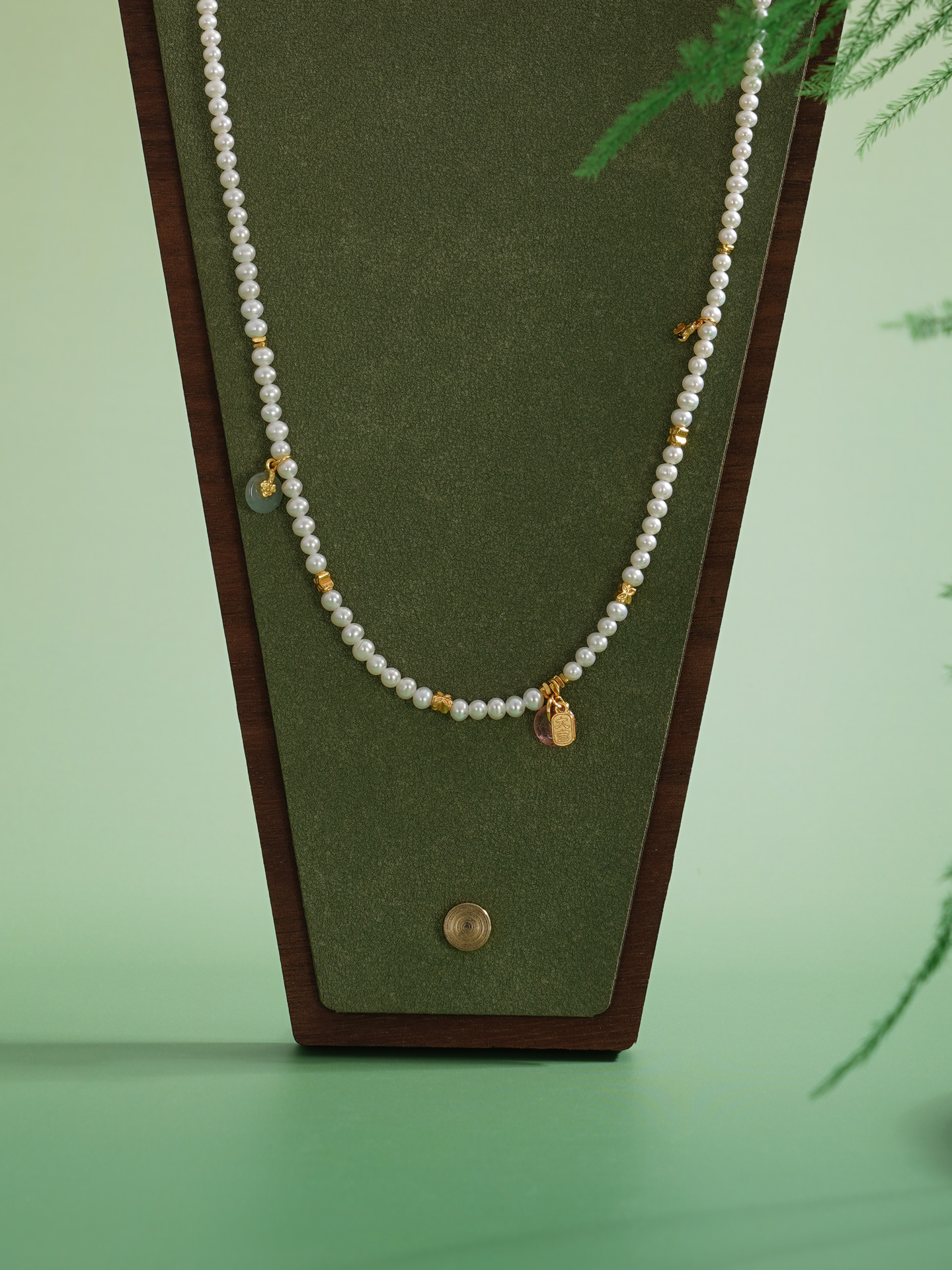 子佩集【福乐共生】银S925珍珠项链【QNX0015】3mm珠大吉镀金平安扣2512