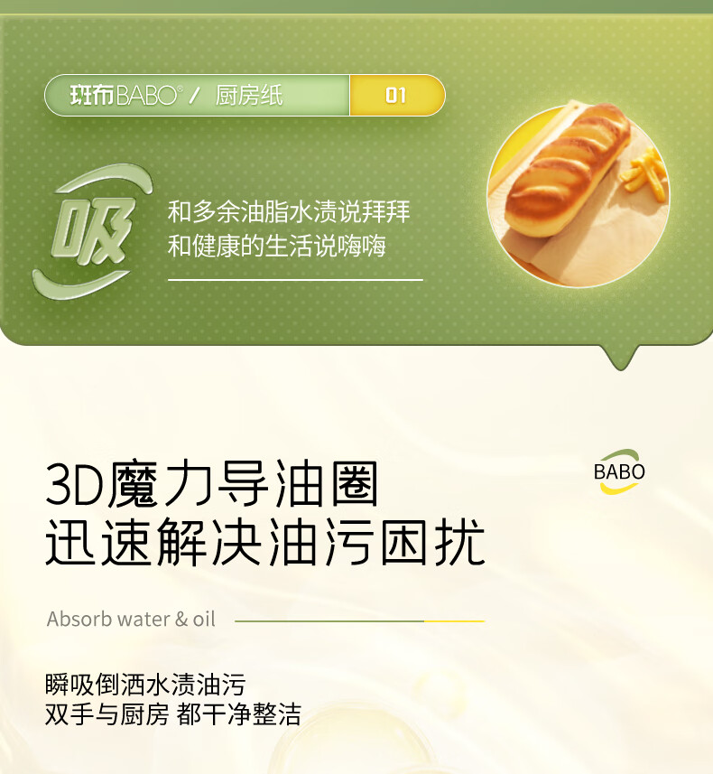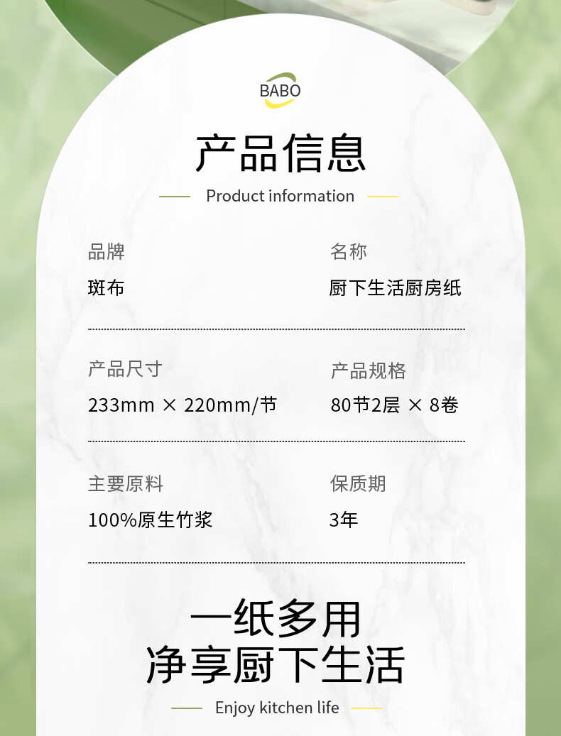 【分仓直发包邮】斑布厨下生活系列厨房纸巾80节*8卷