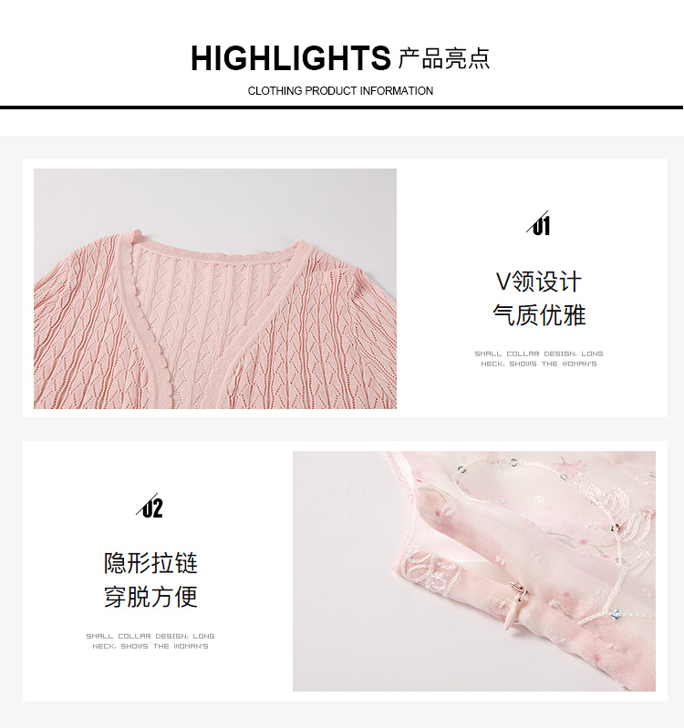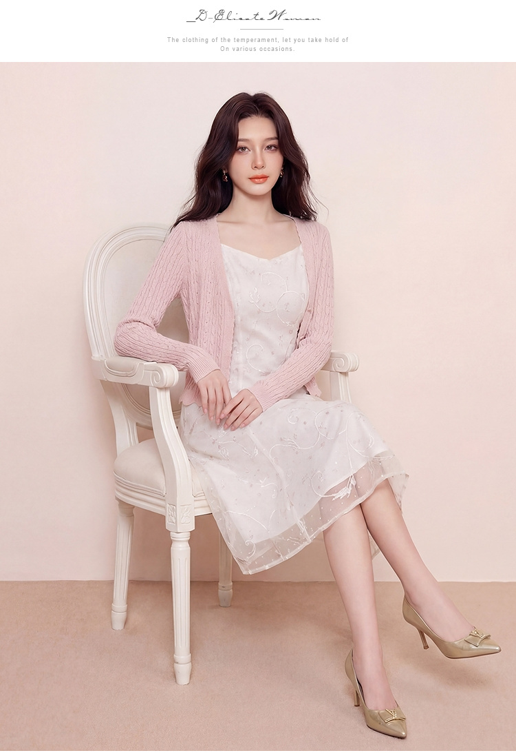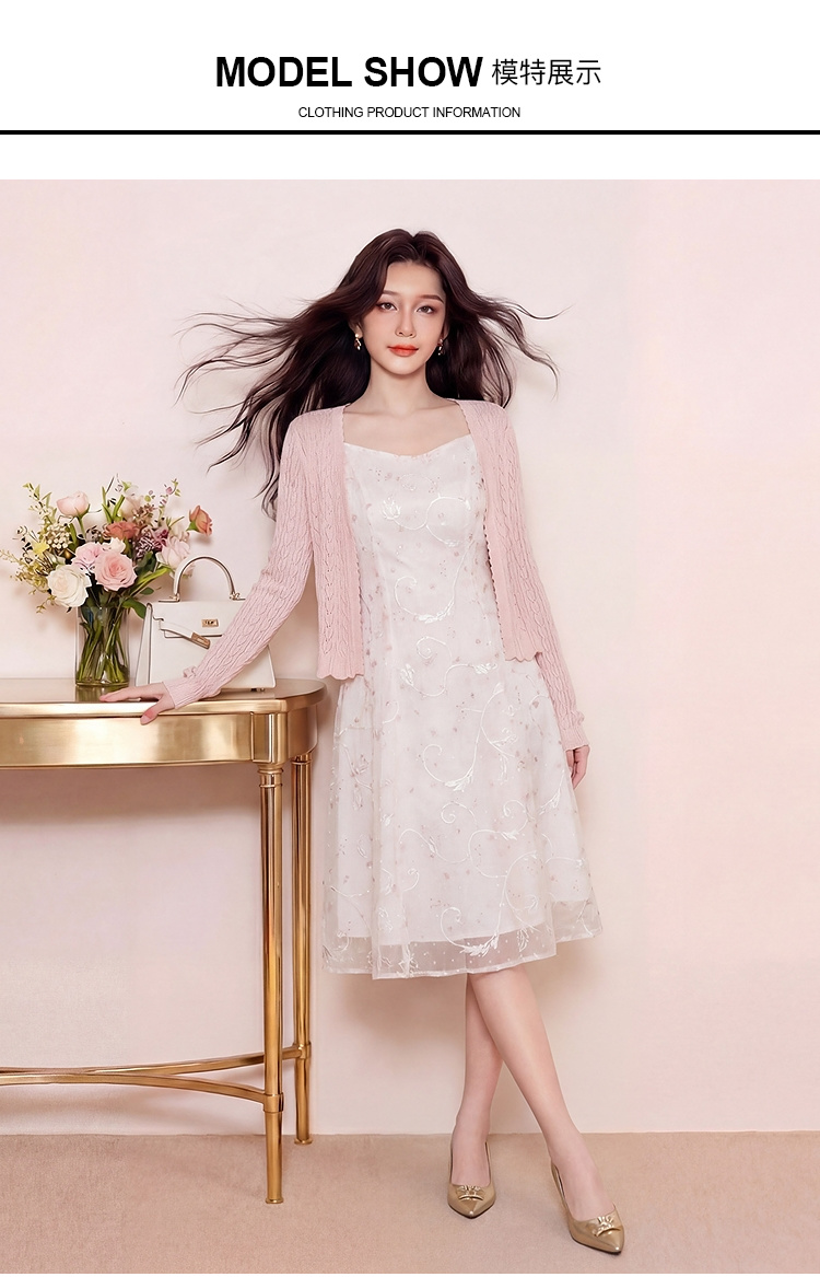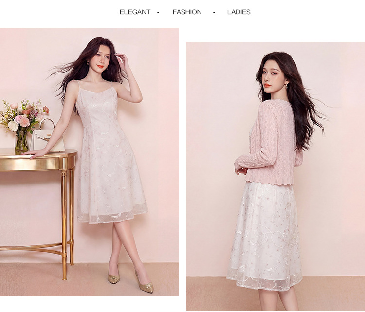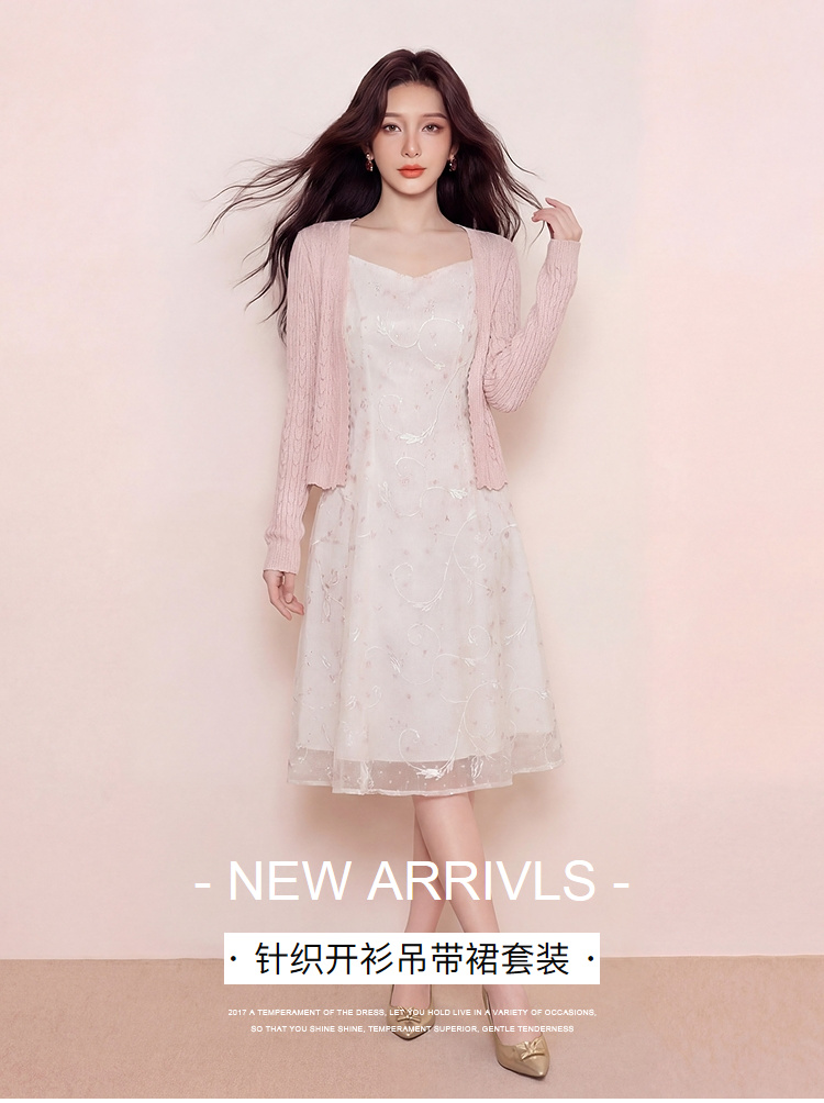 奢姿大码女装2026夏季胖妹妹针织开衫温柔粉蕾丝吊带裙套装两件套9962960029AB