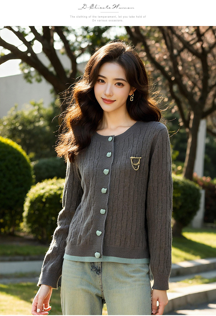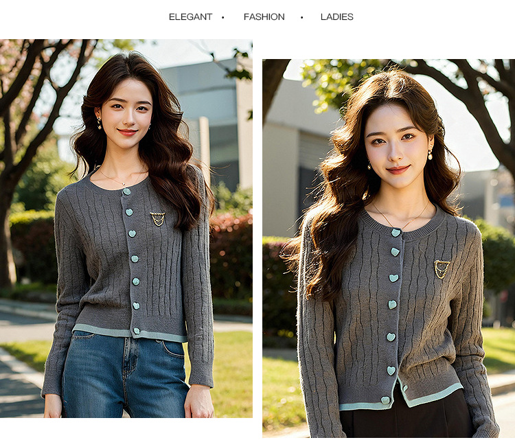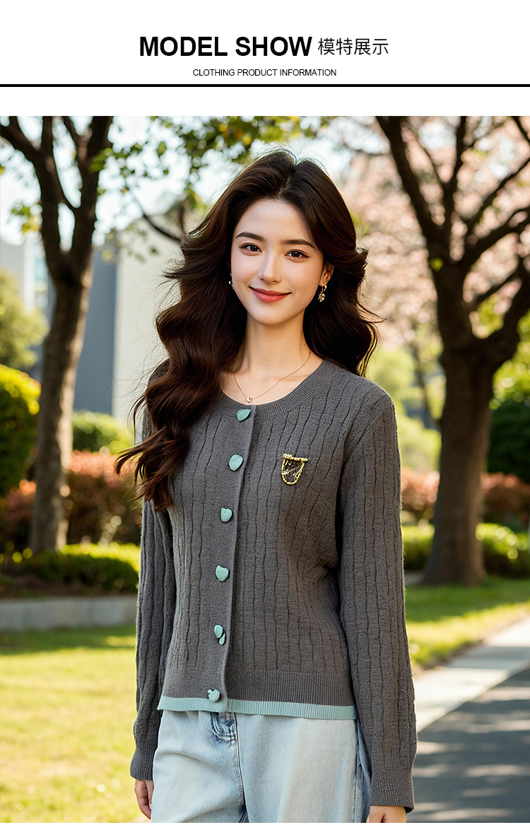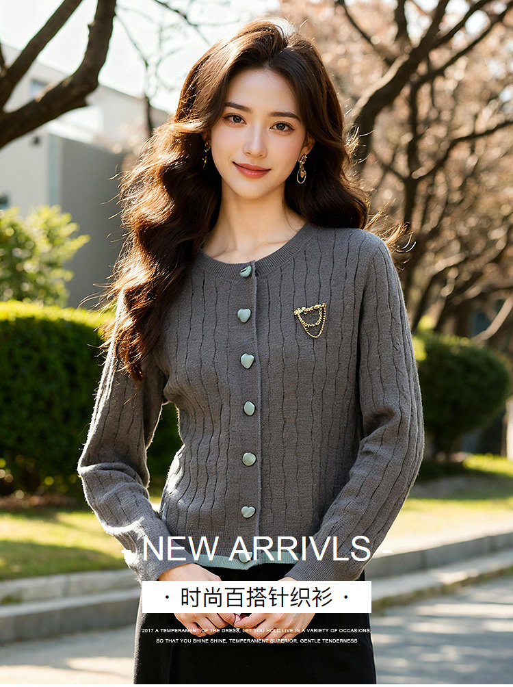 奢姿大码女装2025春季减龄链条时尚针织衫胖妹妹爱心扣百搭上衣9651621559