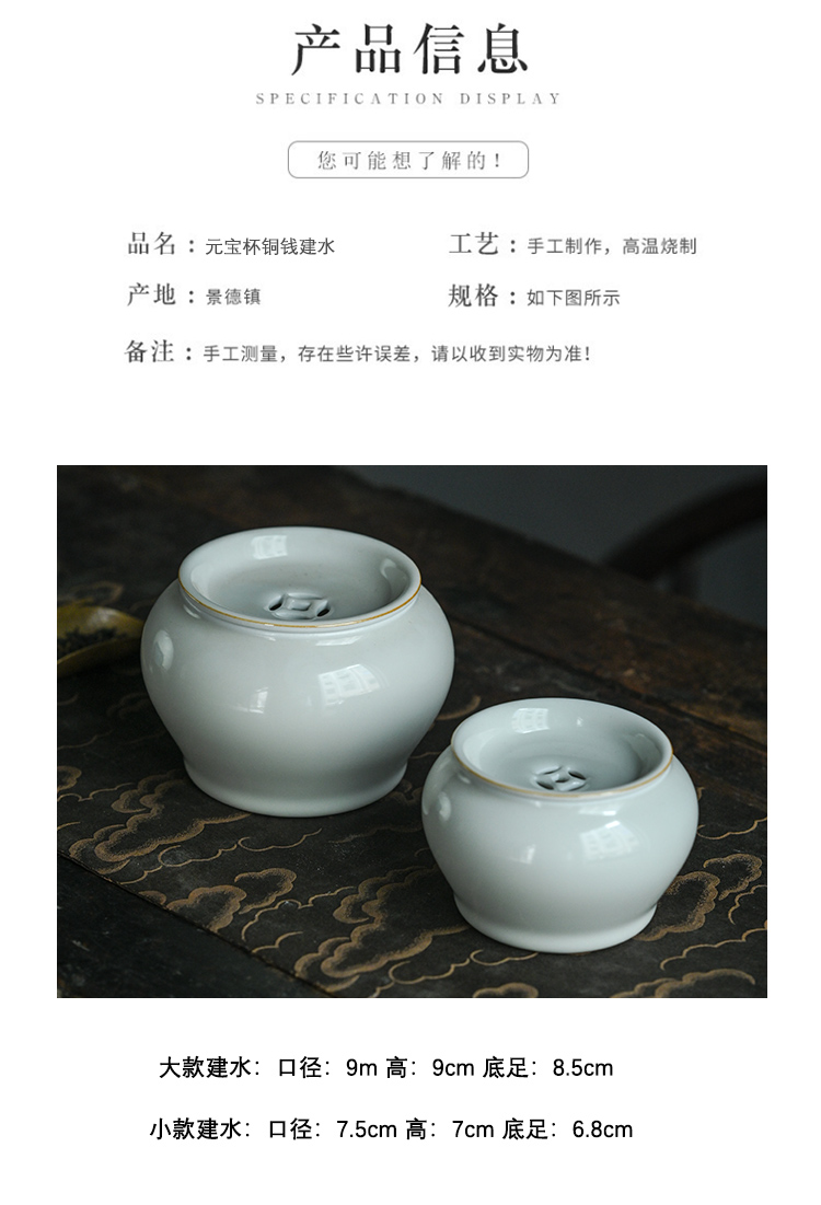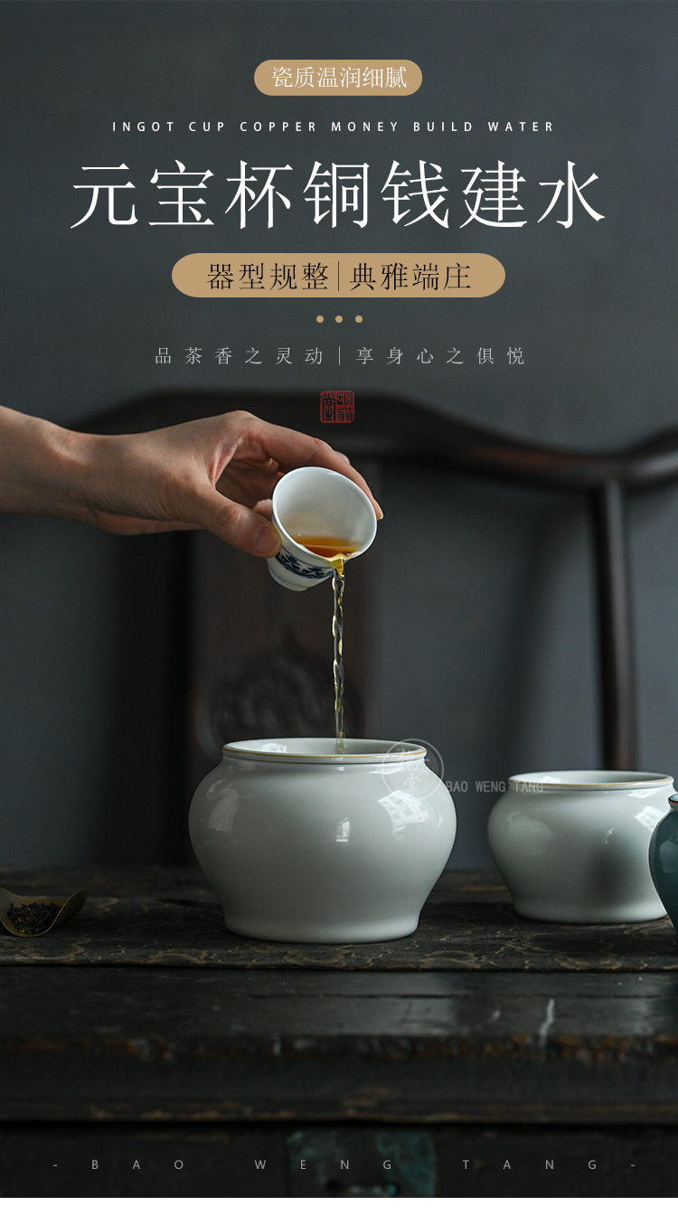 【抱翁堂】景德镇元宝杯铜钱建水陶瓷水洗茶洗【甜白釉铜钱建水/大】