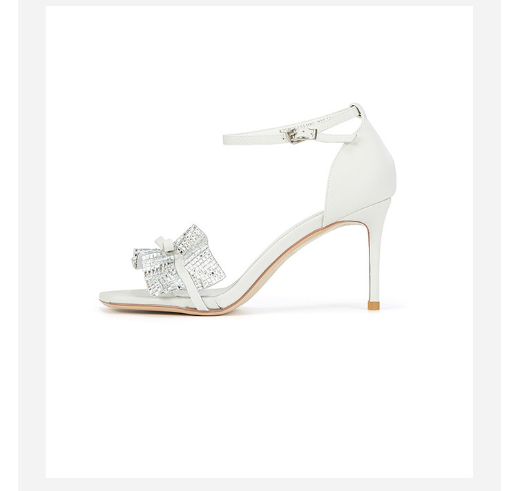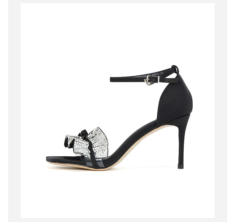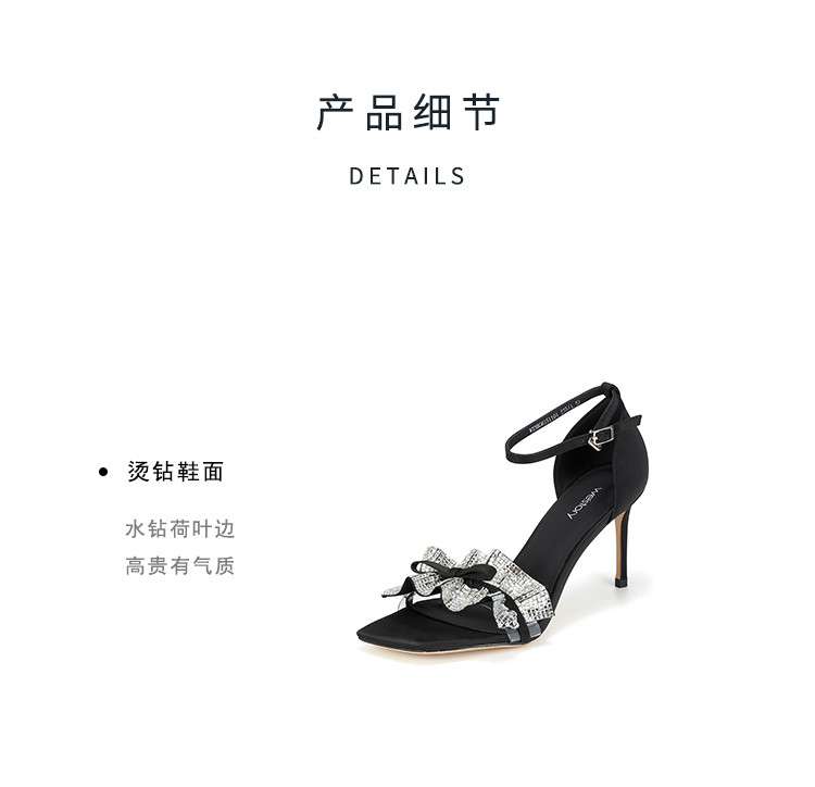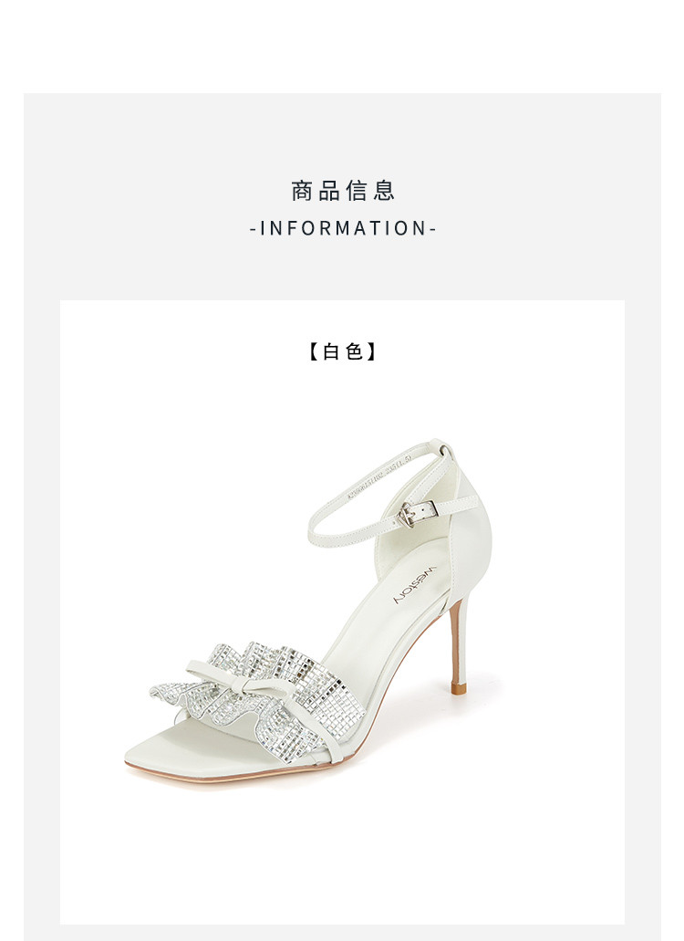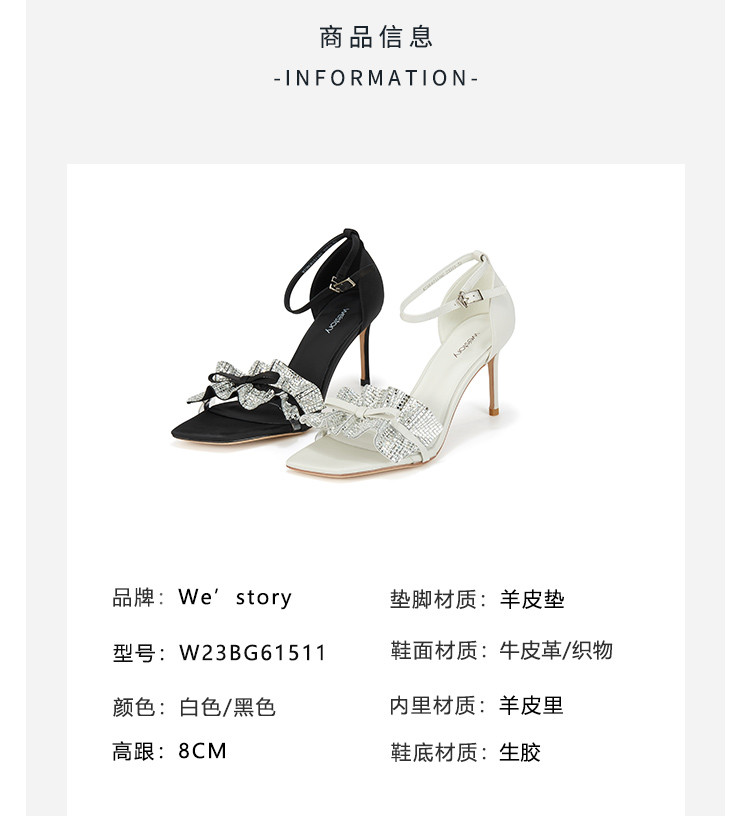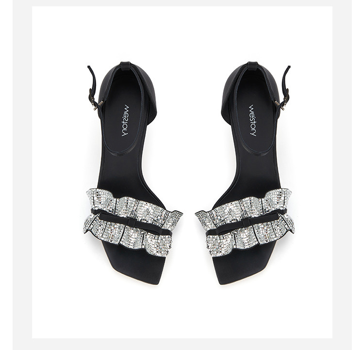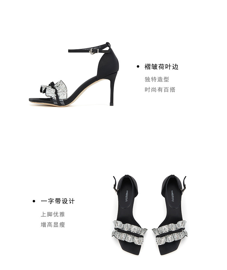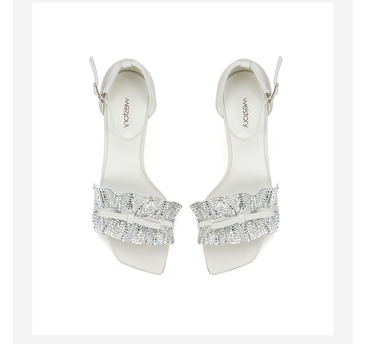 westory女鞋夏季新款尖头高跟细跟银色饰扣一字带后包凉鞋61511