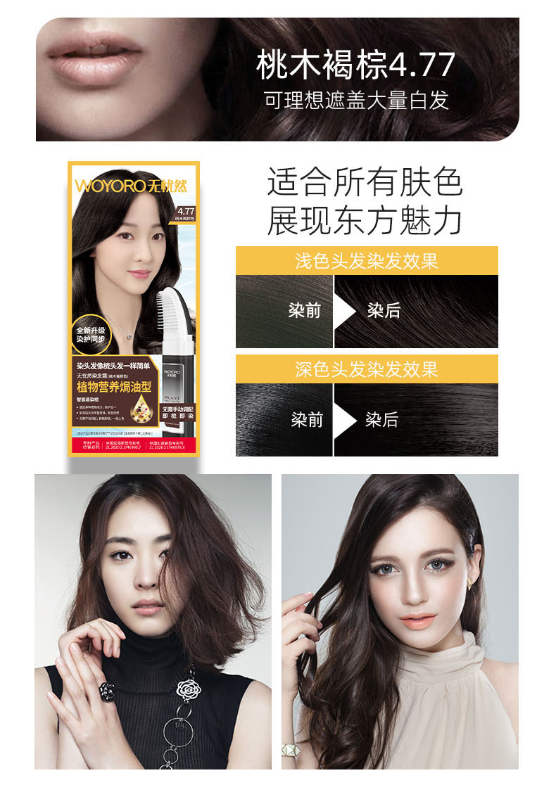 无忧然易染梳自然黑色/桃木褐棕色 有效期26.5月