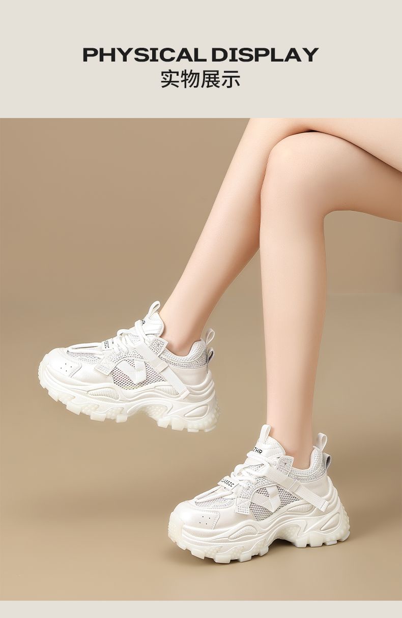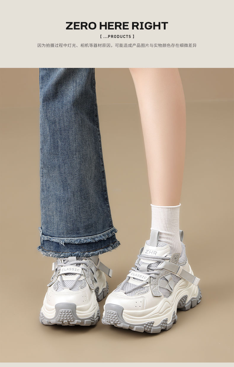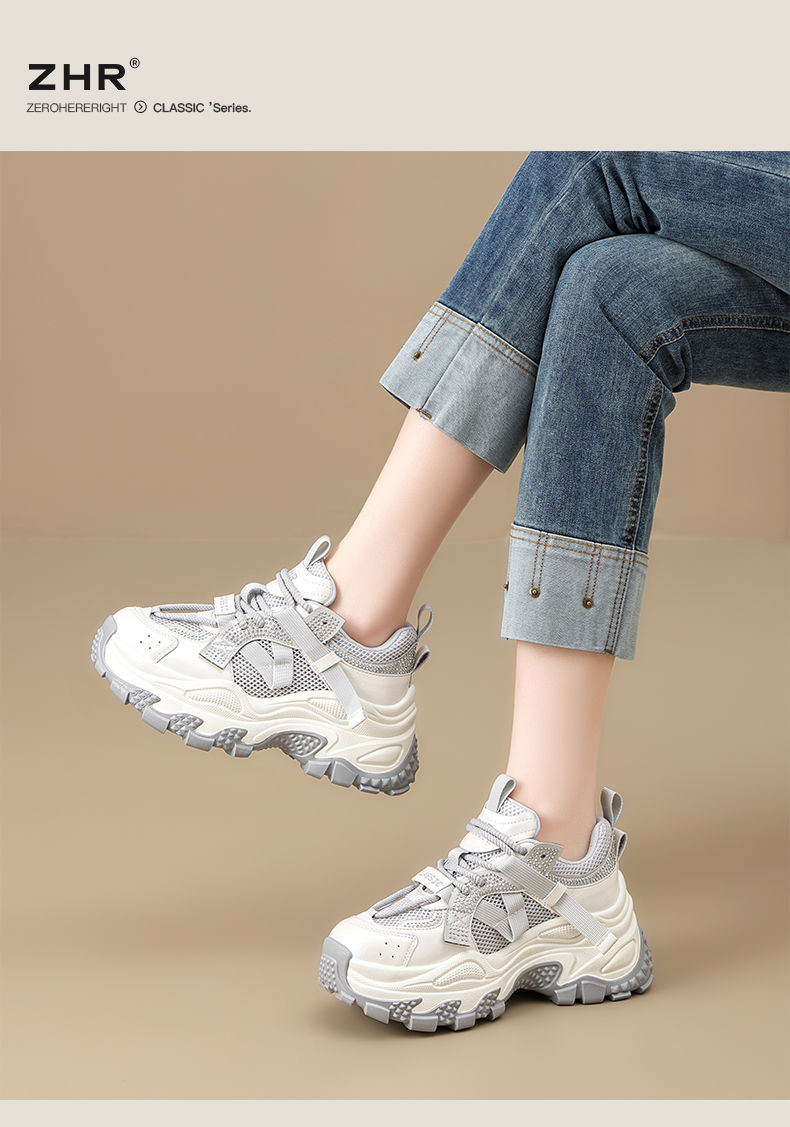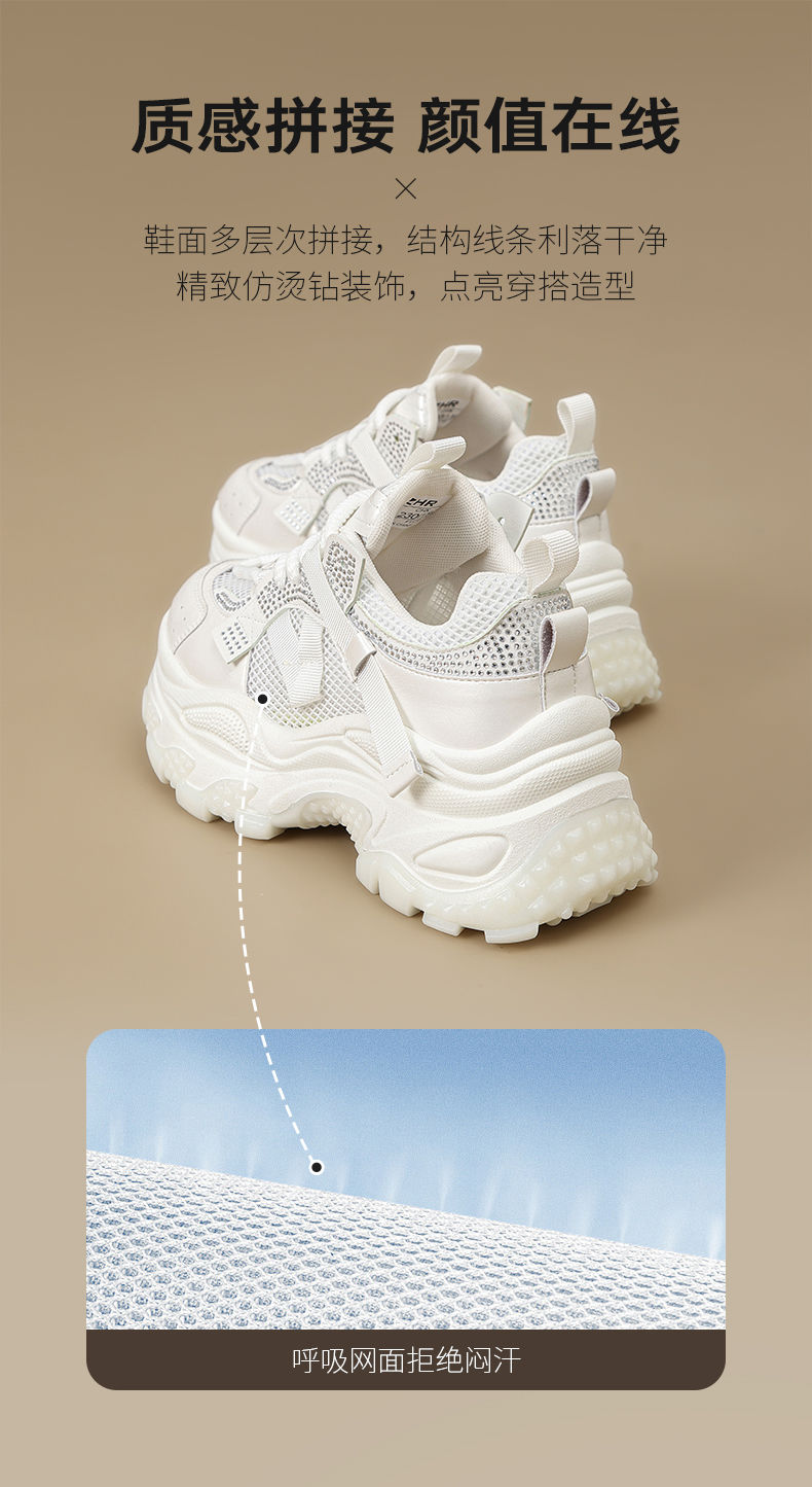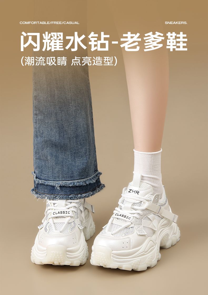 ZHR则则网面透气老爹鞋女2025夏季新款水钻小个子增高厚底休闲运动鞋