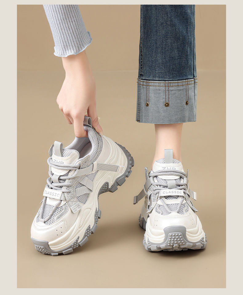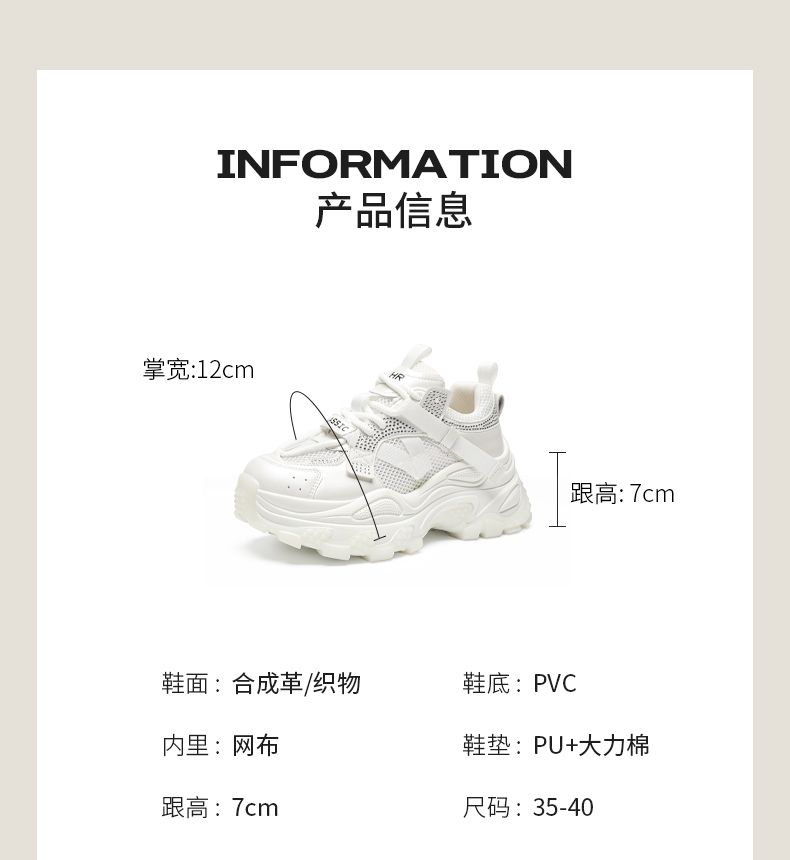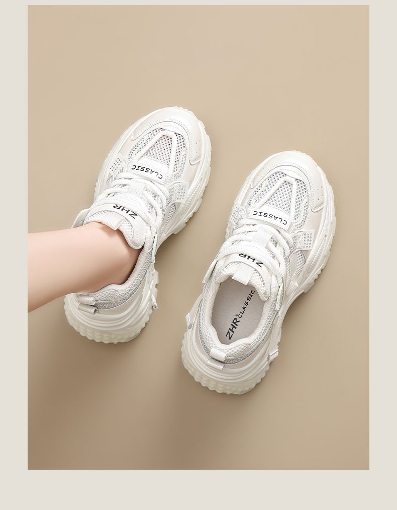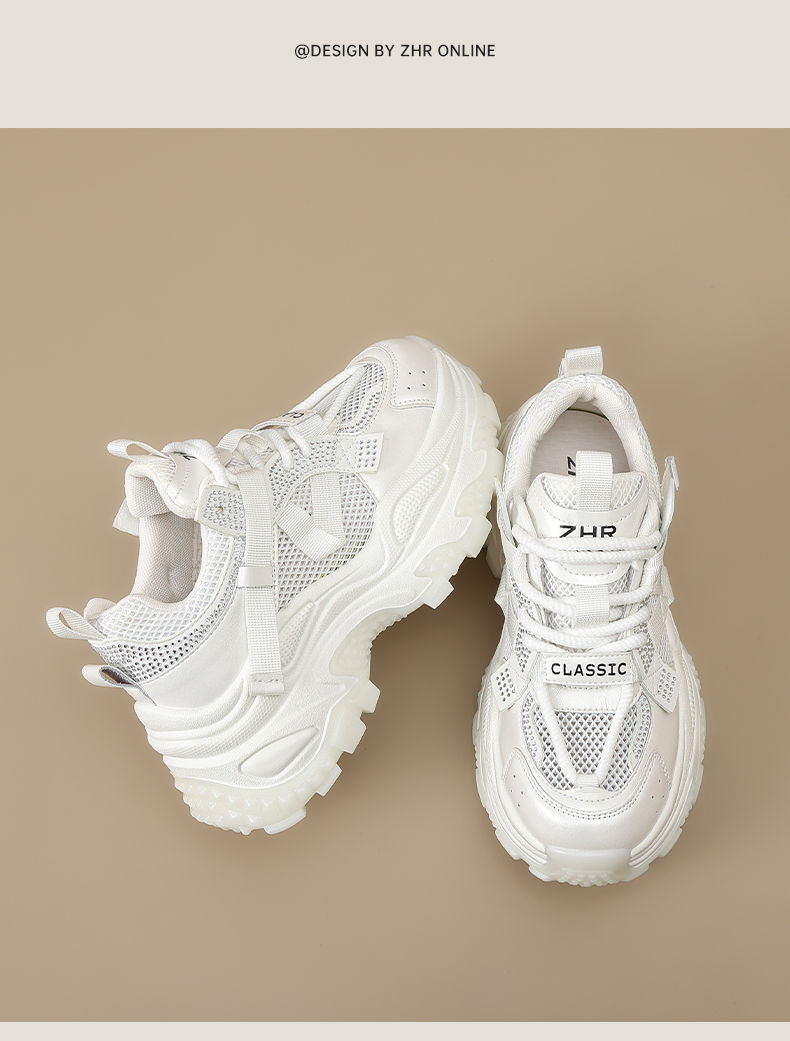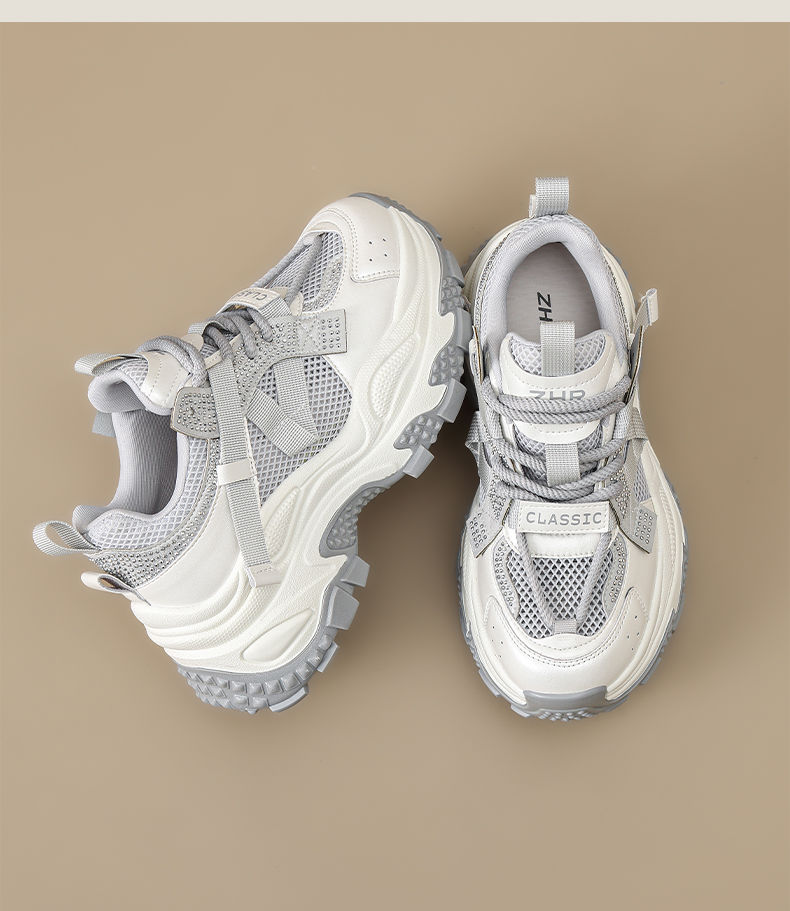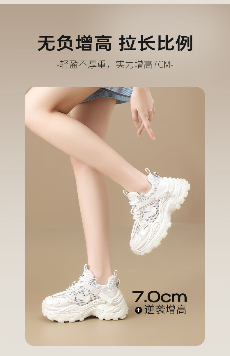 ZHR则则网面透气老爹鞋女2025夏季新款水钻小个子增高厚底休闲运动鞋