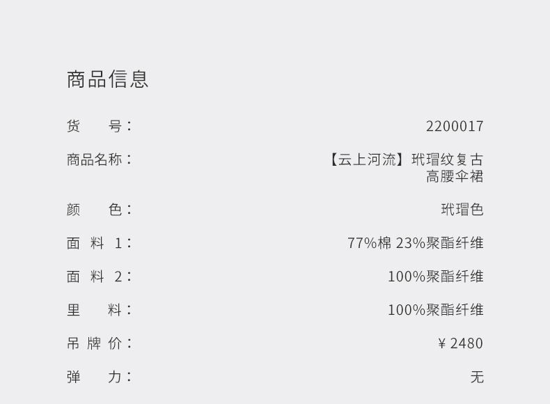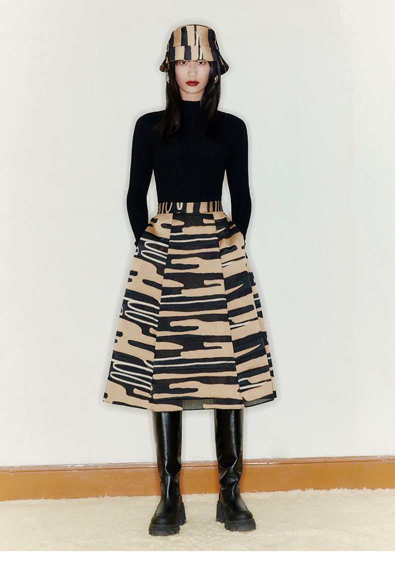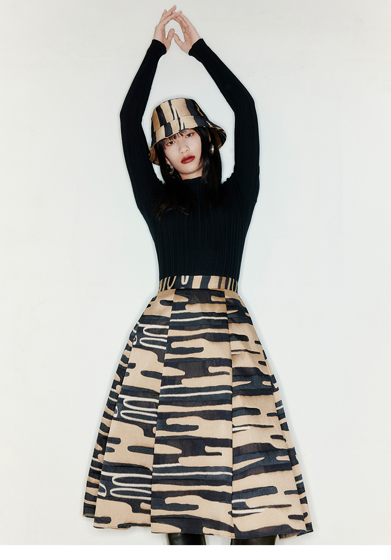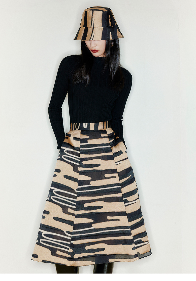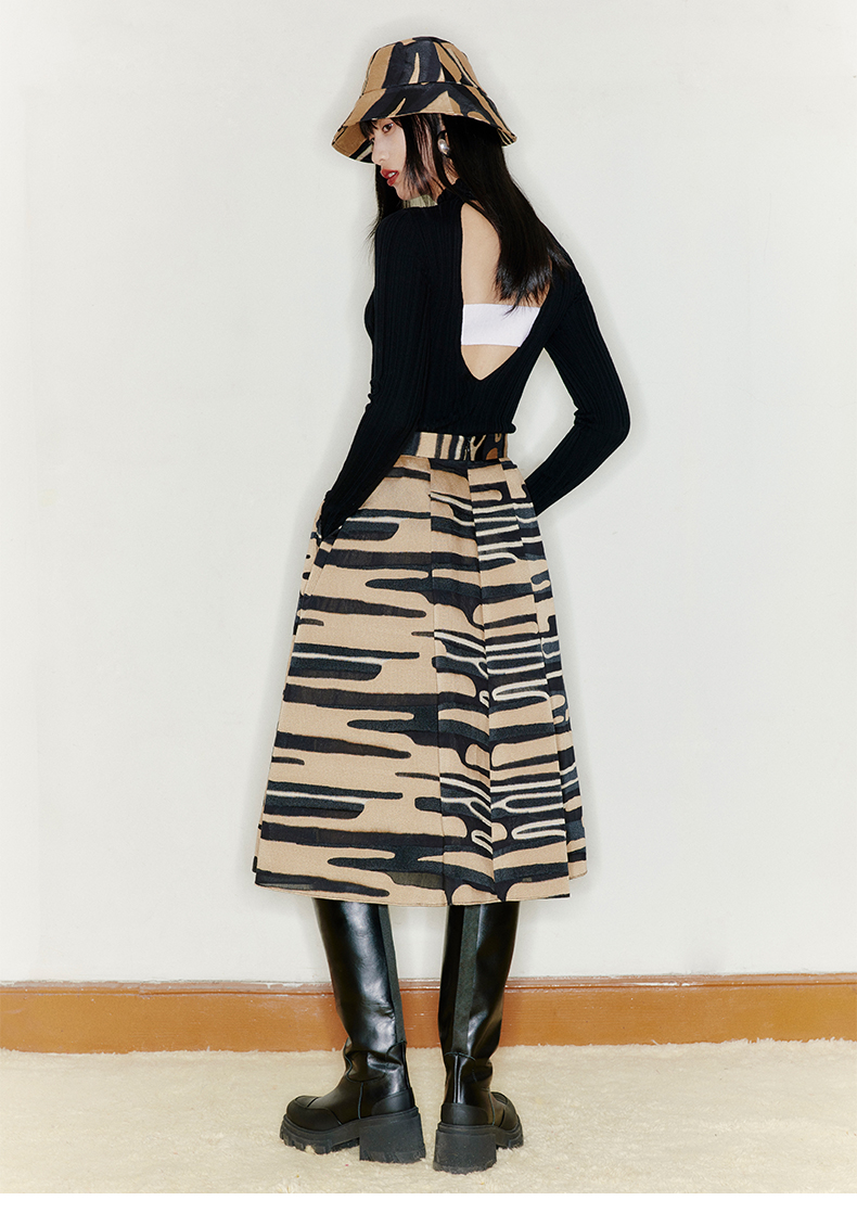 【云上河流】玳瑁纹复古高腰伞裙/2200017