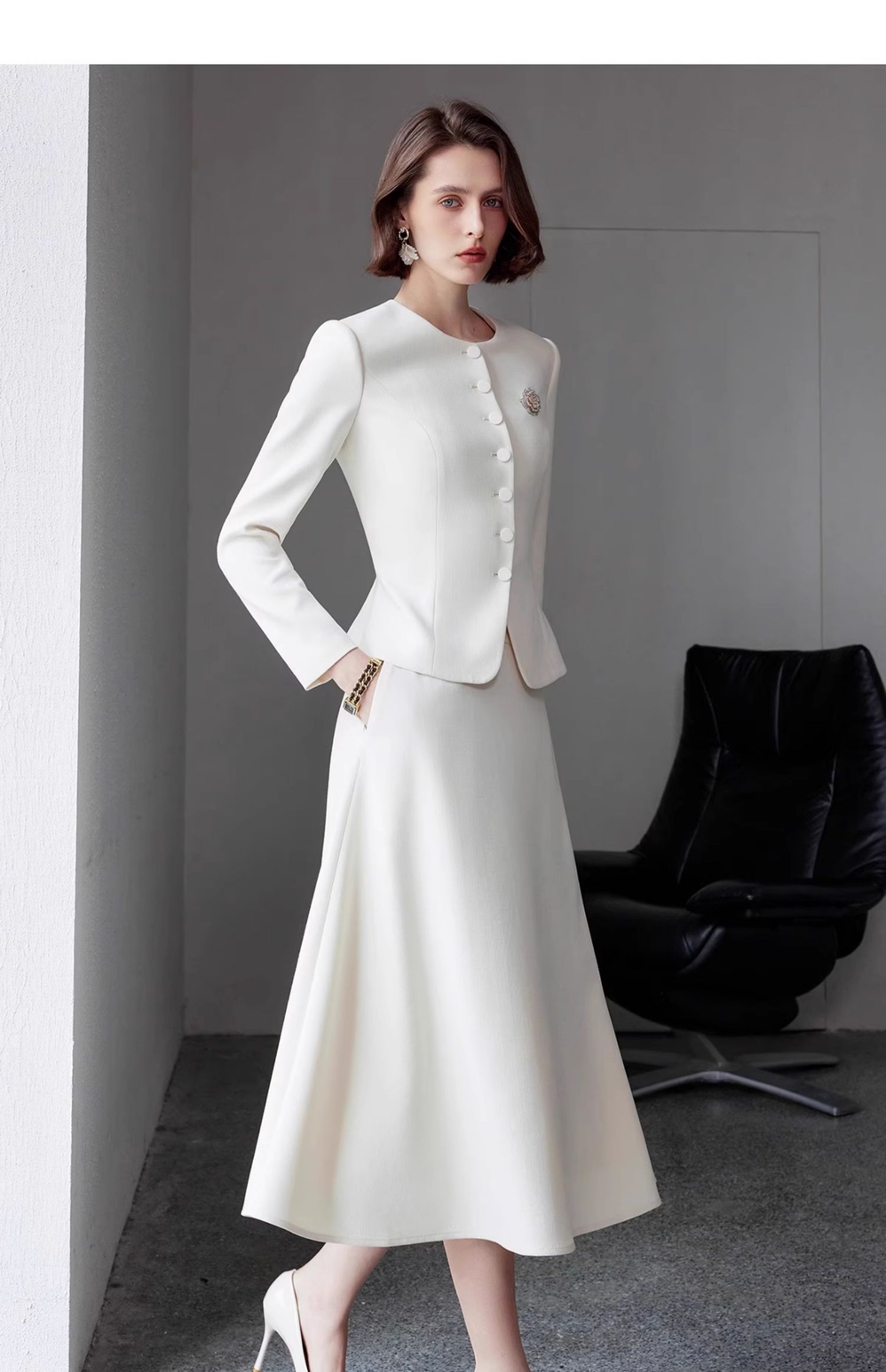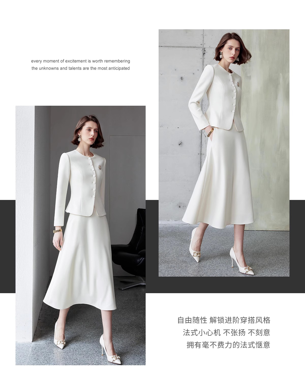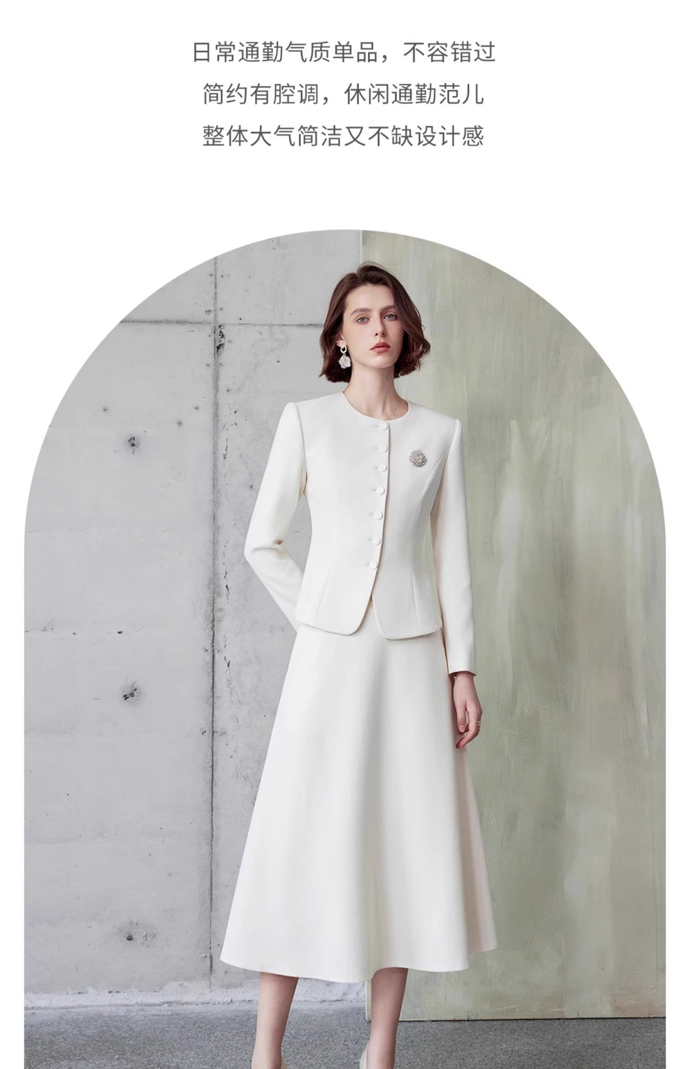 IWY/时尚米白色职业西装套裙女演讲主持上镜正装职业女裙套装涤纶外套C2040+S2102