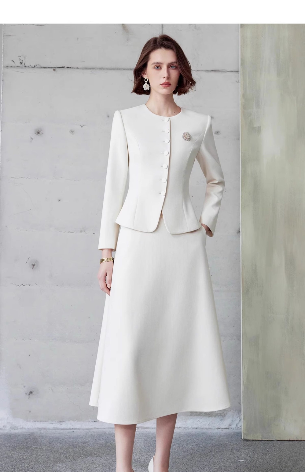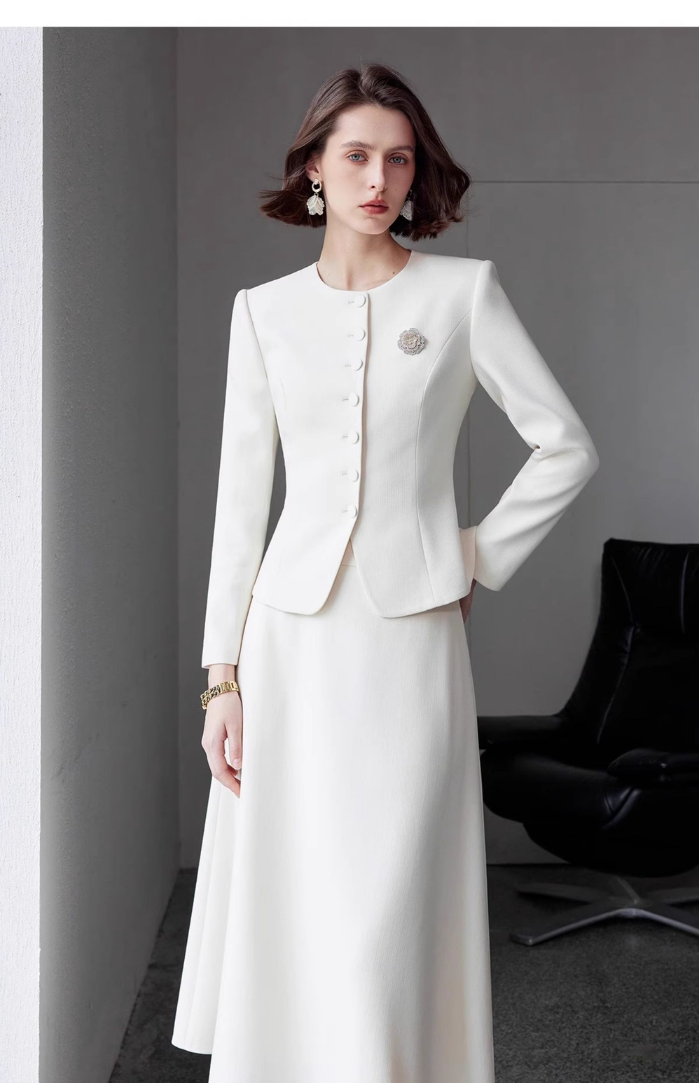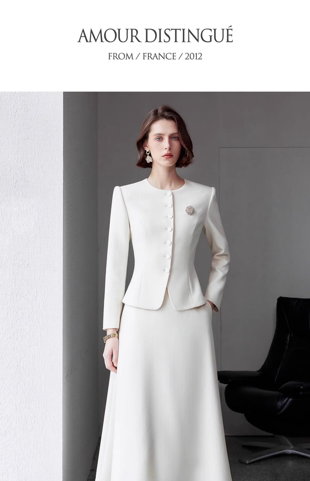 IWY/时尚米白色职业西装套裙女演讲主持上镜正装职业女裙套装涤纶外套C2040+S2102