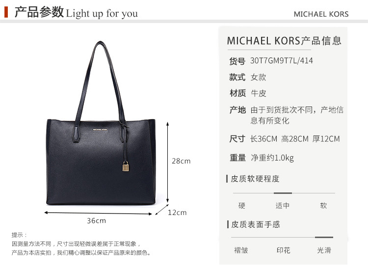 MichaelKors/迈克·科尔斯女士Saffiano皮革单肩手提包30T7GM9T7L深蓝色