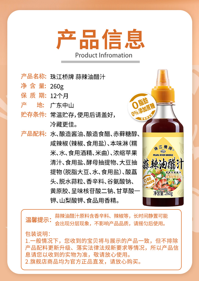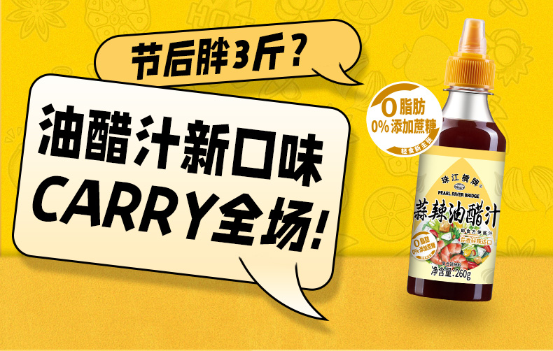 珠江桥牌 蒜辣油醋汁260gX3瓶