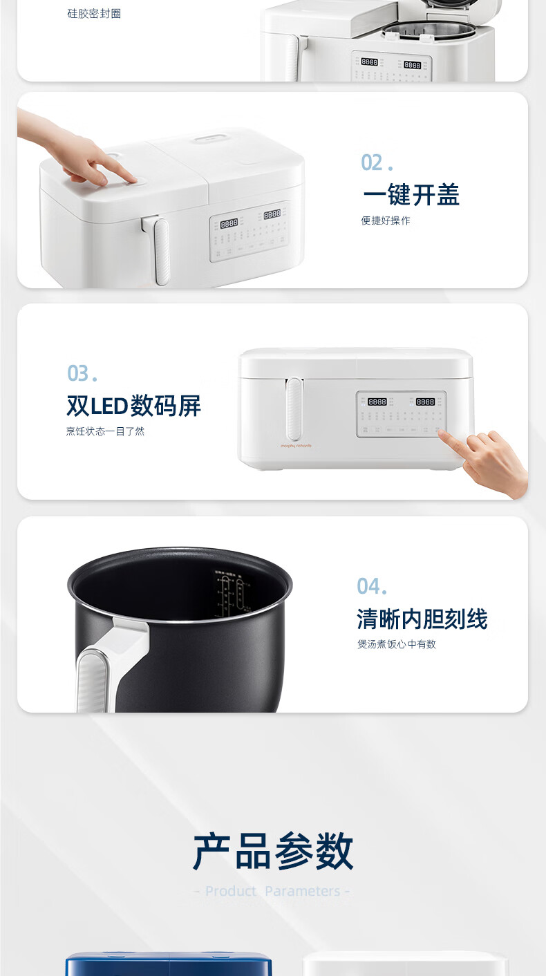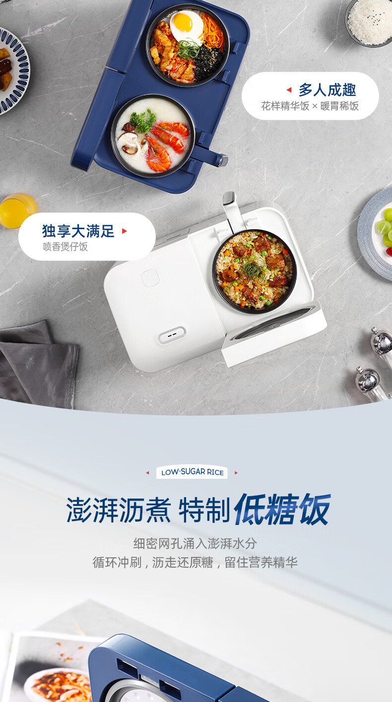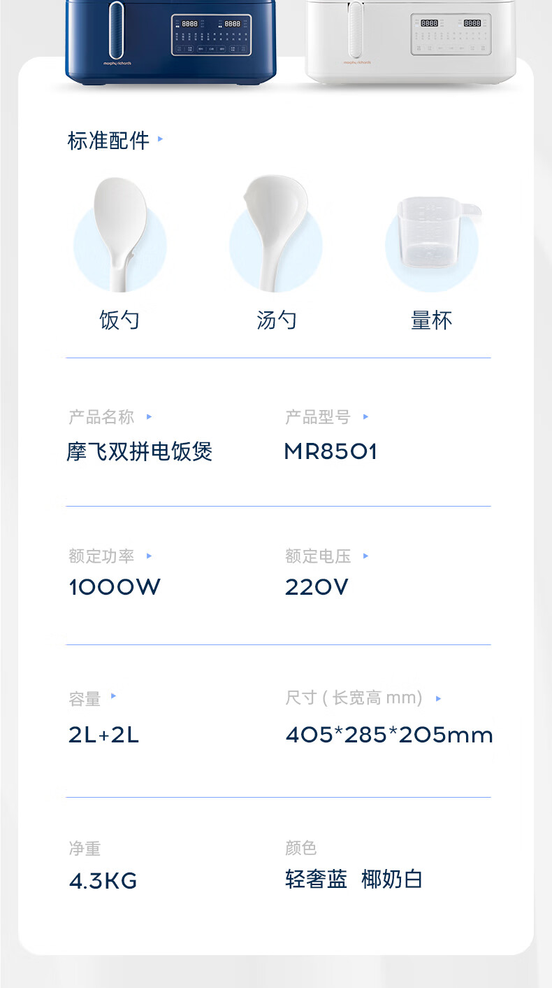 【摩飞 双胆电饭锅MR8501】家用多功能2l+2l,双胆双控二合一,澎湃沥煮低糖更健康,私享+欢聚皆宜