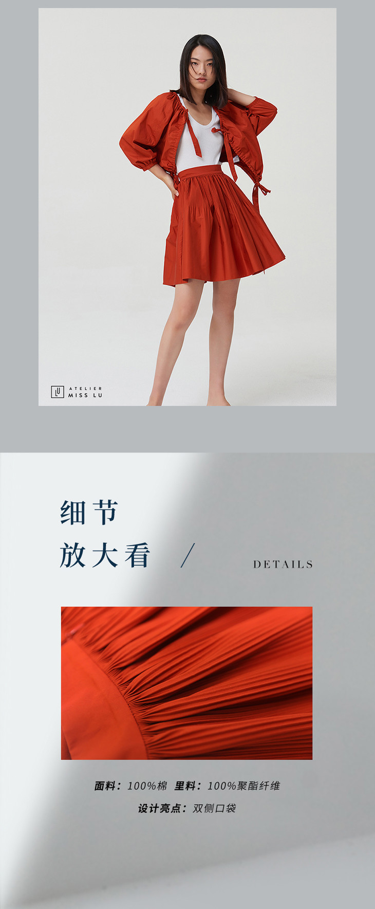【鬼马女孩】枫叶橘高腰褶皱嘭嘭嘭A字半裙