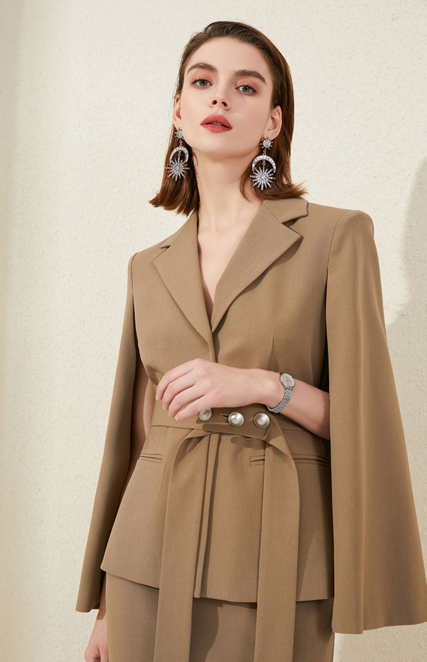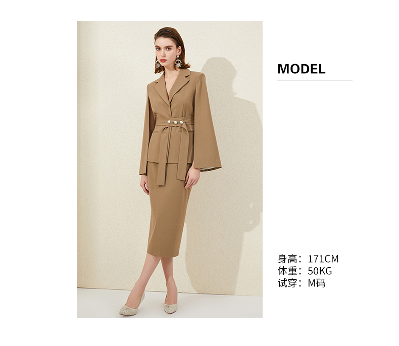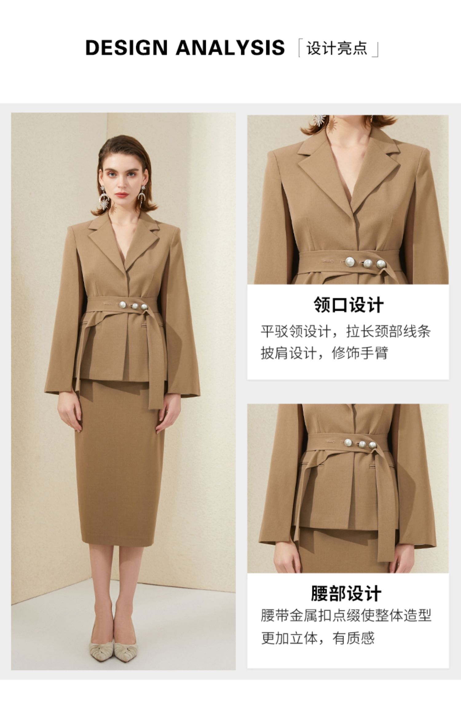 IWY/高端西装套裙女正装卡其色干练职业装气质神范秋美容院通勤工作服 213203C3+S1