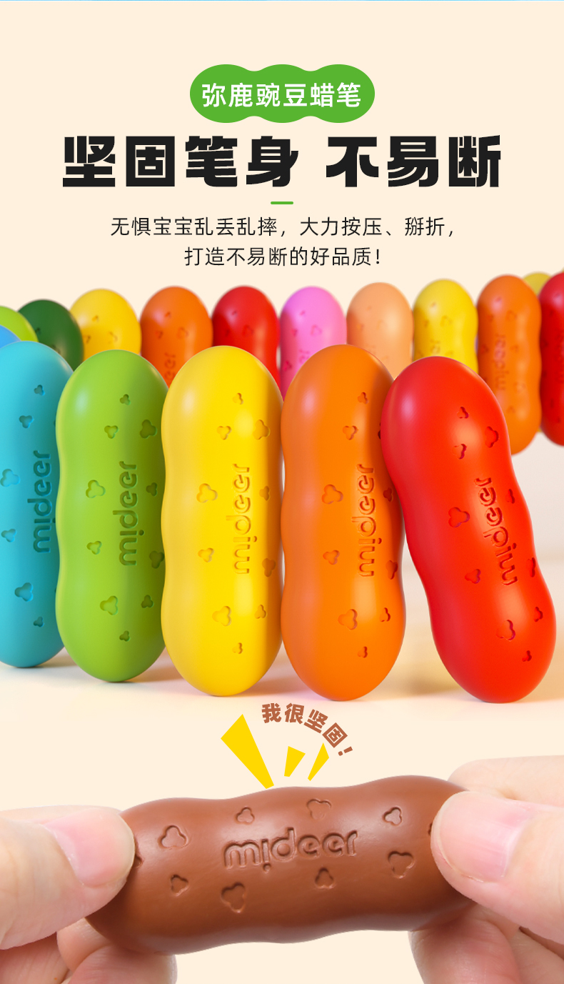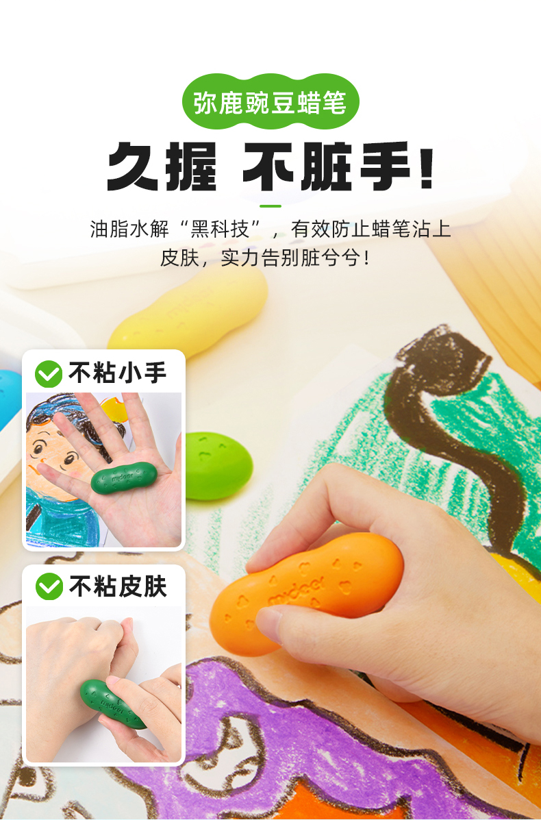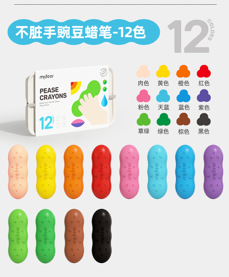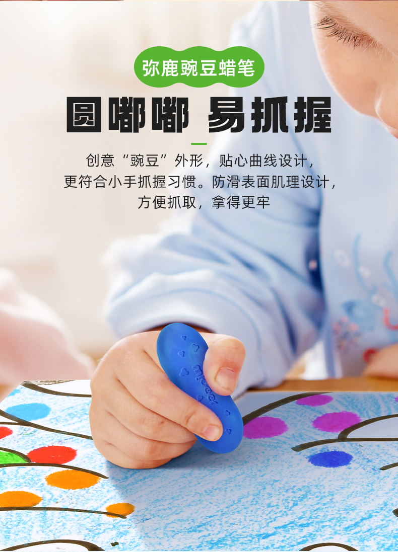 mideer弥鹿婴儿儿童豌豆蜡笔无毒可水洗不脏手画笔宝宝不粘手油画