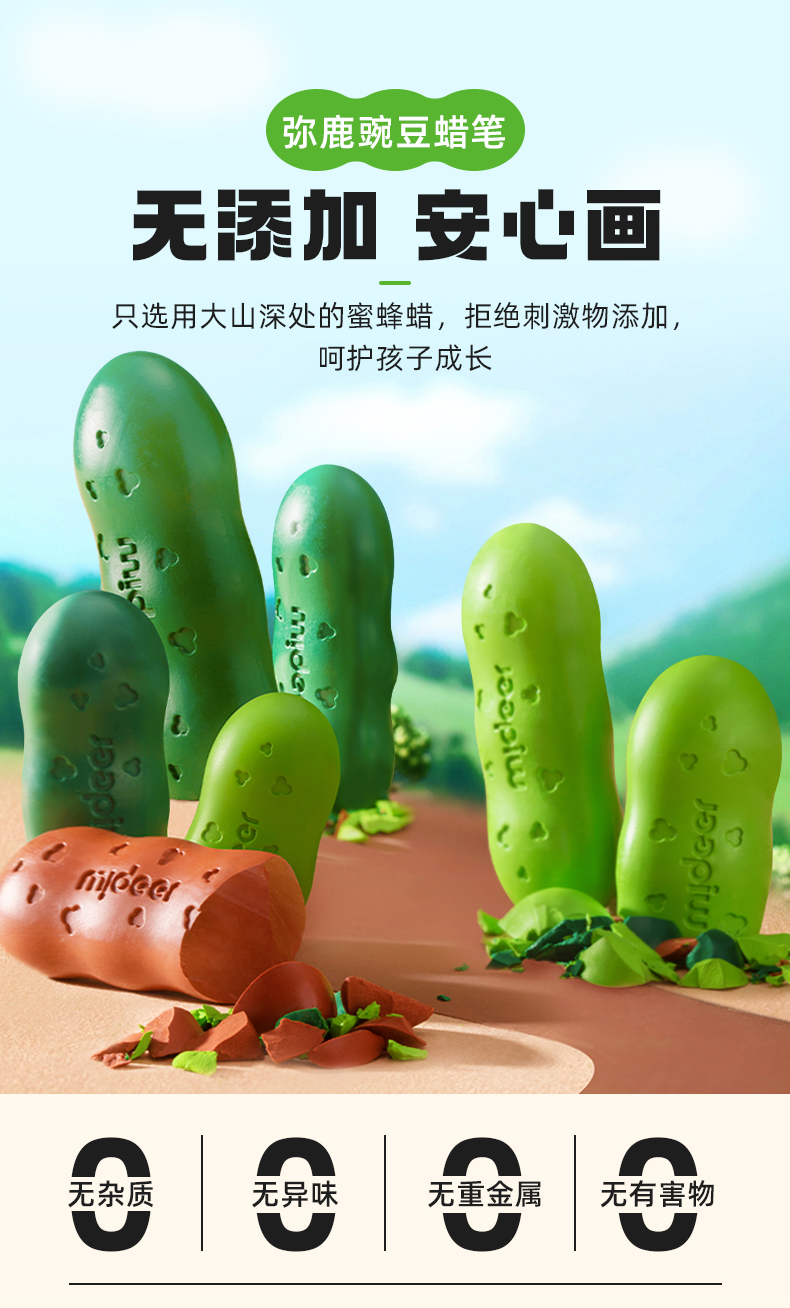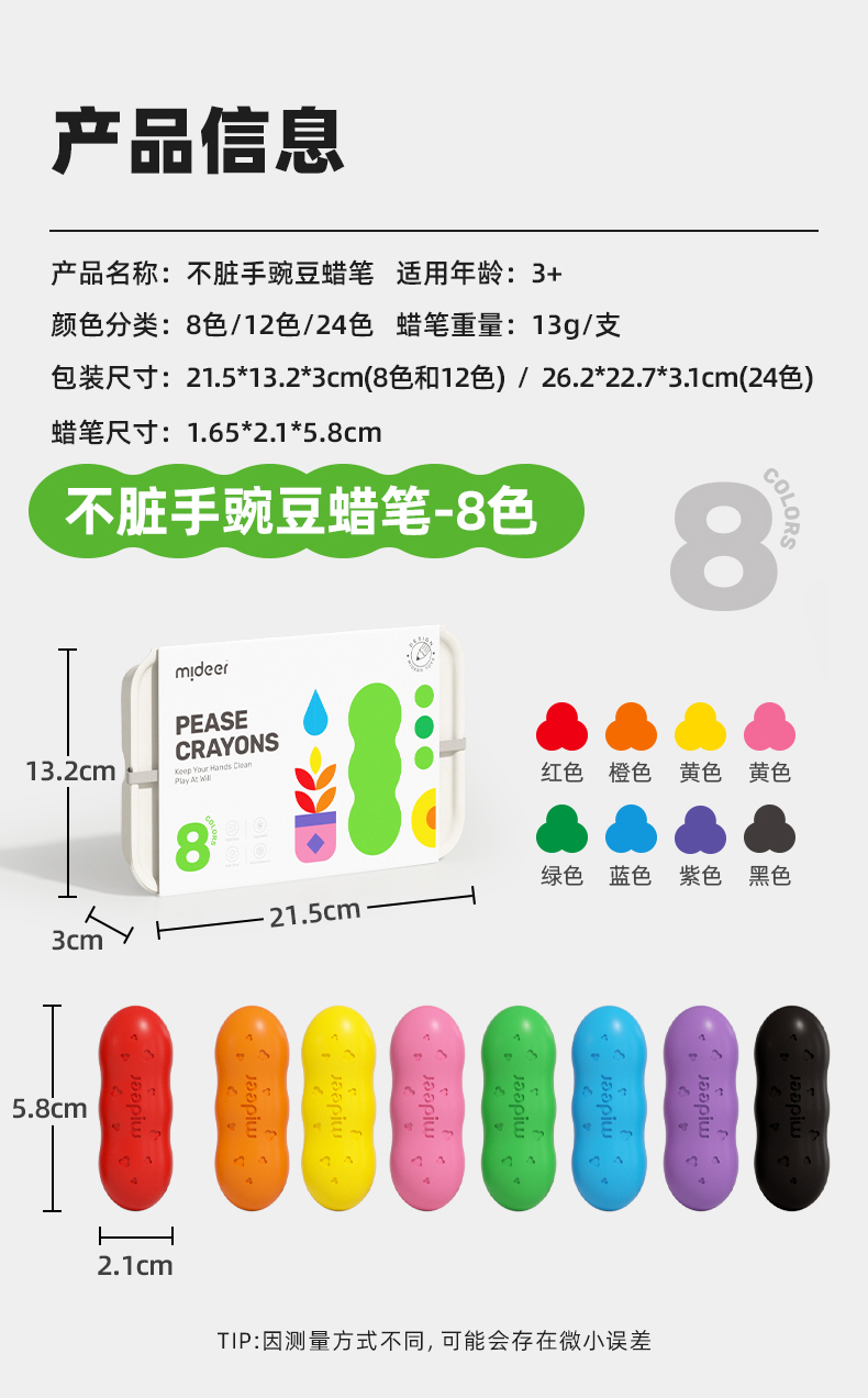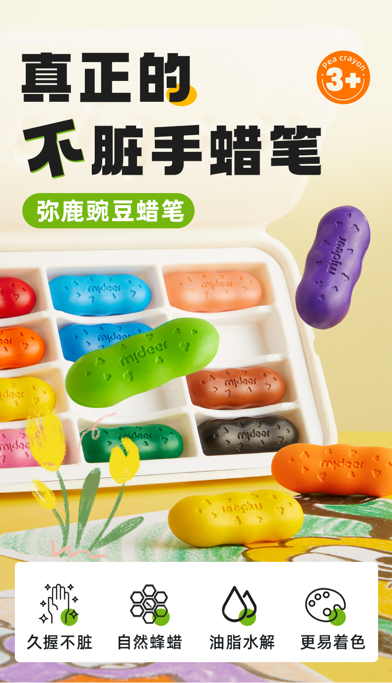 mideer弥鹿婴儿儿童豌豆蜡笔无毒可水洗不脏手画笔宝宝不粘手油画