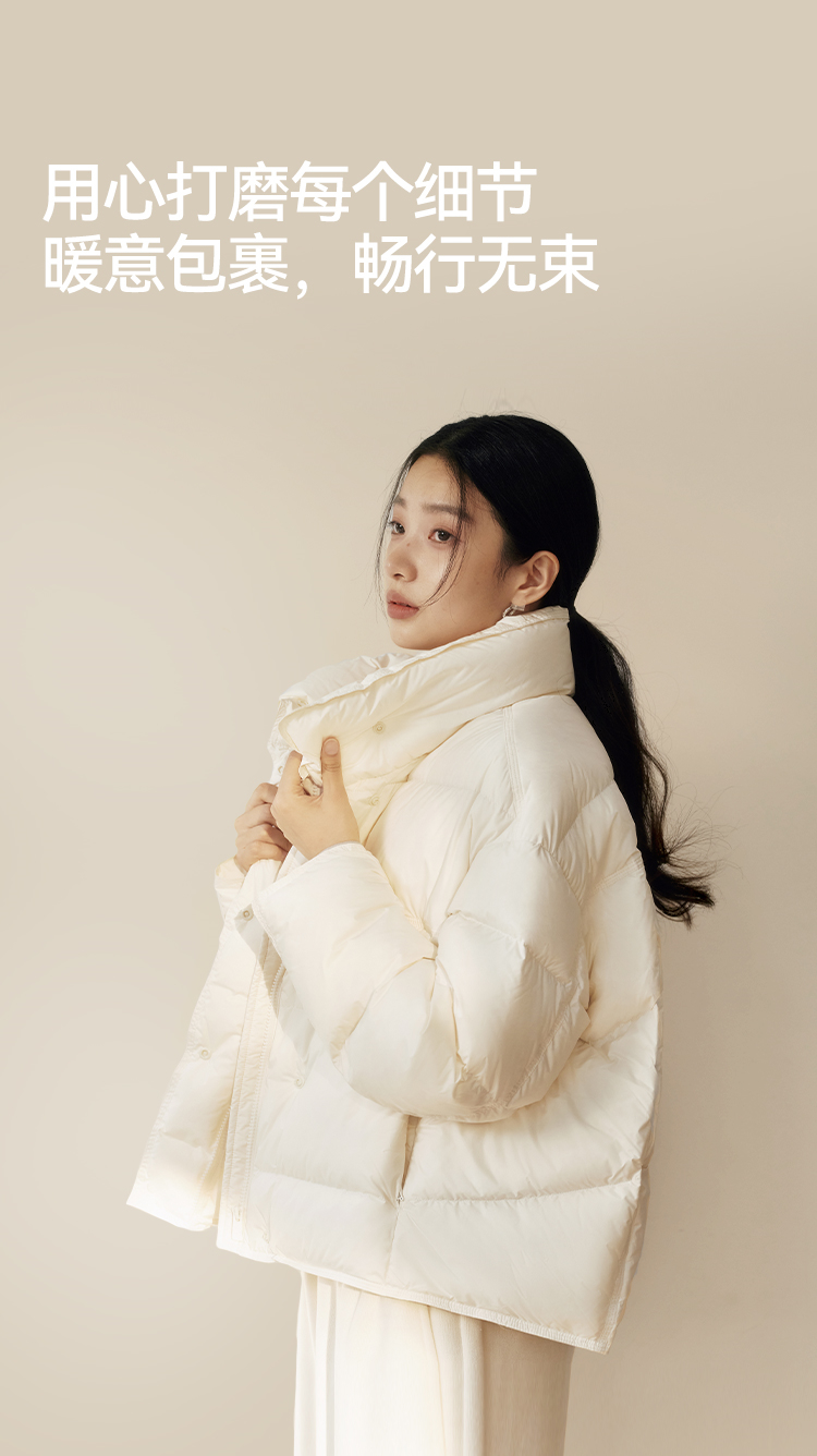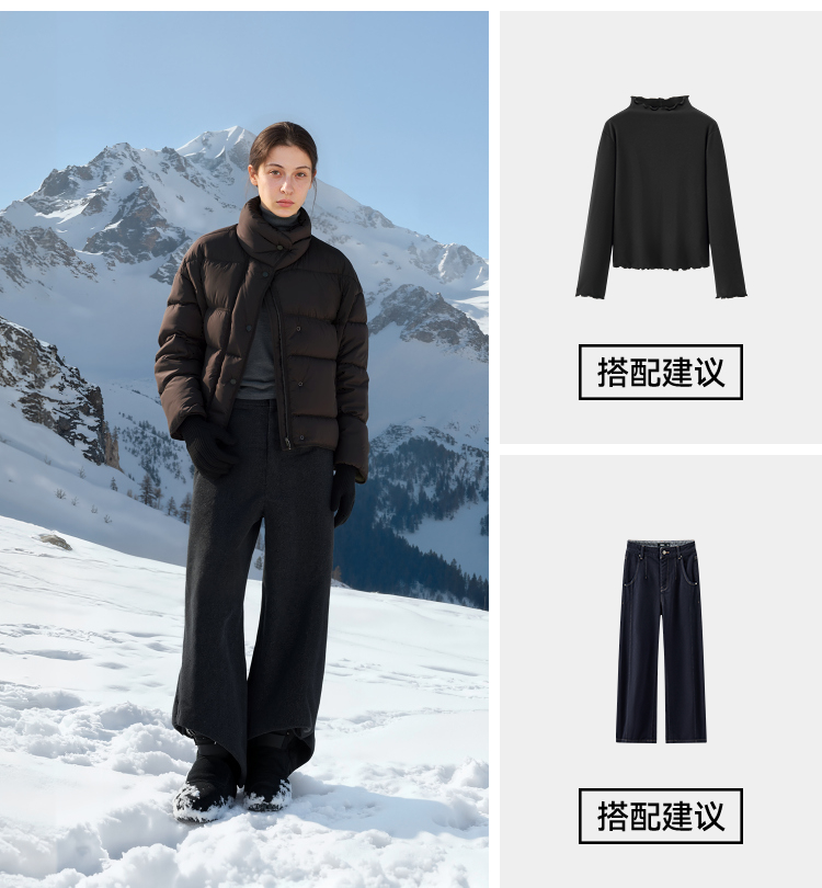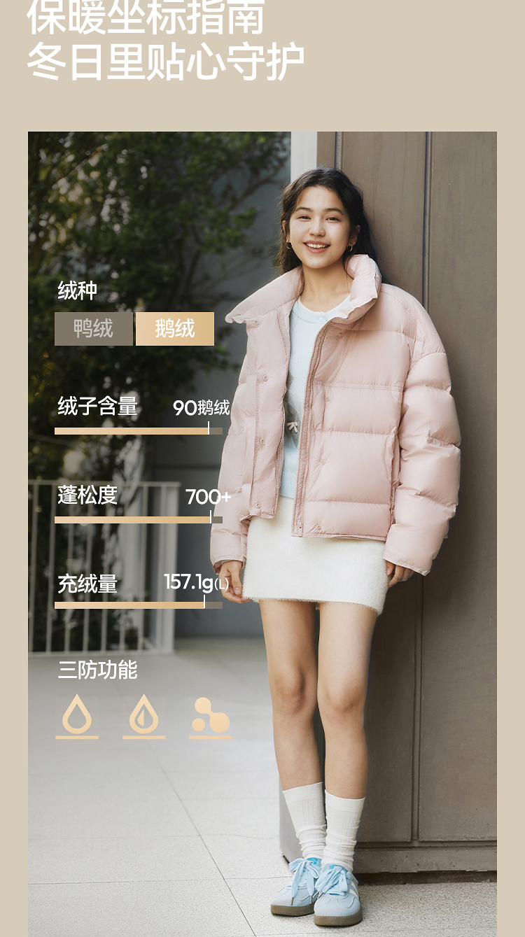 森马羽绒服女鹅绒三防oversize冬季2025新款立领龟背面包服小个子