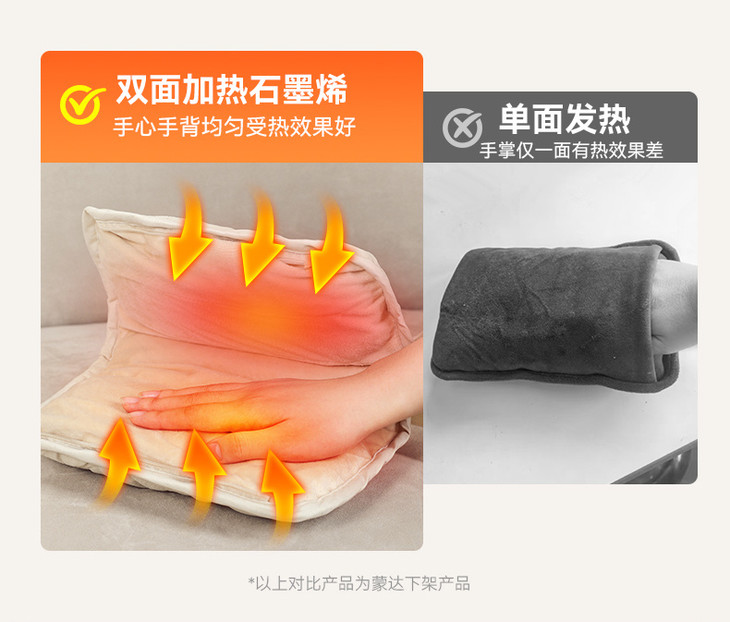 双面大范围发热手心手背全暖透 新创锁温层和石墨烯发热双倍技术紧锁热量 解决局部发热不足导致手脚寒冷问题