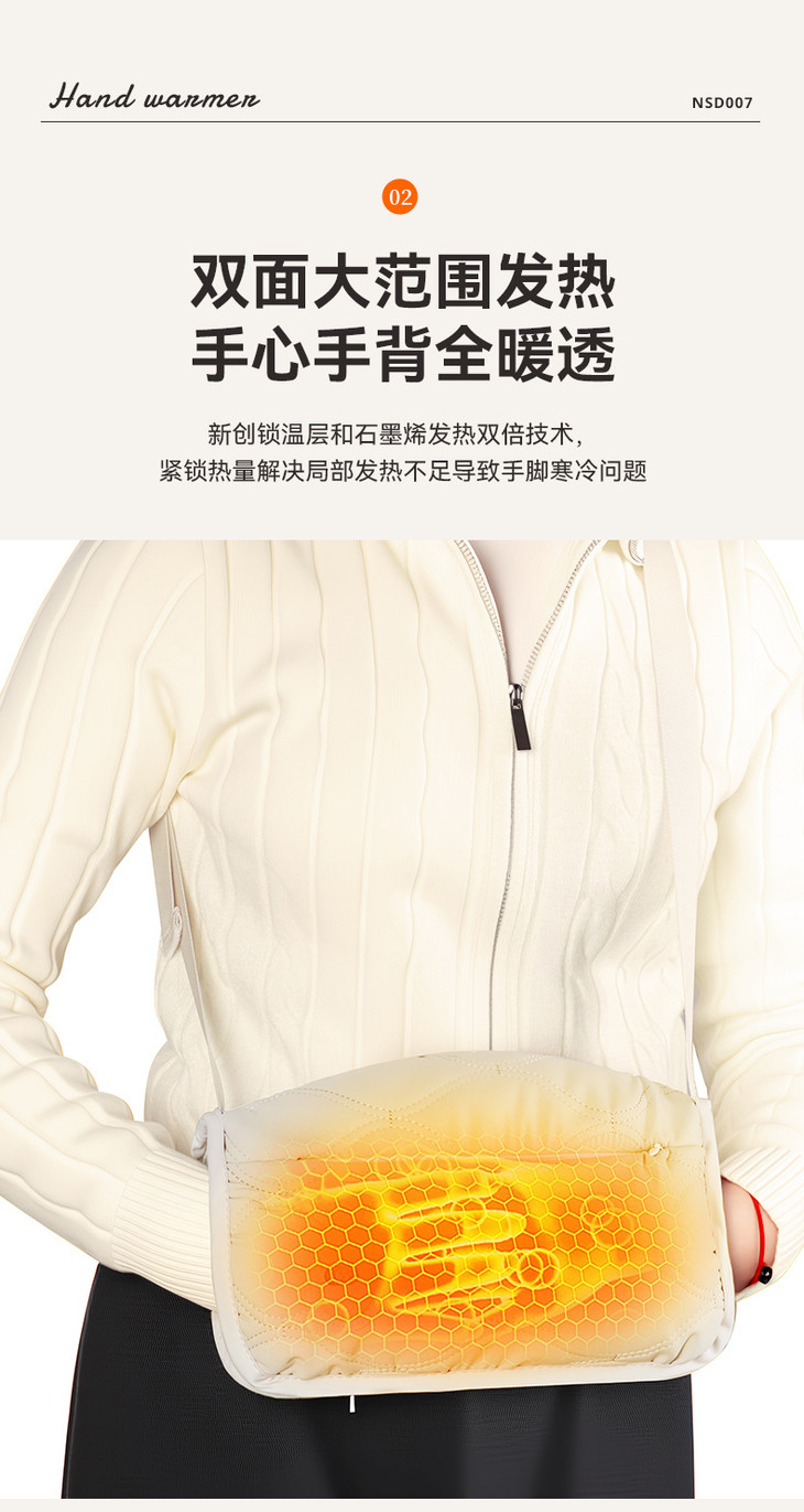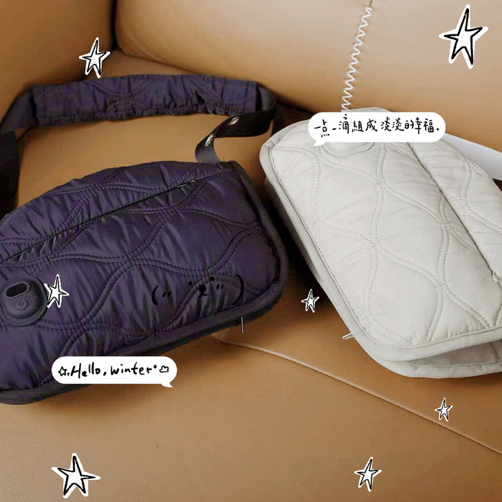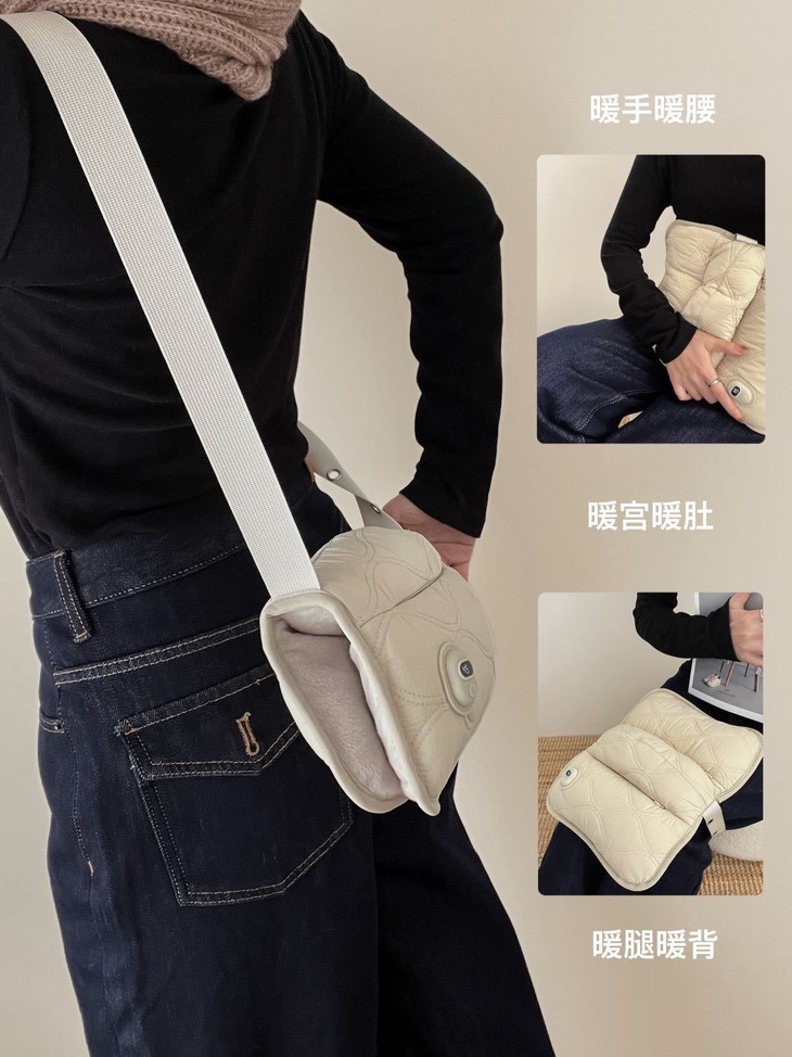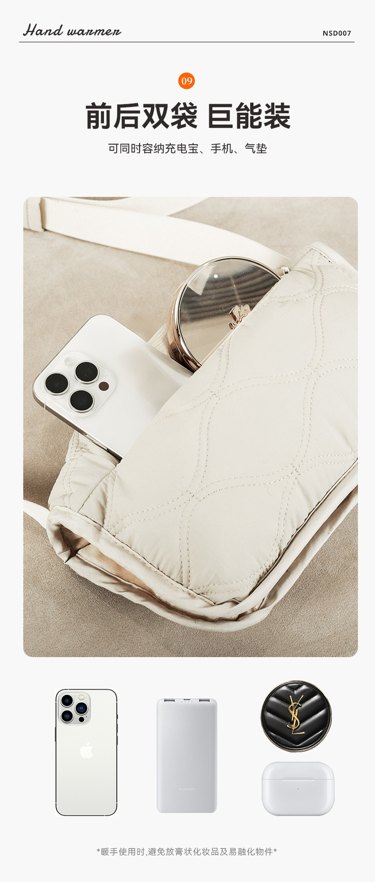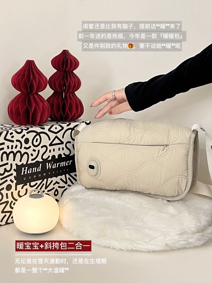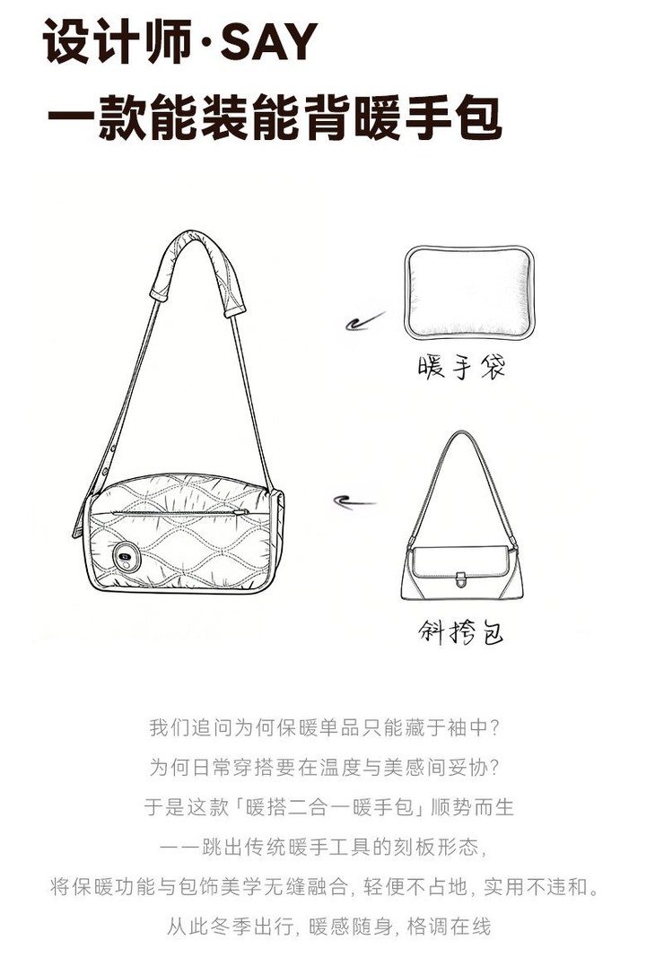 通勤党救星!不用一手攥暖手宝、一手拎包, 斜挎即暖手,主仓轻松装下手机 + 充电宝 + 气垫