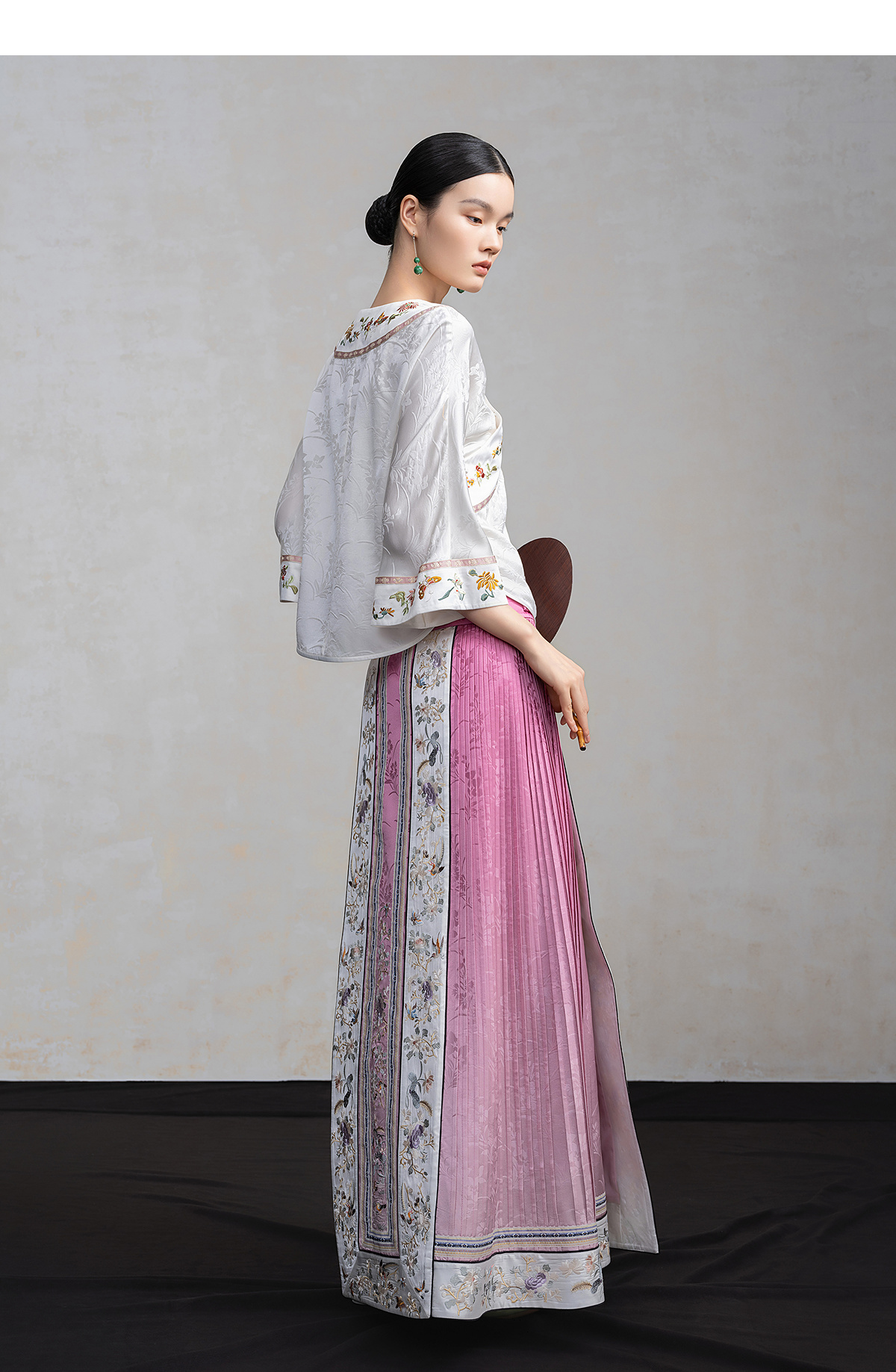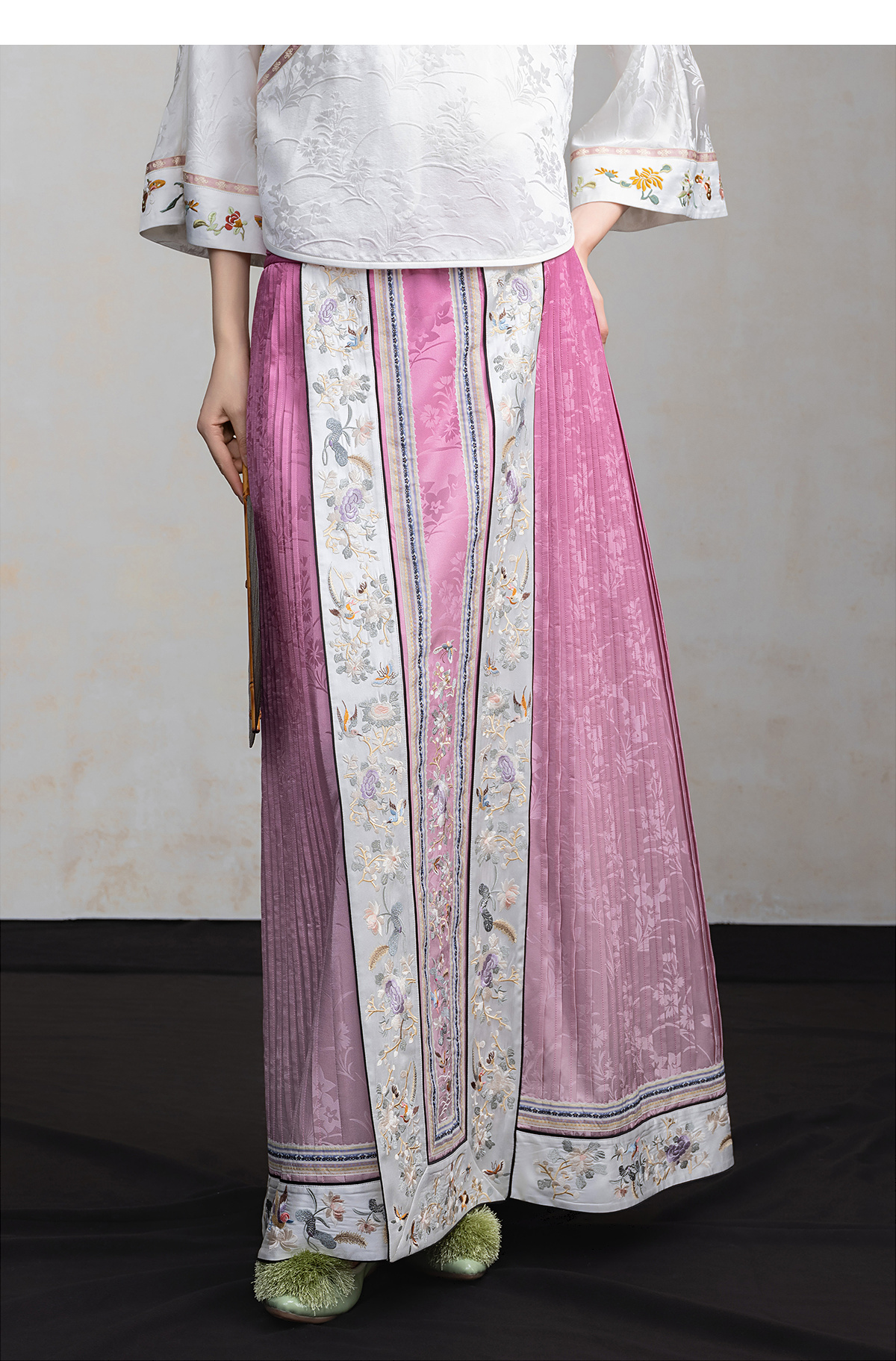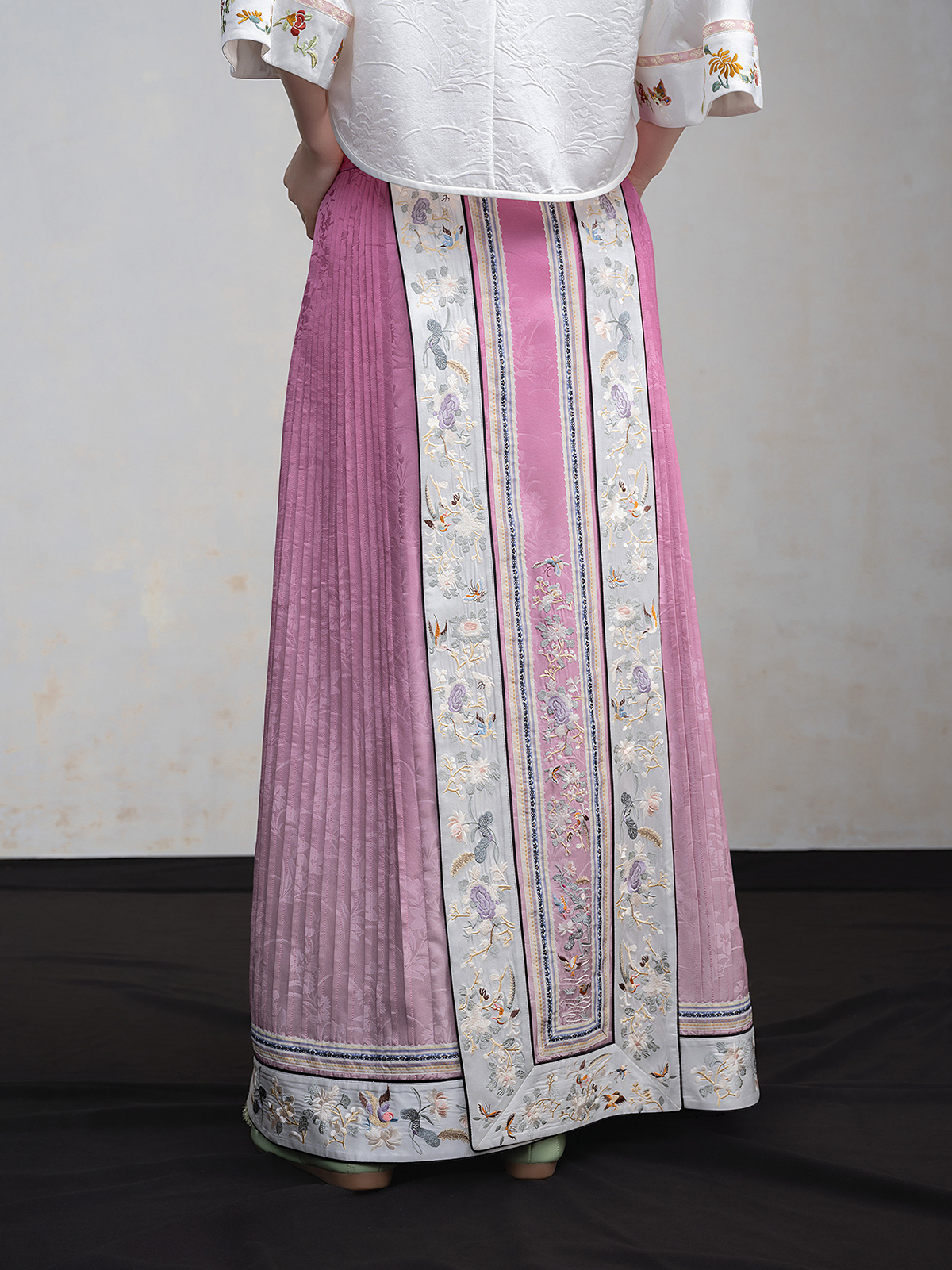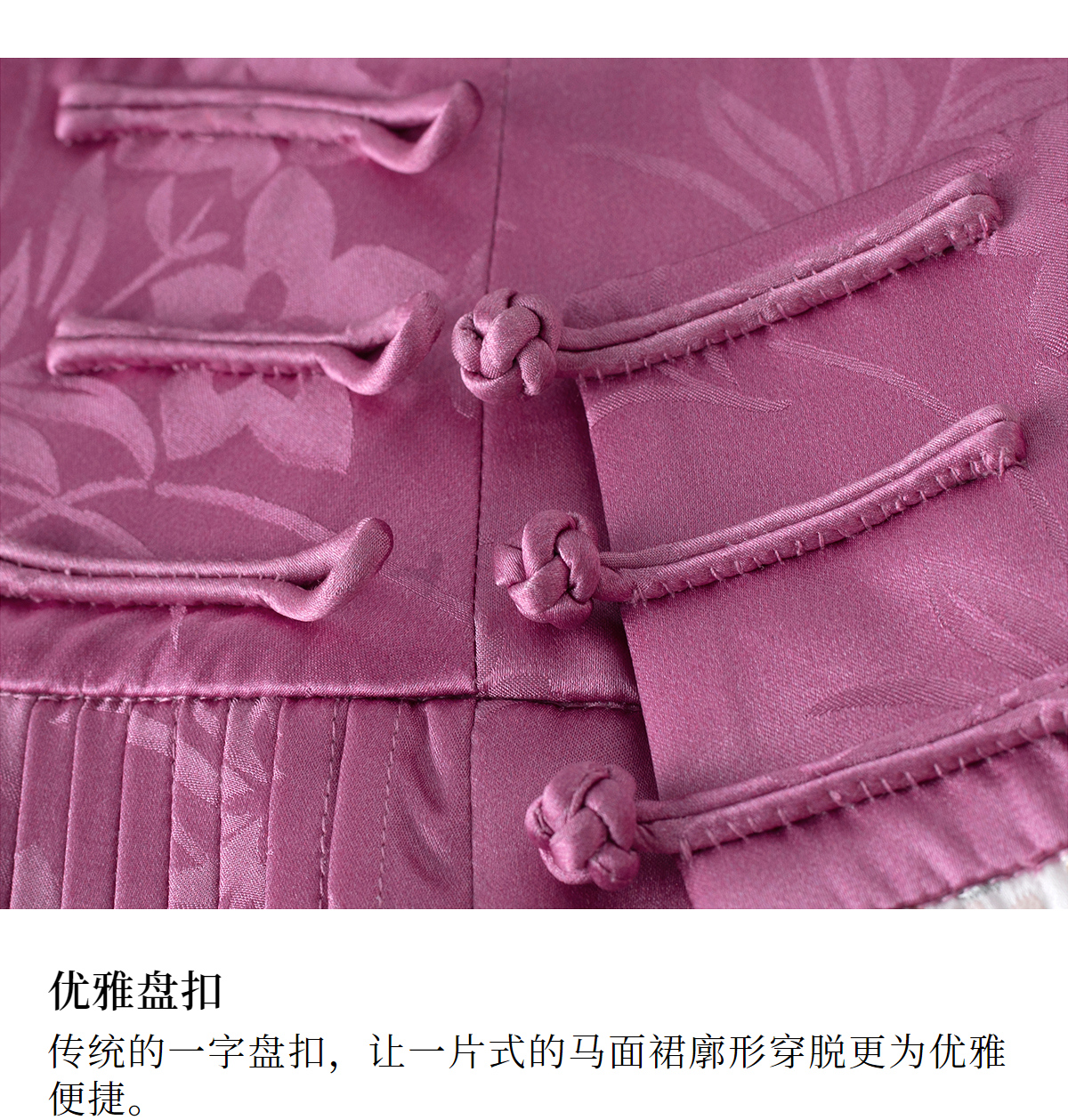 【林栖设计小店】真丝杭缎改良马面裙2025春季新品新中式盘扣绣花粉半身裙女1951053