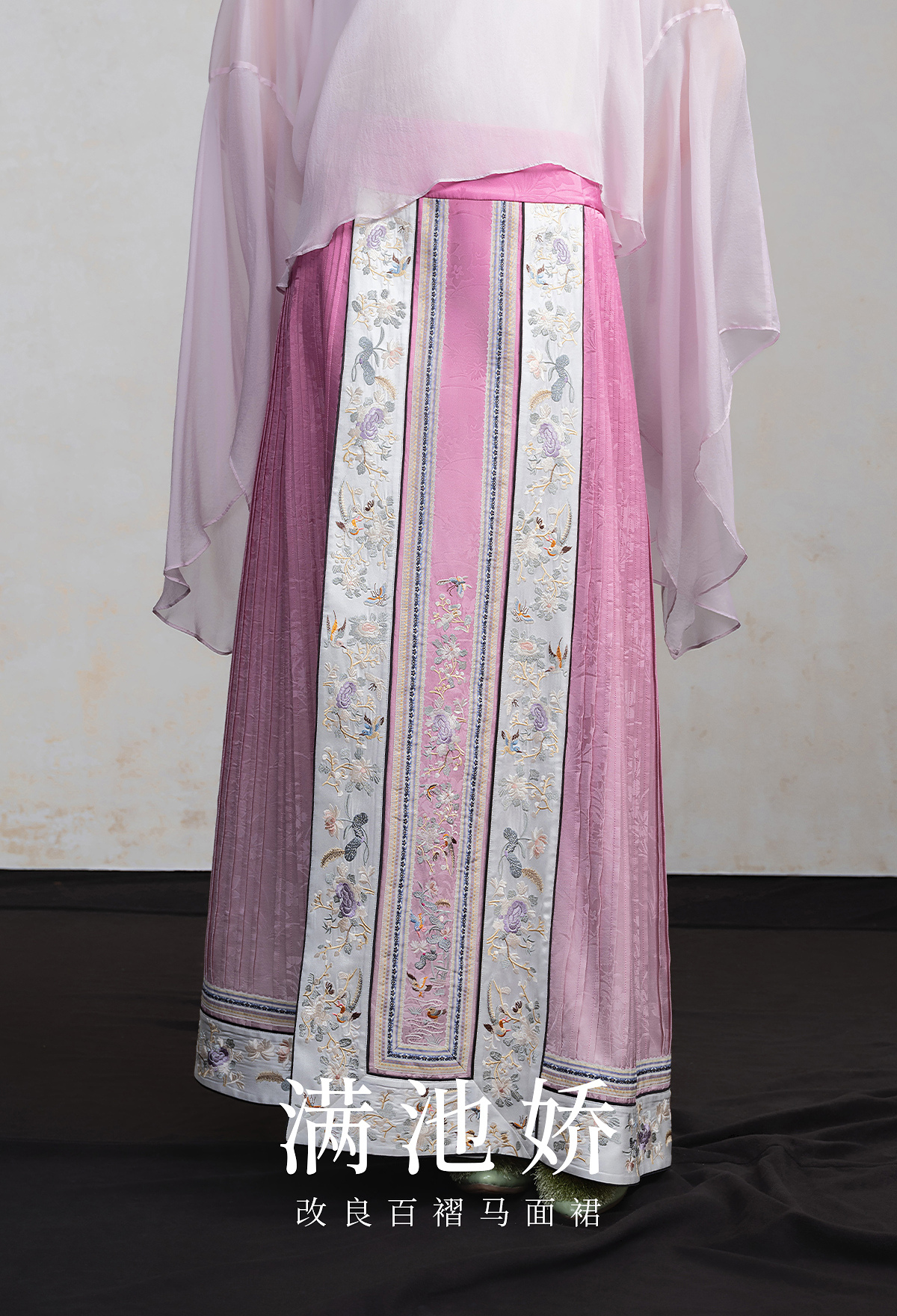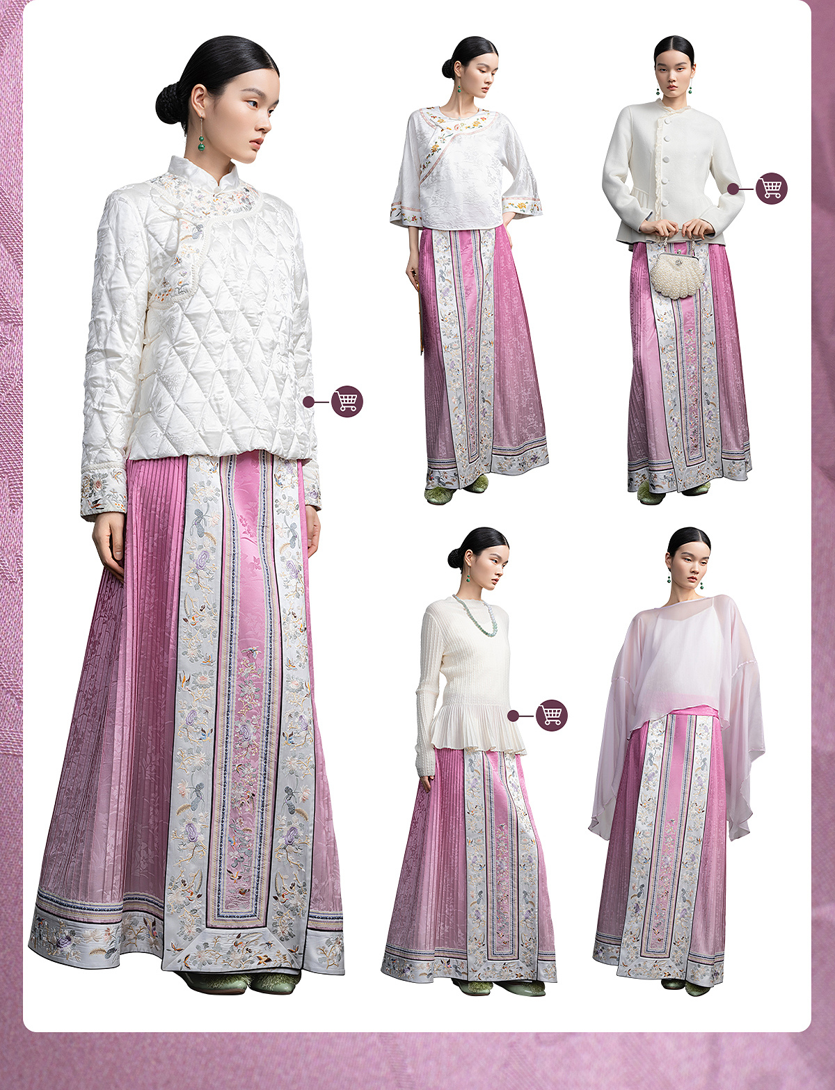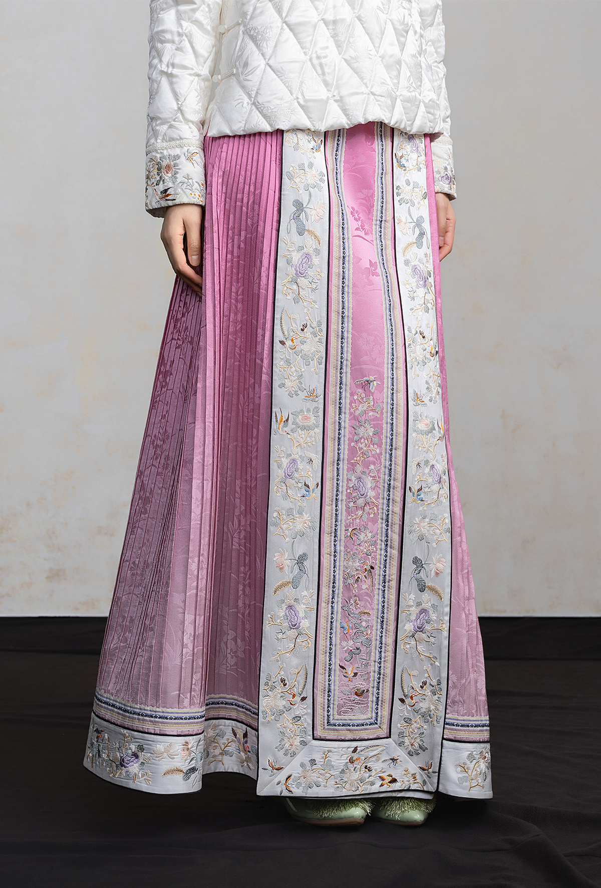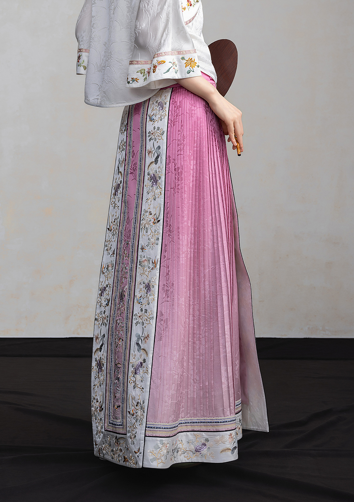 【林栖设计小店】真丝杭缎改良马面裙2025春季新品新中式盘扣绣花粉半身裙女1951053