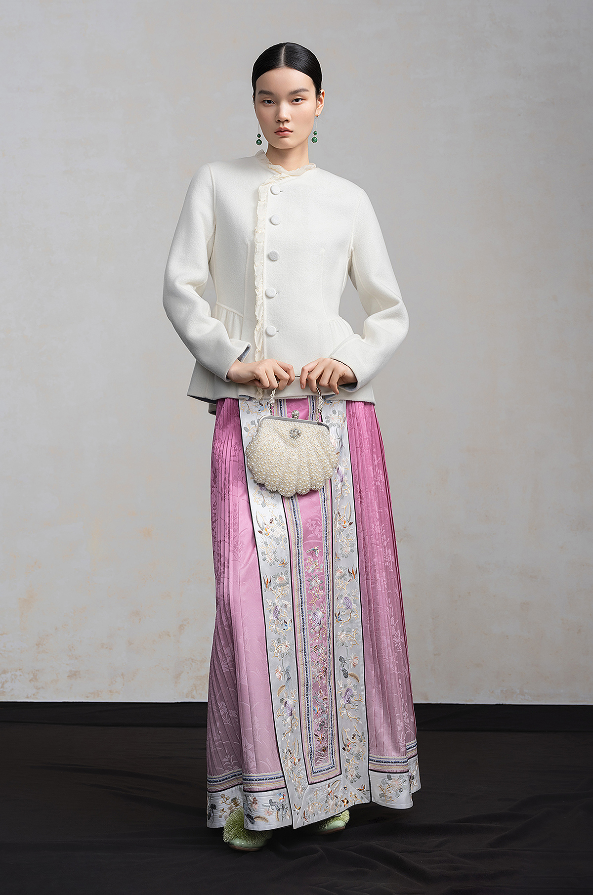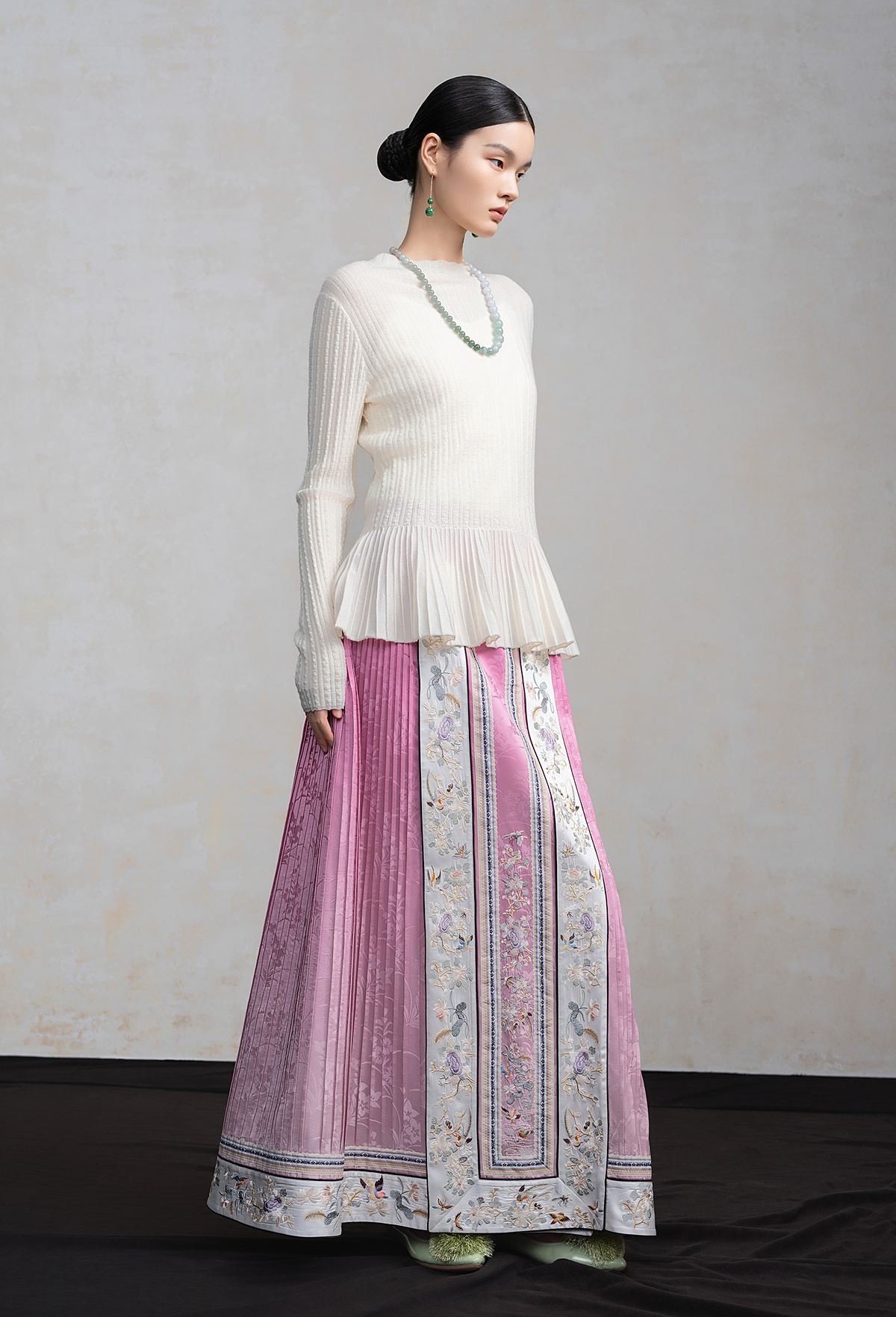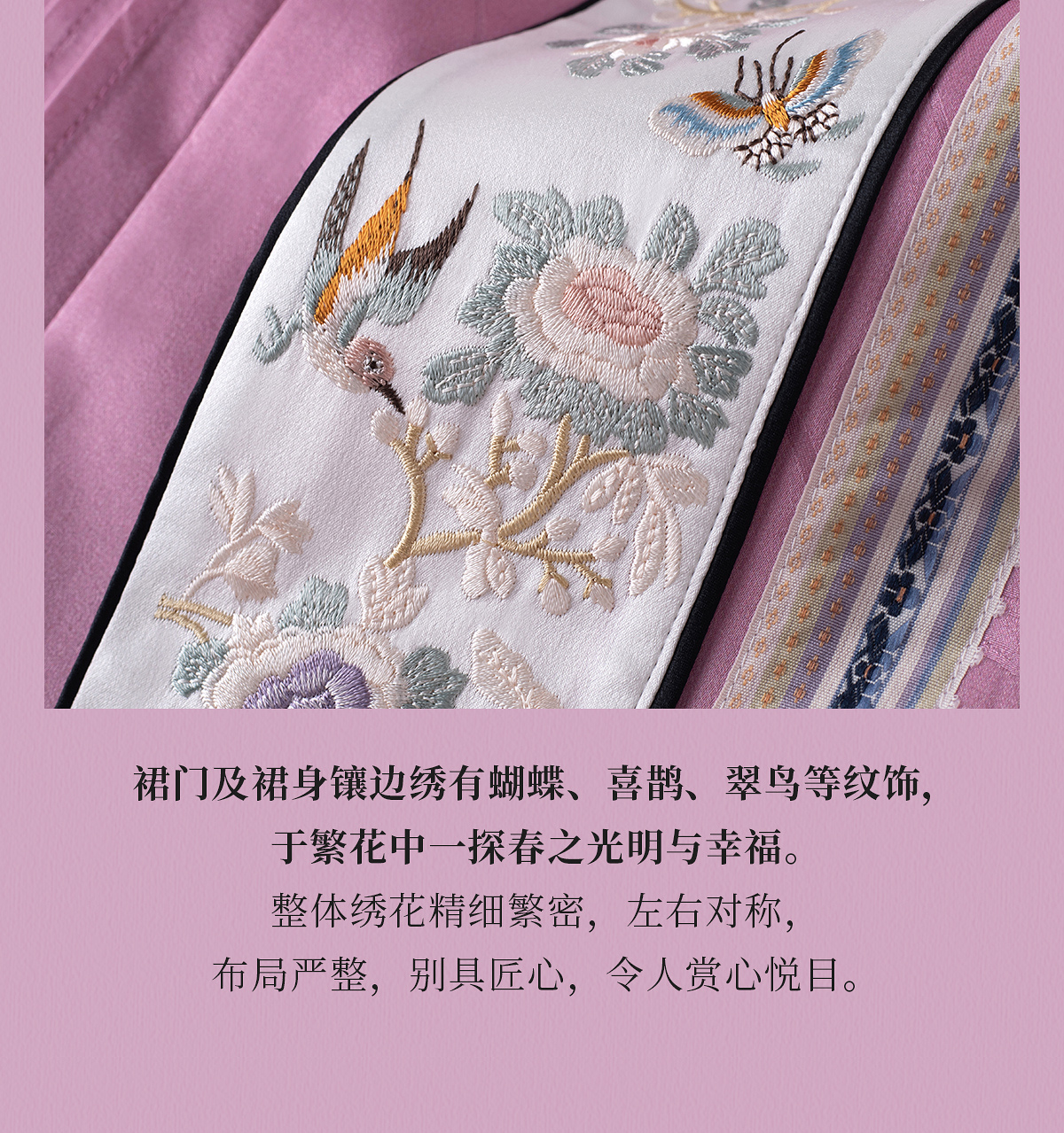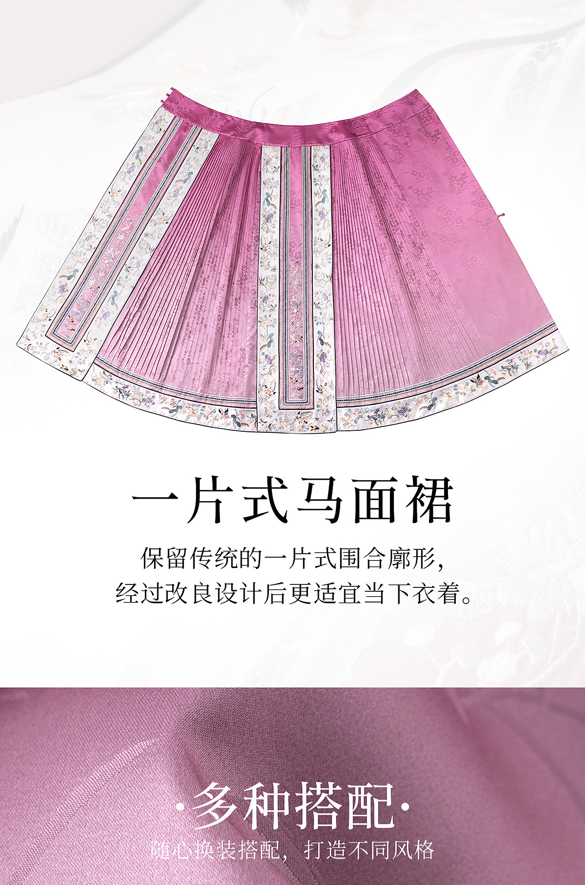 【林栖设计小店】真丝杭缎改良马面裙2025春季新品新中式盘扣绣花粉半身裙女1951053