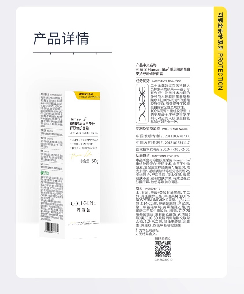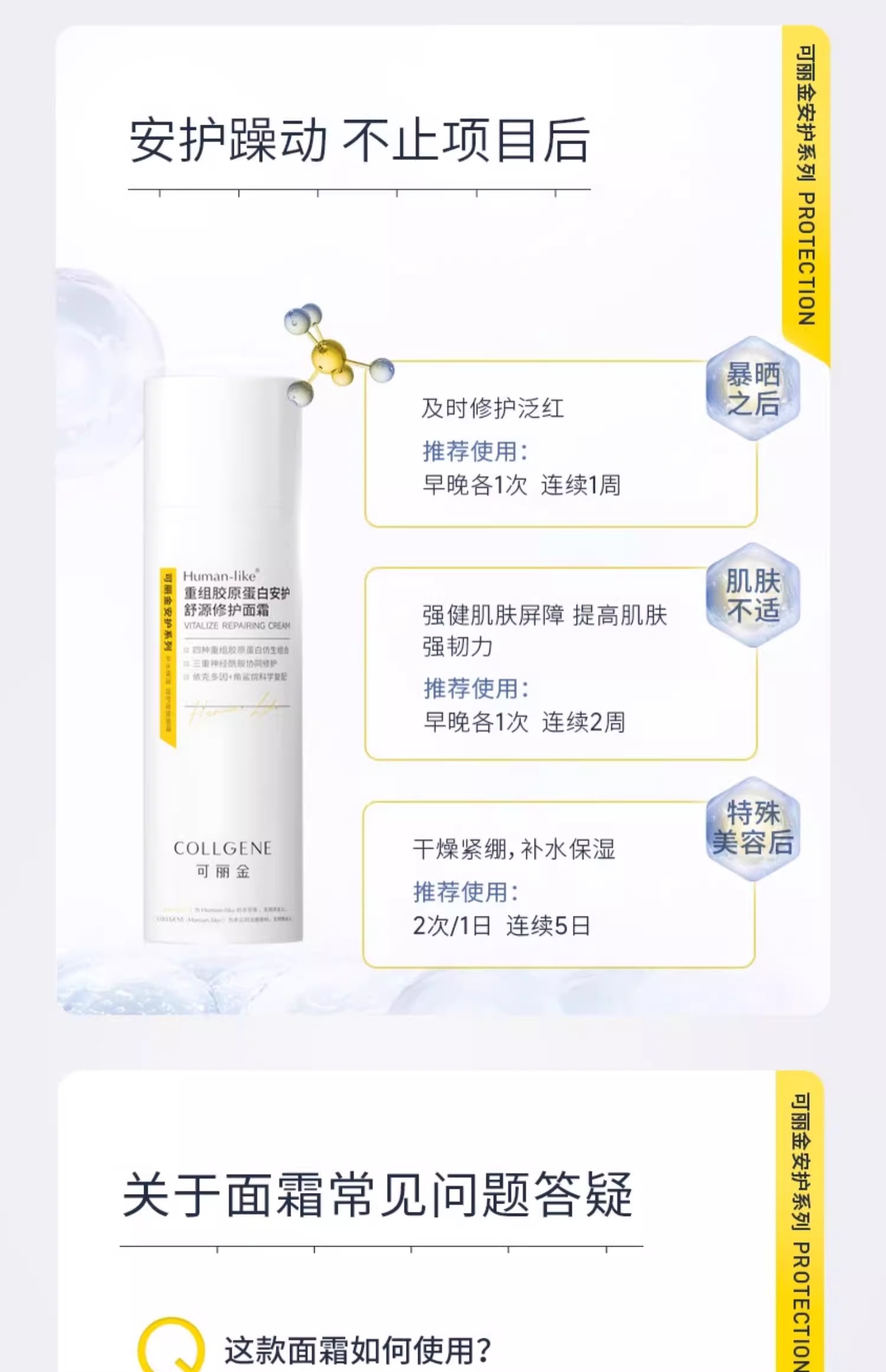 可丽金重组胶原蛋白安护舒源修护面霜50g/瓶