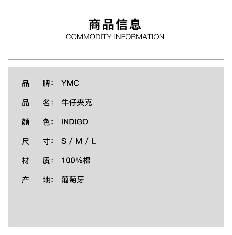 YMC LOFT JACKET 男装原牛牛仔夹克外套