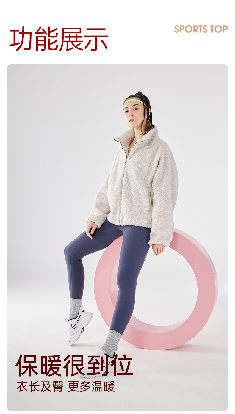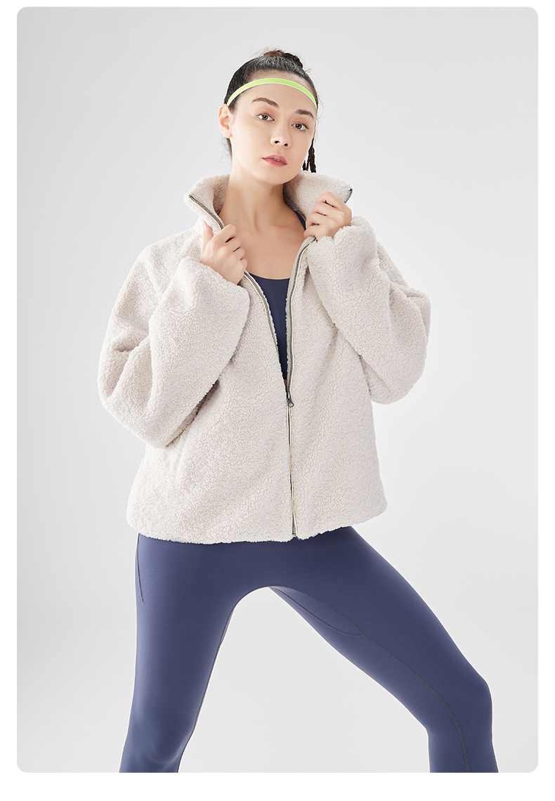 iyoga秋冬羊羔绒保暖外套金属拉链防风高领防风宽松版型穿着舒适J025