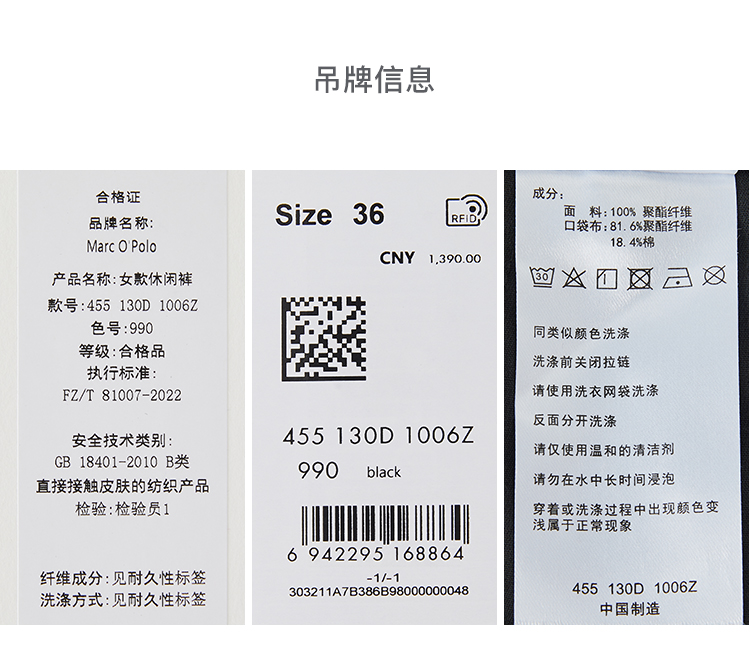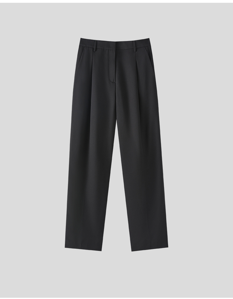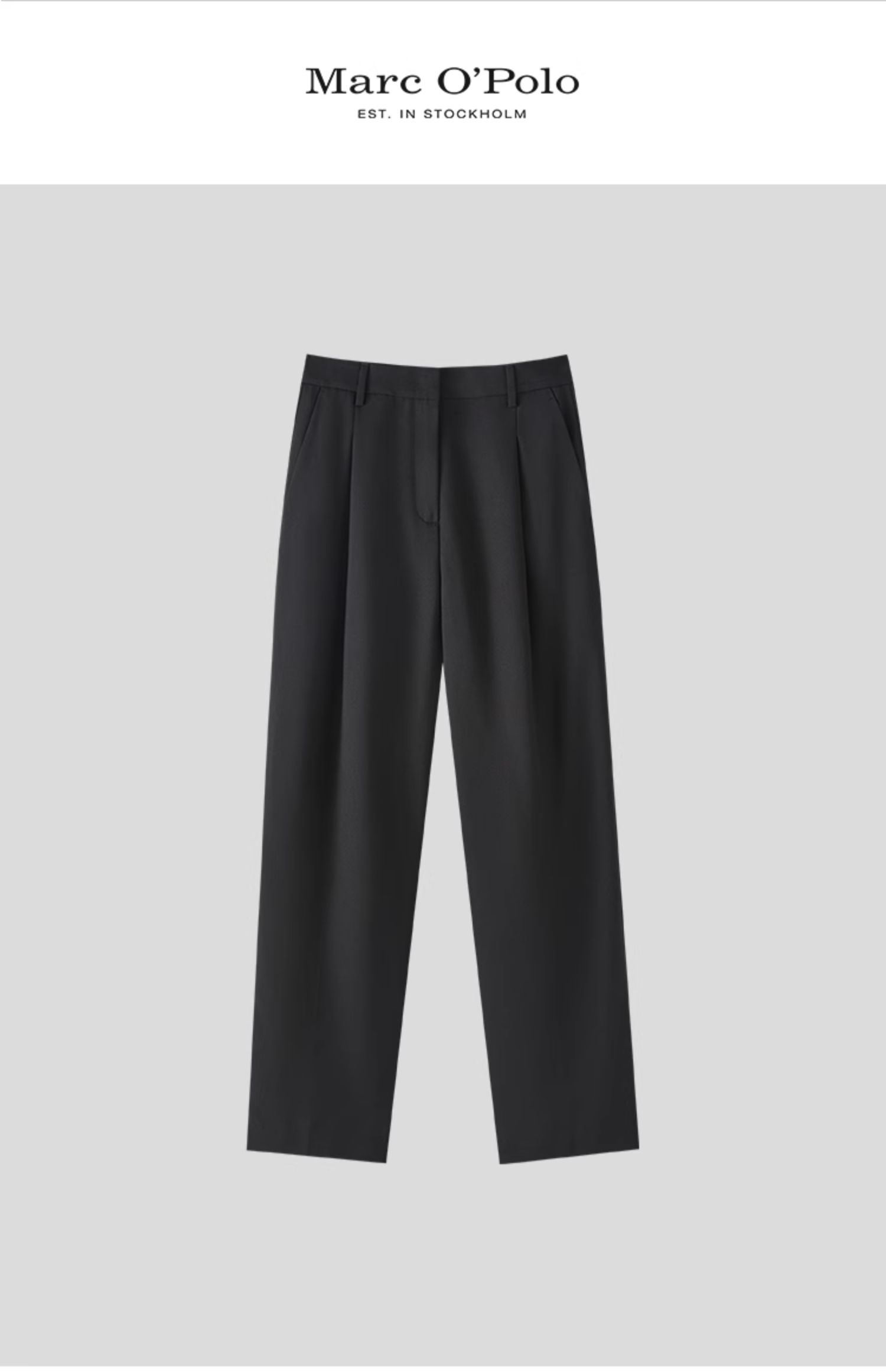 Marc O'Polo/MOP 夏季新款黑色直筒宽松简约褶皱休闲长裤女士