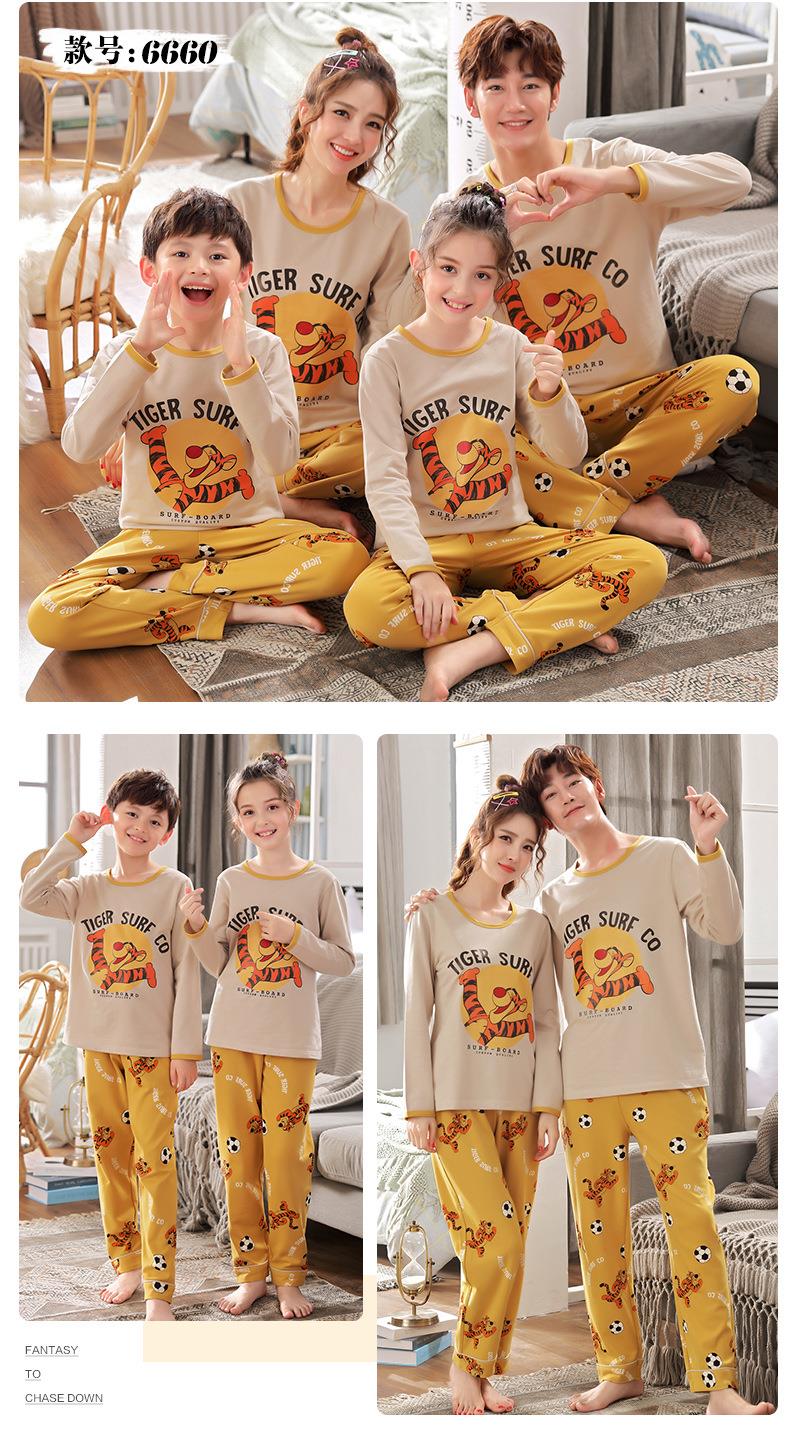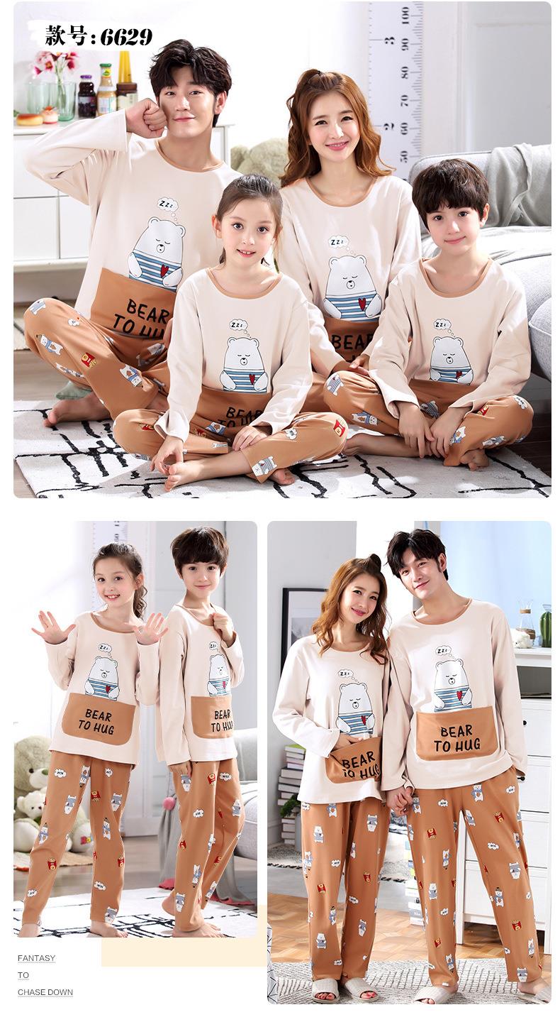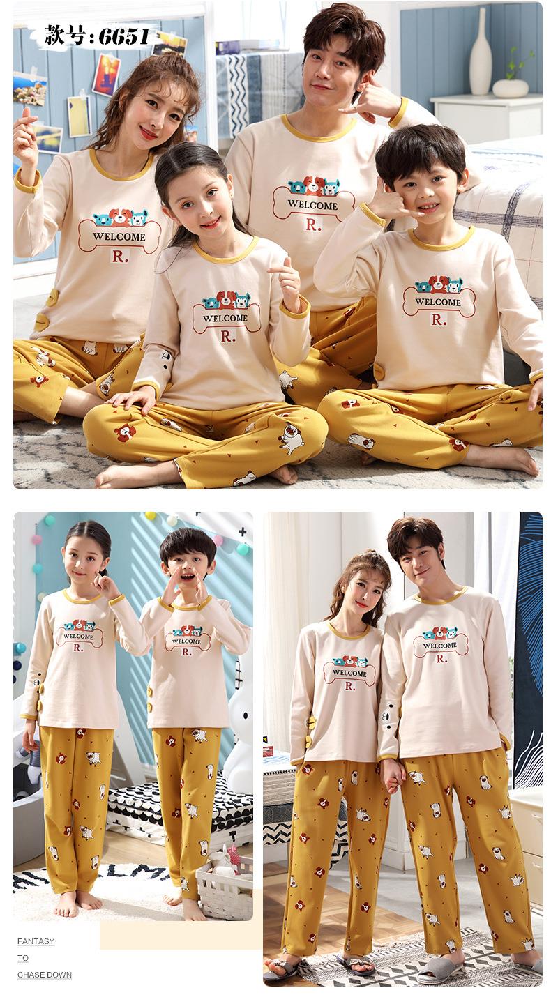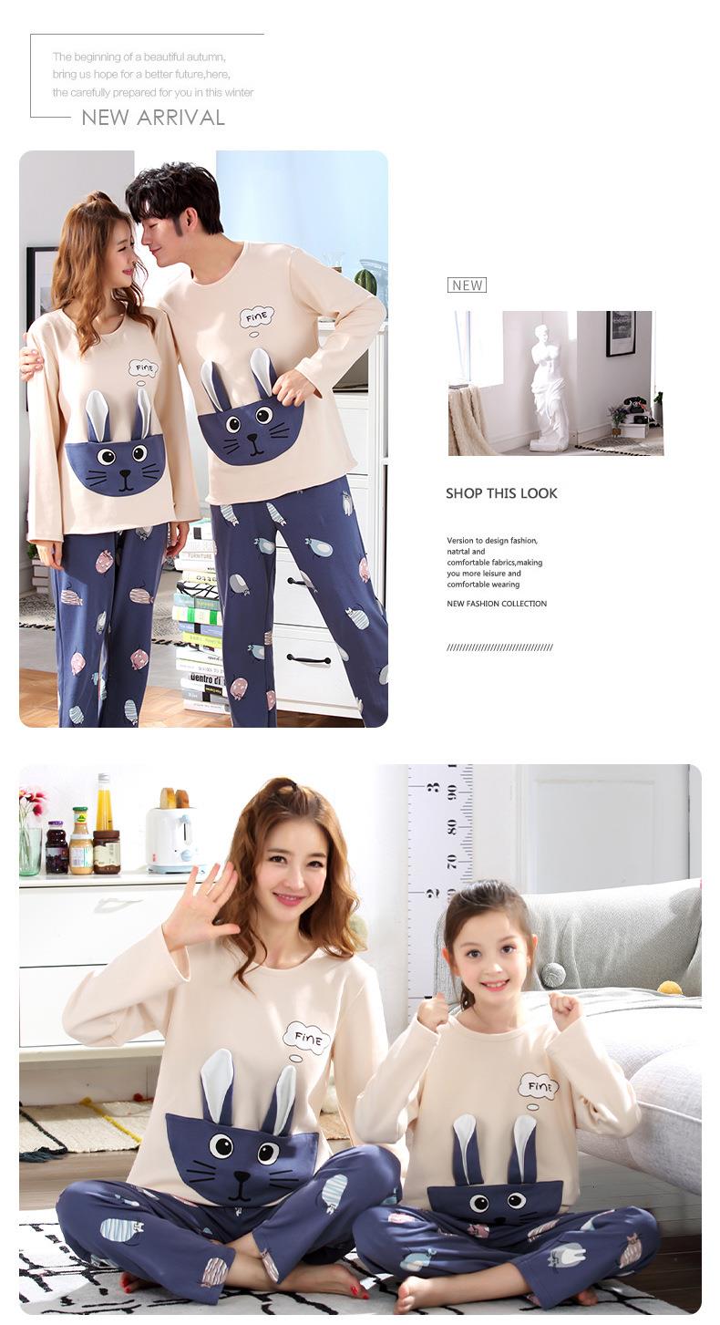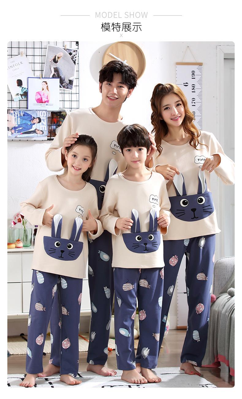 儿童亲子睡衣母女装韩版卡通棉质长袖一家三口亲子家居服男孩宝宝