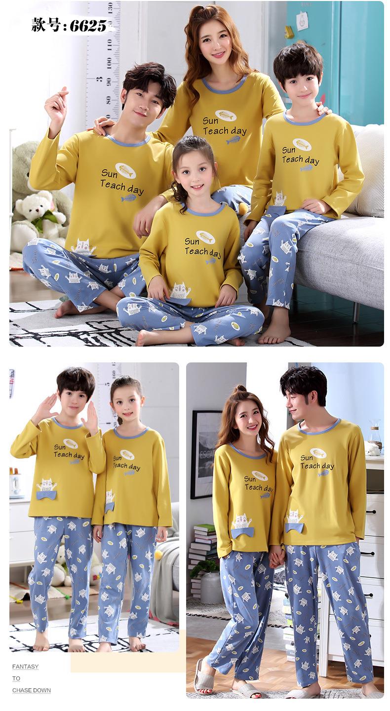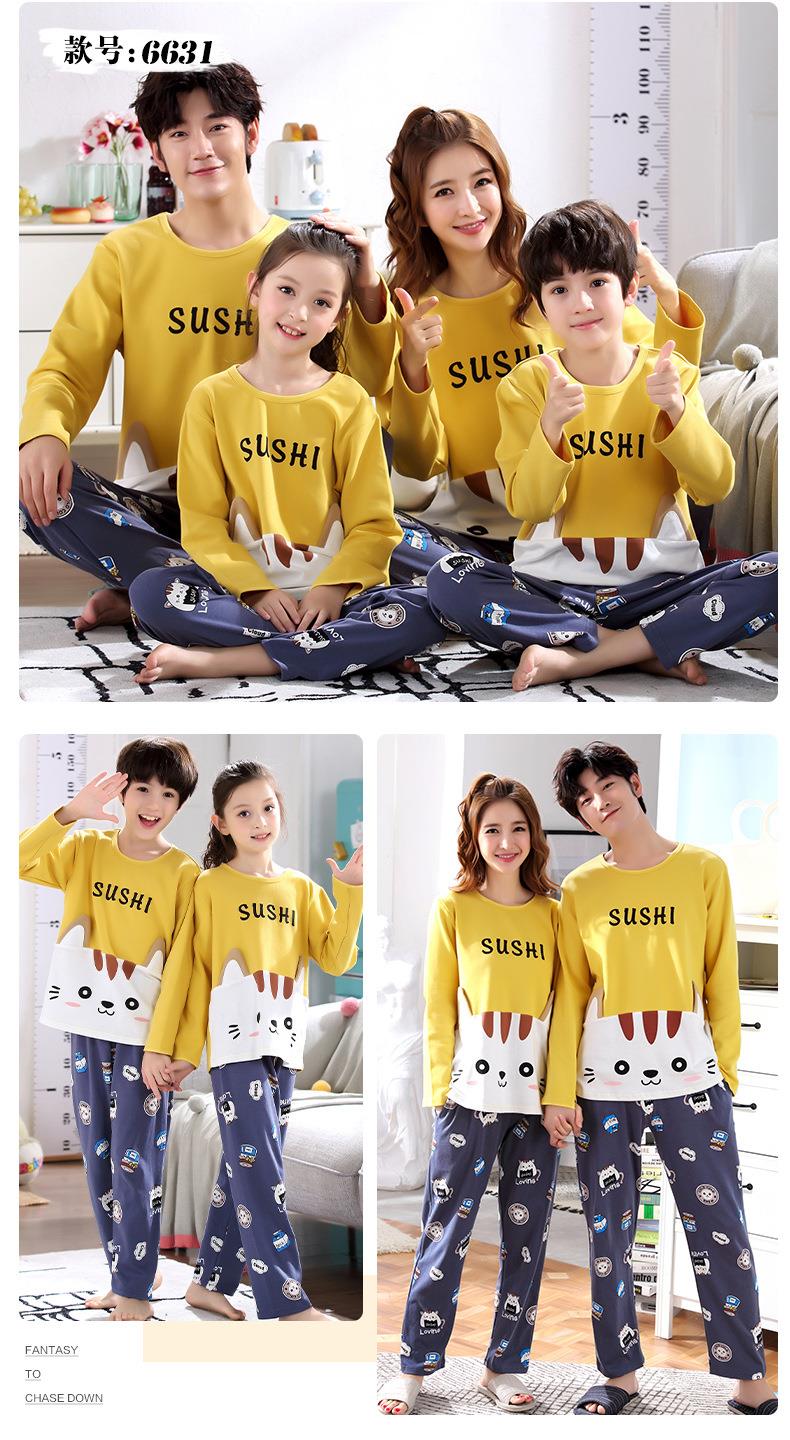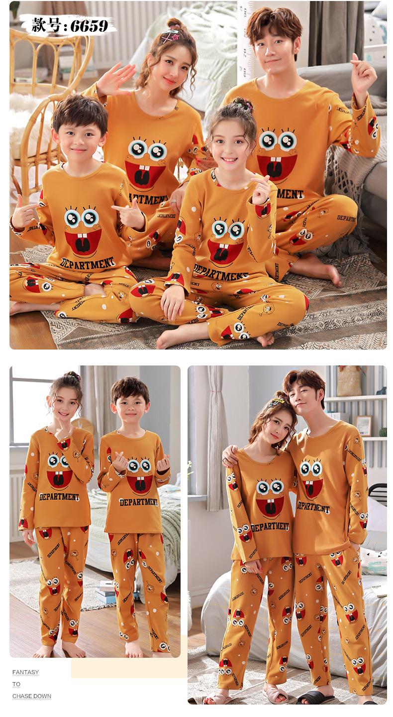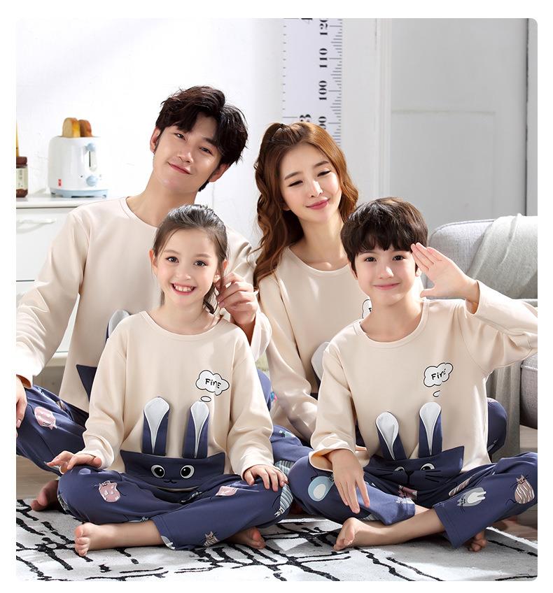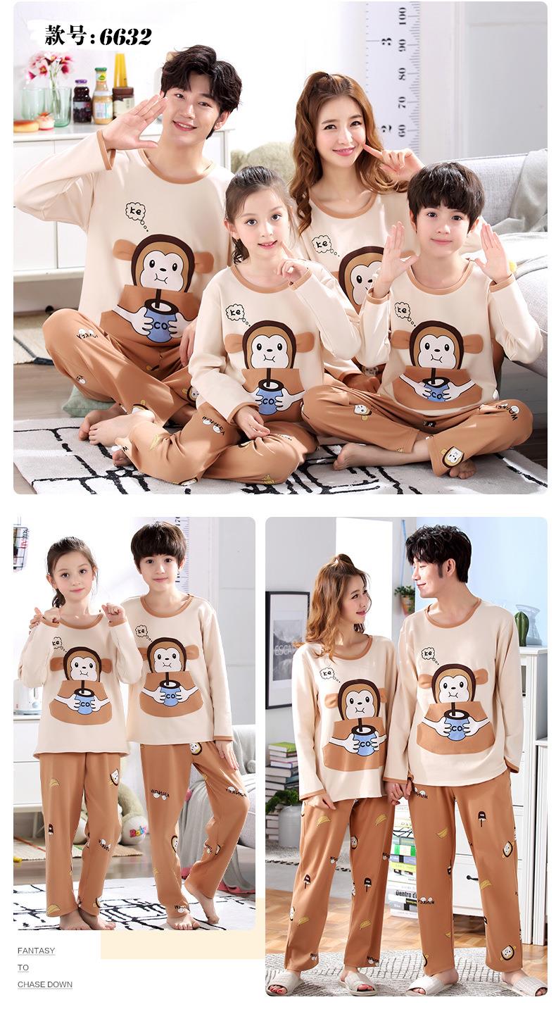 儿童亲子睡衣母女装韩版卡通棉质长袖一家三口亲子家居服男孩宝宝